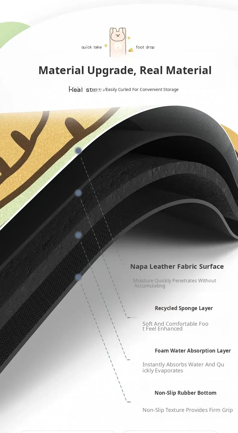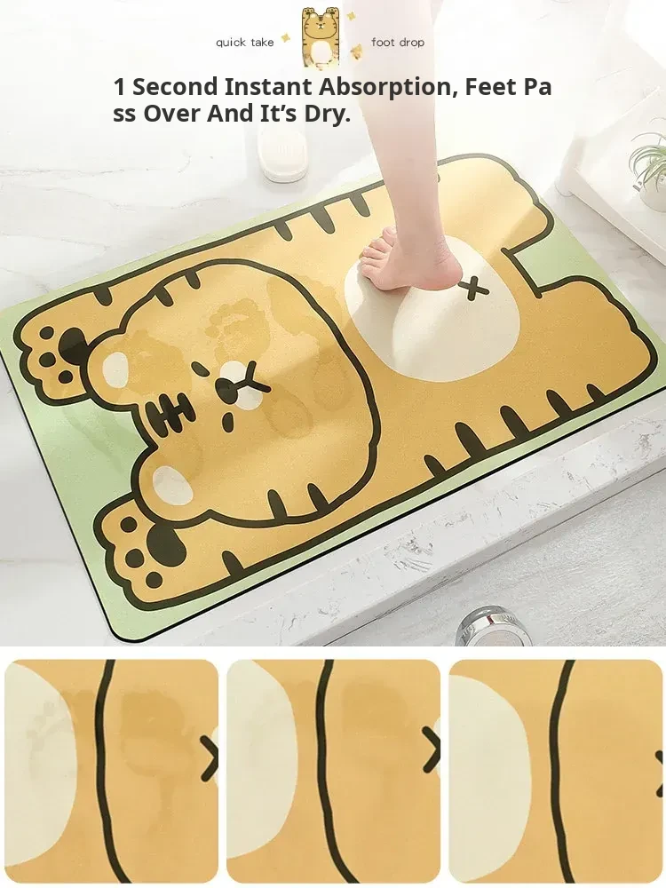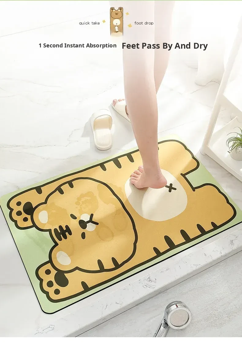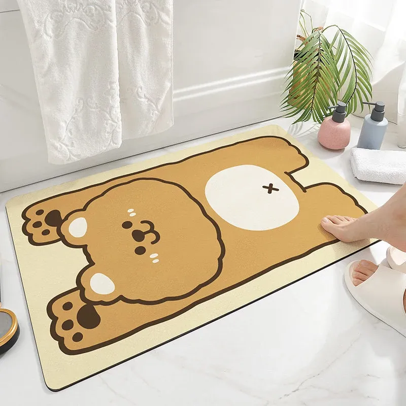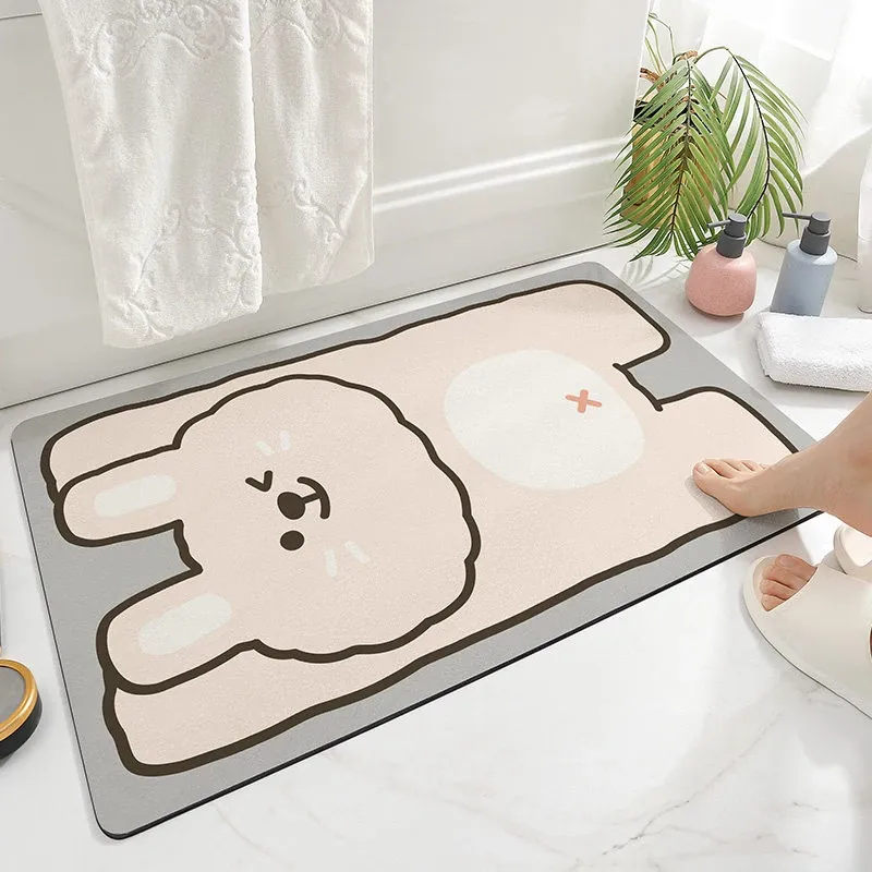 Cranberry Home Absorbent Bathroom Mat - Non-Slip Doorway Rug with Cartoon Design, Made of Diatom Mud for Ultimate Comfort and Safety in Your Toilet and Bathroom!