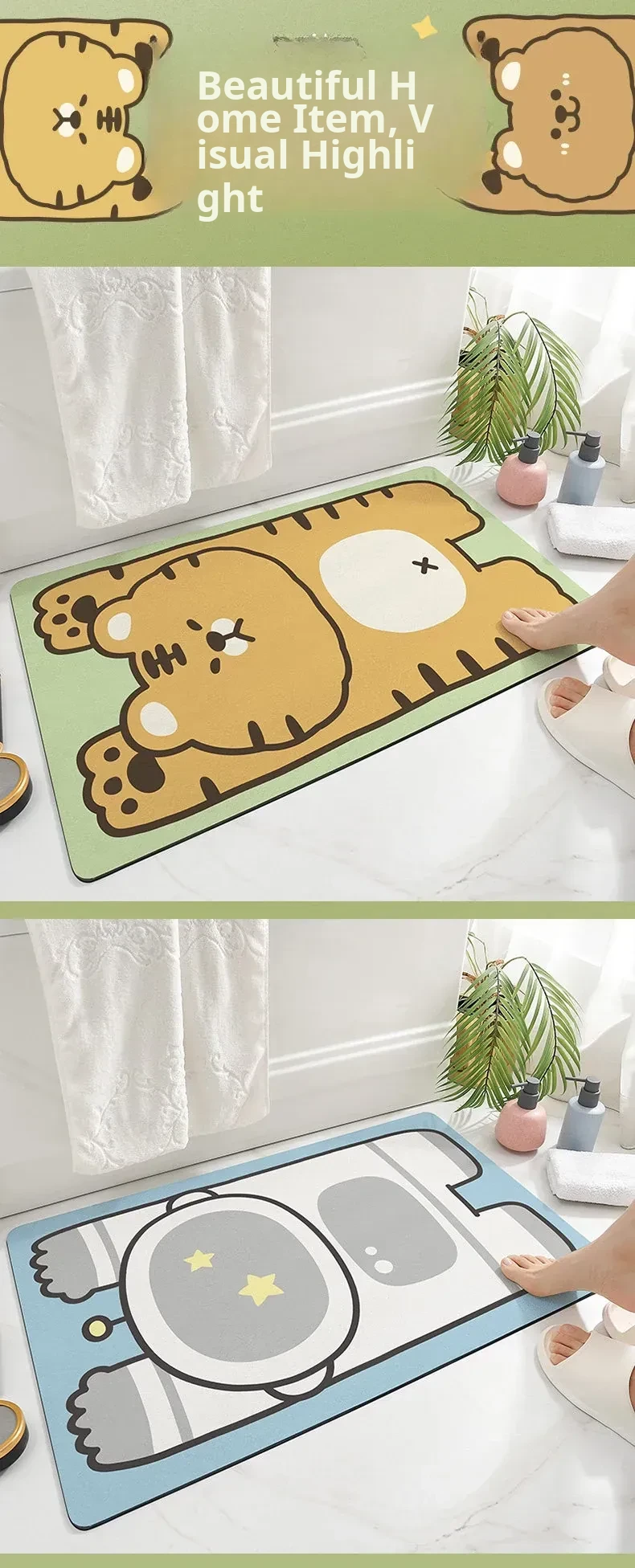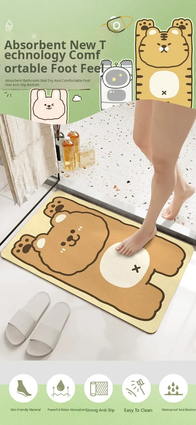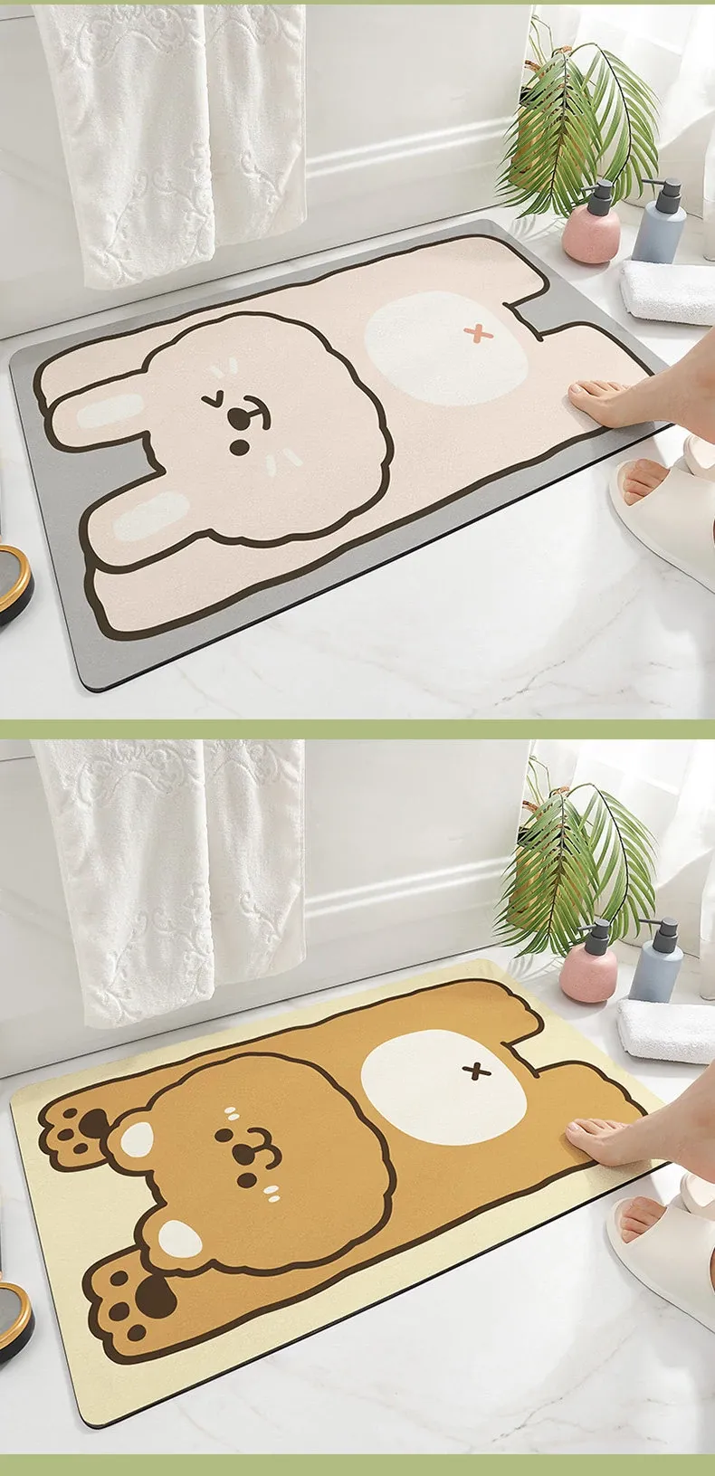 Cranberry Home Absorbent Bathroom Mat - Non-Slip Doorway Rug with Cartoon Design, Made of Diatom Mud for Ultimate Comfort and Safety in Your Toilet and Bathroom!