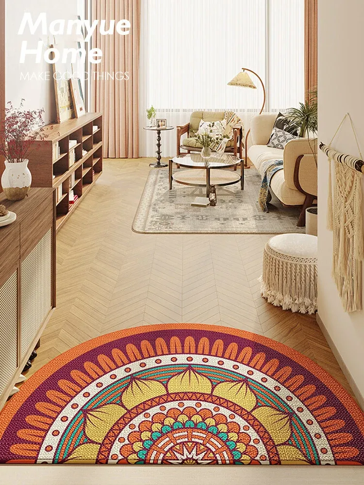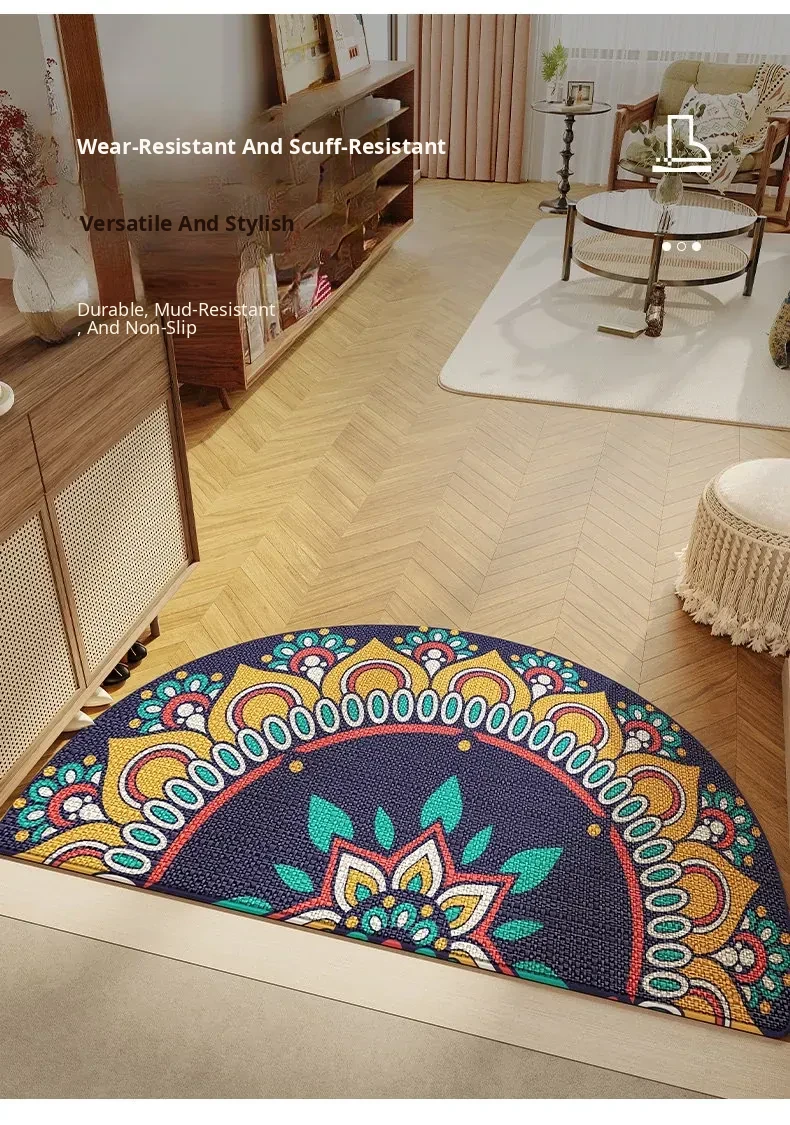 Cranberry Home Ethnic Style Half-Round Doormat - Non-Slip Entrance Mat for Dust and Dirt Resistance, Perfect for Your Entryway!