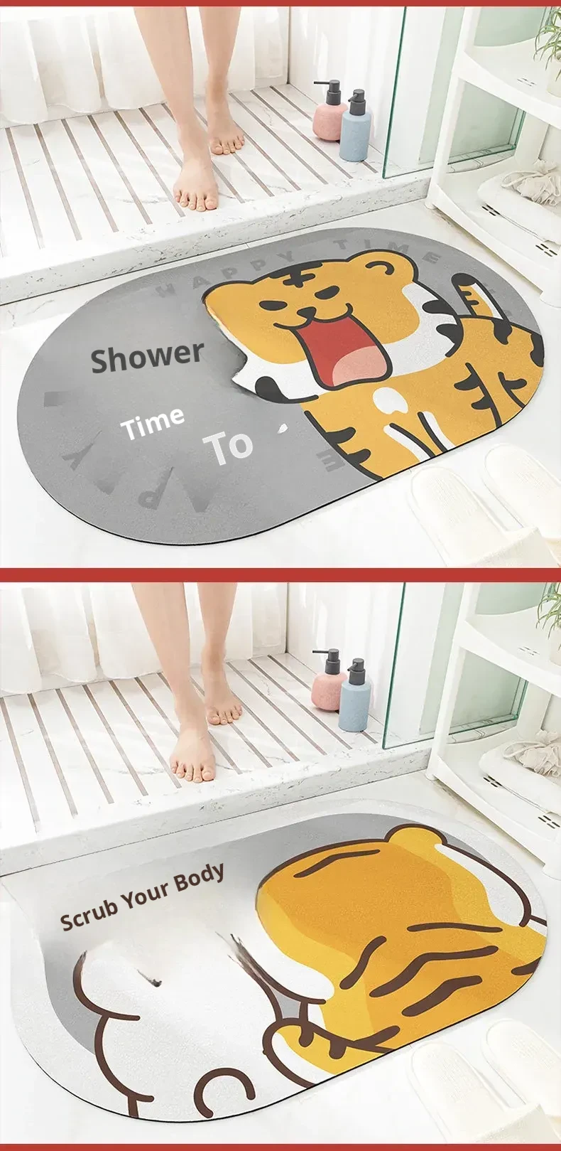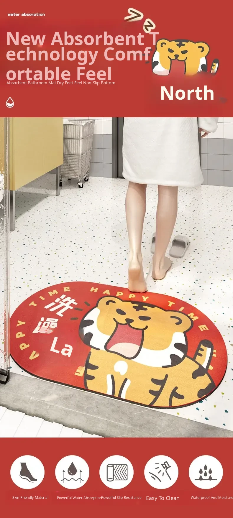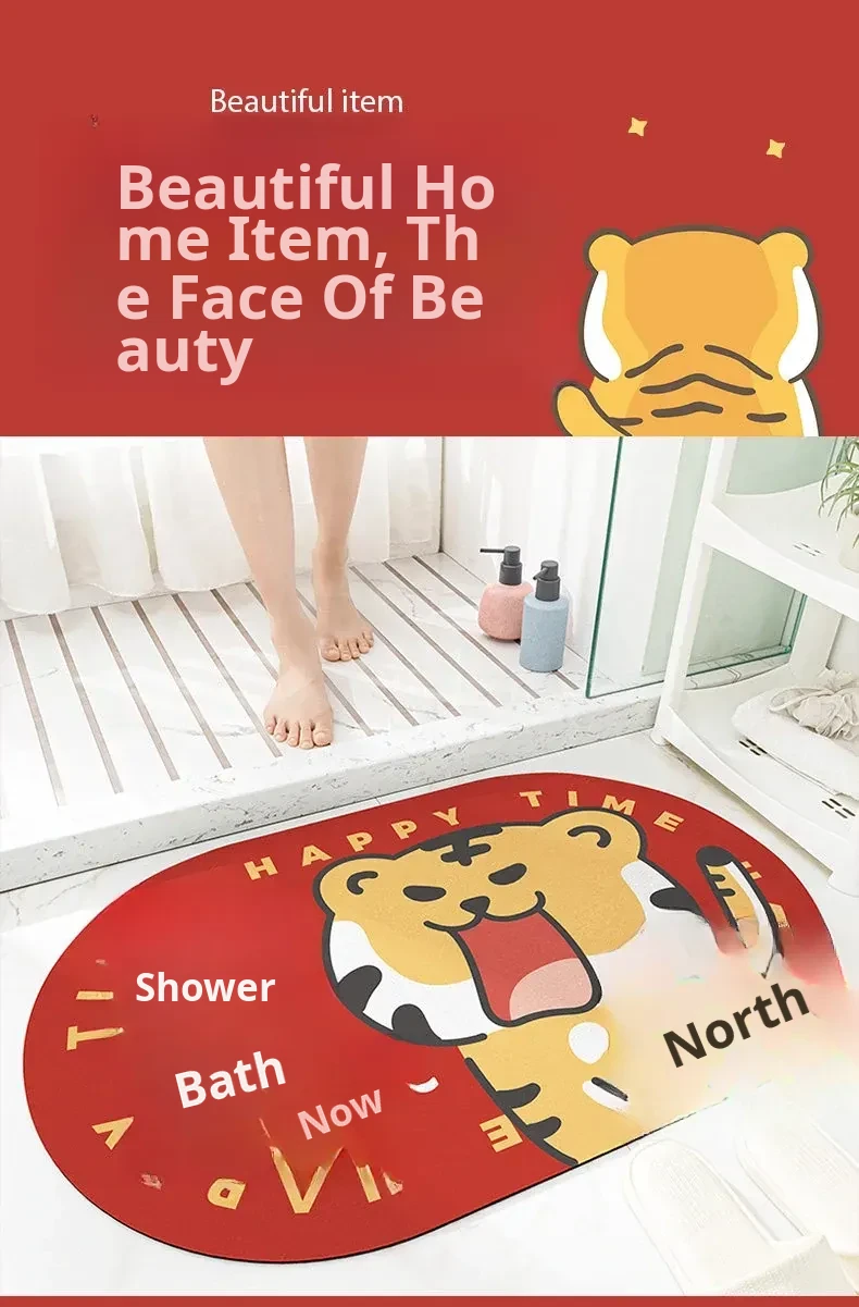 Cranberry Home Mat - Tiger Year Bathroom Floor Mat, Absorbent Door Mat for Home Entryway, Ideal for Toilet and Bathroom Use, Soft and Stylish Carpet for Enhanced Comfort