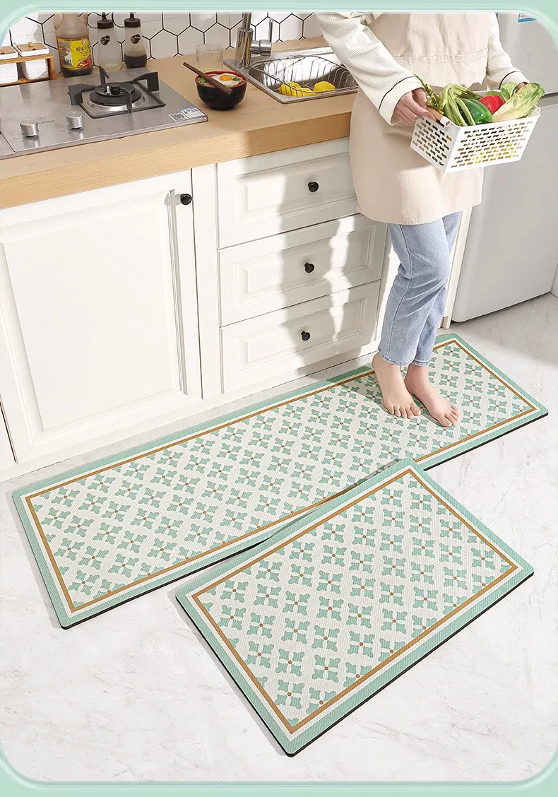Cranberry Home Non-Slip Oil-Resistant Kitchen Mat - PVC, Easy to Clean, Durable Leather Design, Perfect for Keeping Your Kitchen Spotless and Stylish!