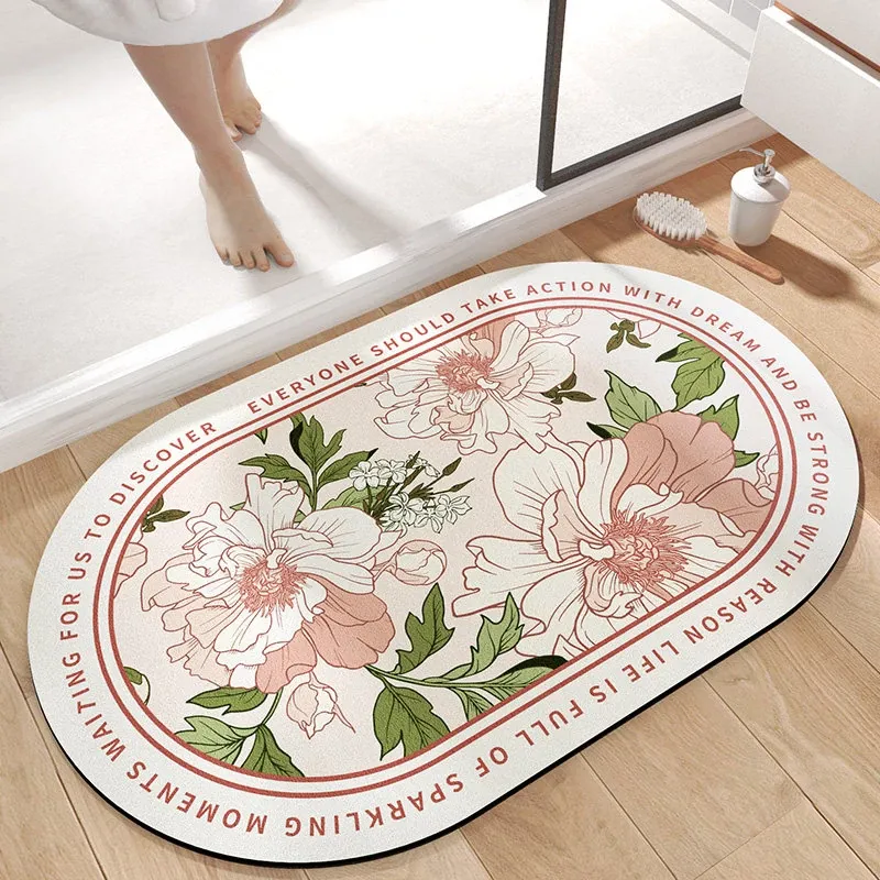 Cranberry Home Oval Bathroom Mat - Absorbent Non-Slip Rugs for Home Use, Perfect for Doorways and Showers, Ideal Water-Absorbent Bath Mats for Safety and Style