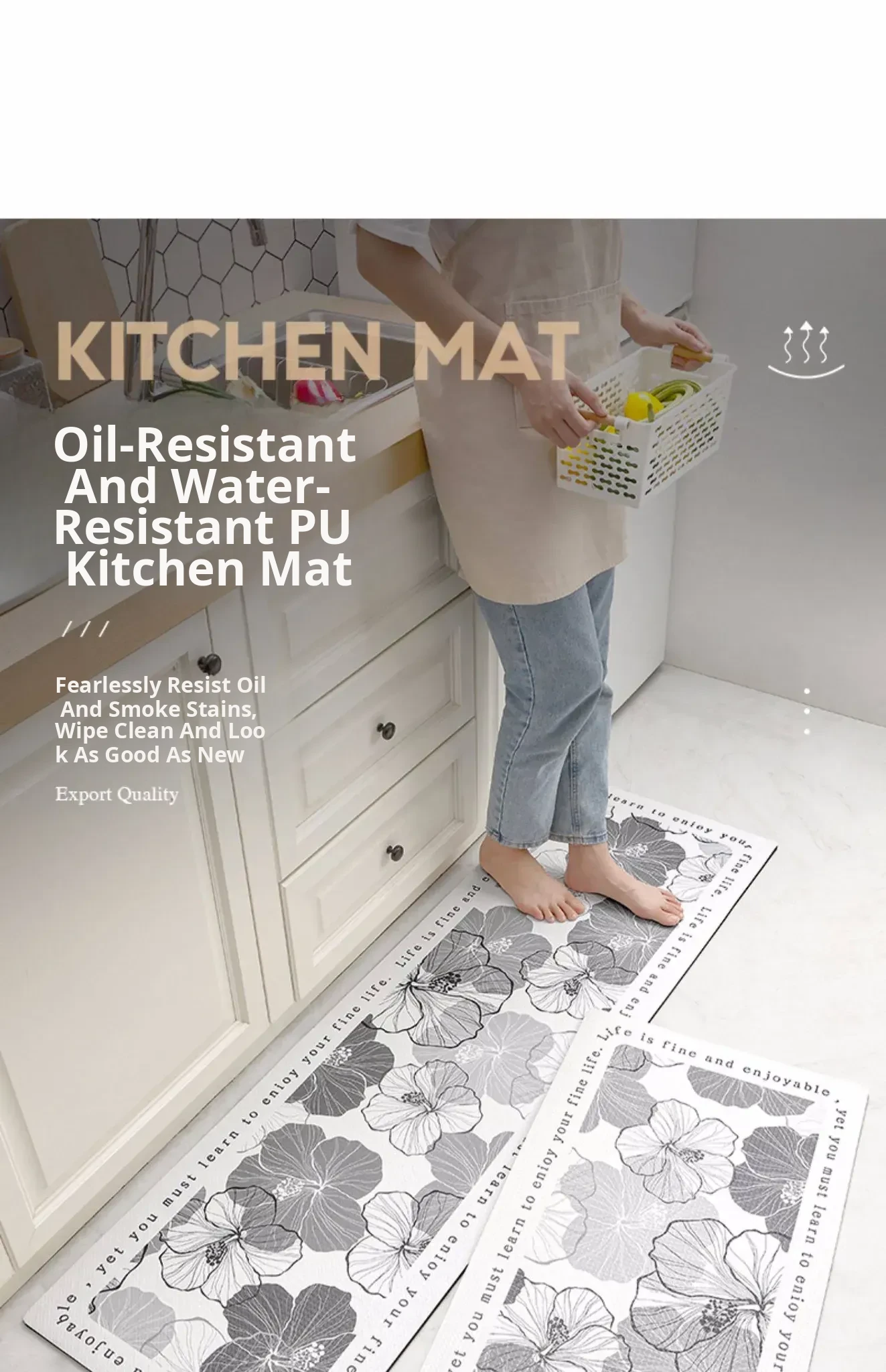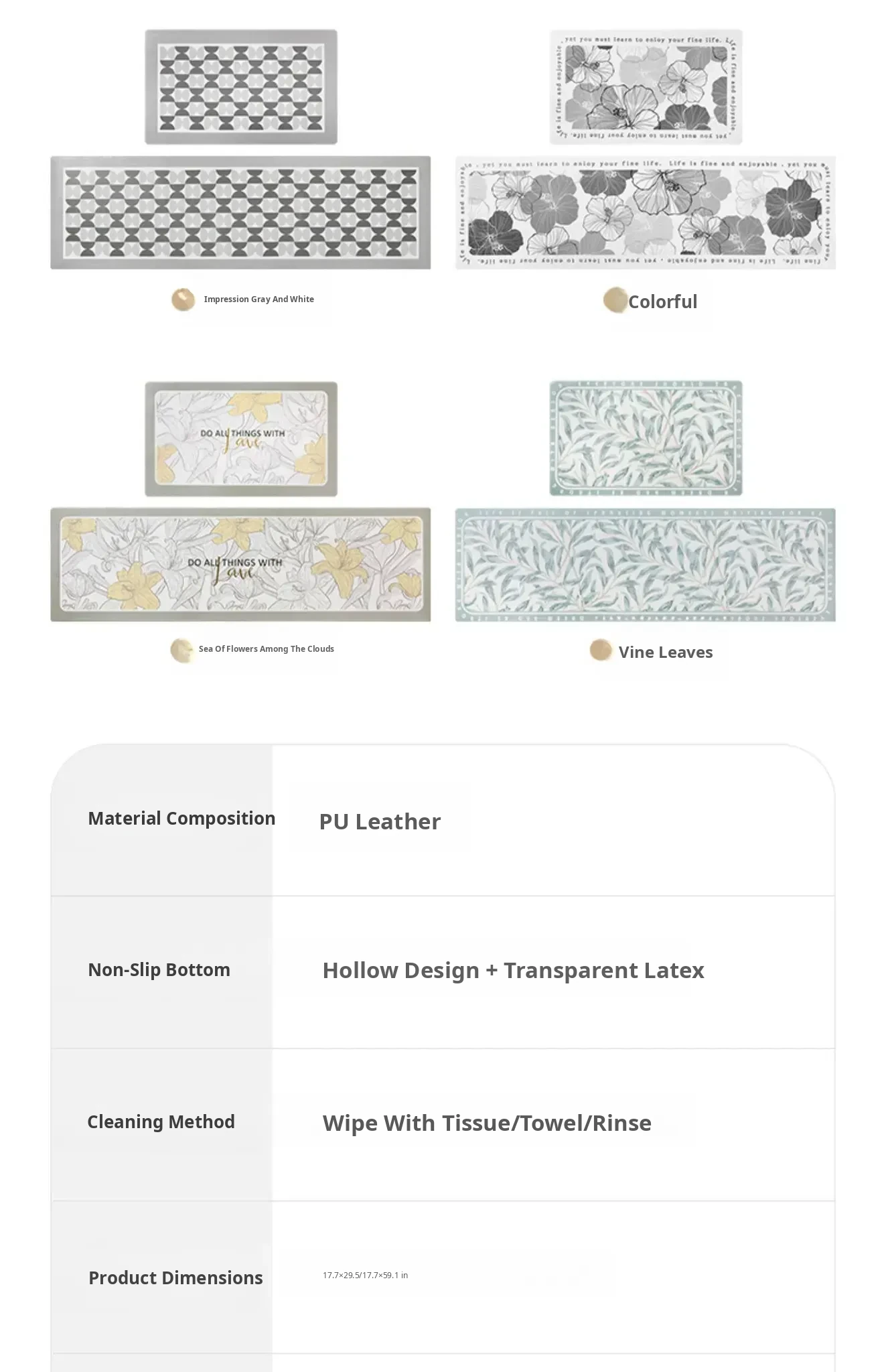 Cranberry Home Waterproof Non-Slip Kitchen Mat - PVC Oil-Resistant, Easy-Clean, Comfortable Floor Cushion for Safe and Stylish Home Decor