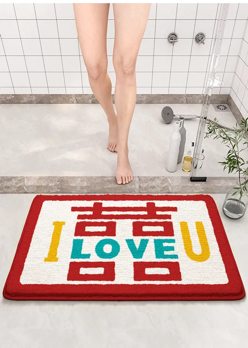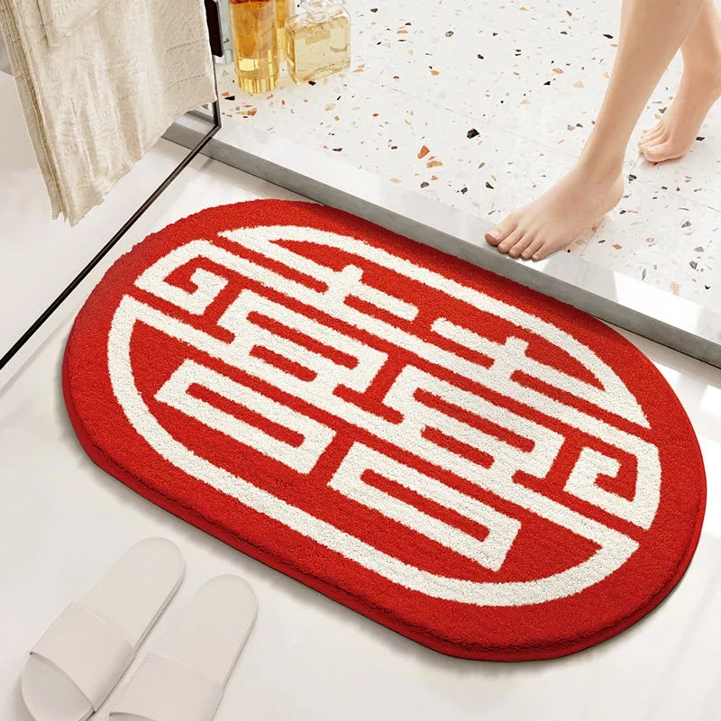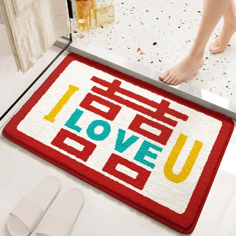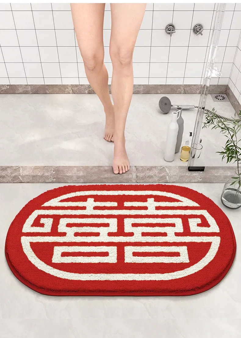 Cranberry Home Wedding Celebration Bath Mat - Absorbent, Non-Slip Bathroom Rug for Newlyweds, Red Carpet for Wedding Room