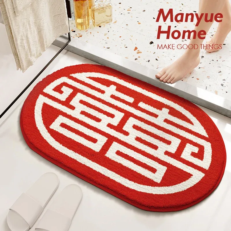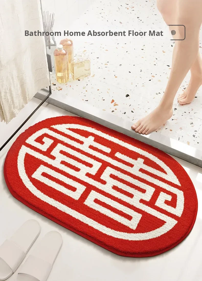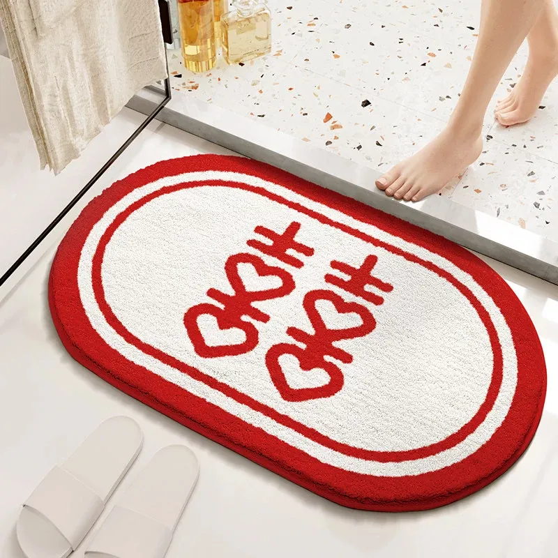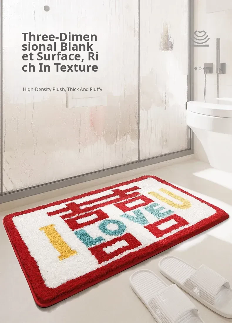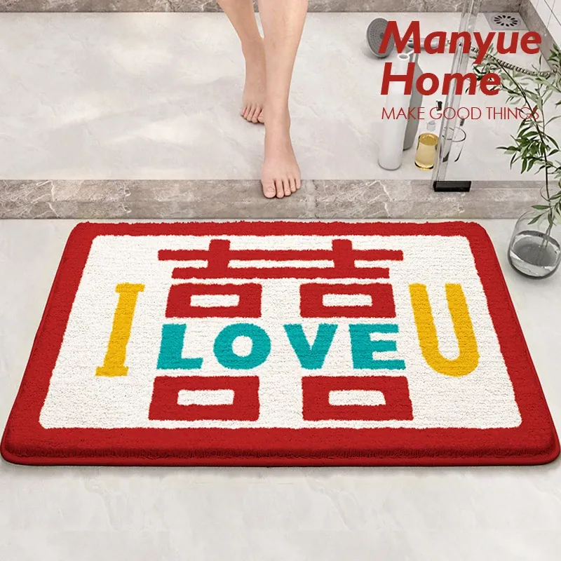 Cranberry Home Wedding Celebration Bath Mat - Absorbent, Non-Slip Bathroom Rug for Newlyweds, Red Carpet for Wedding Room