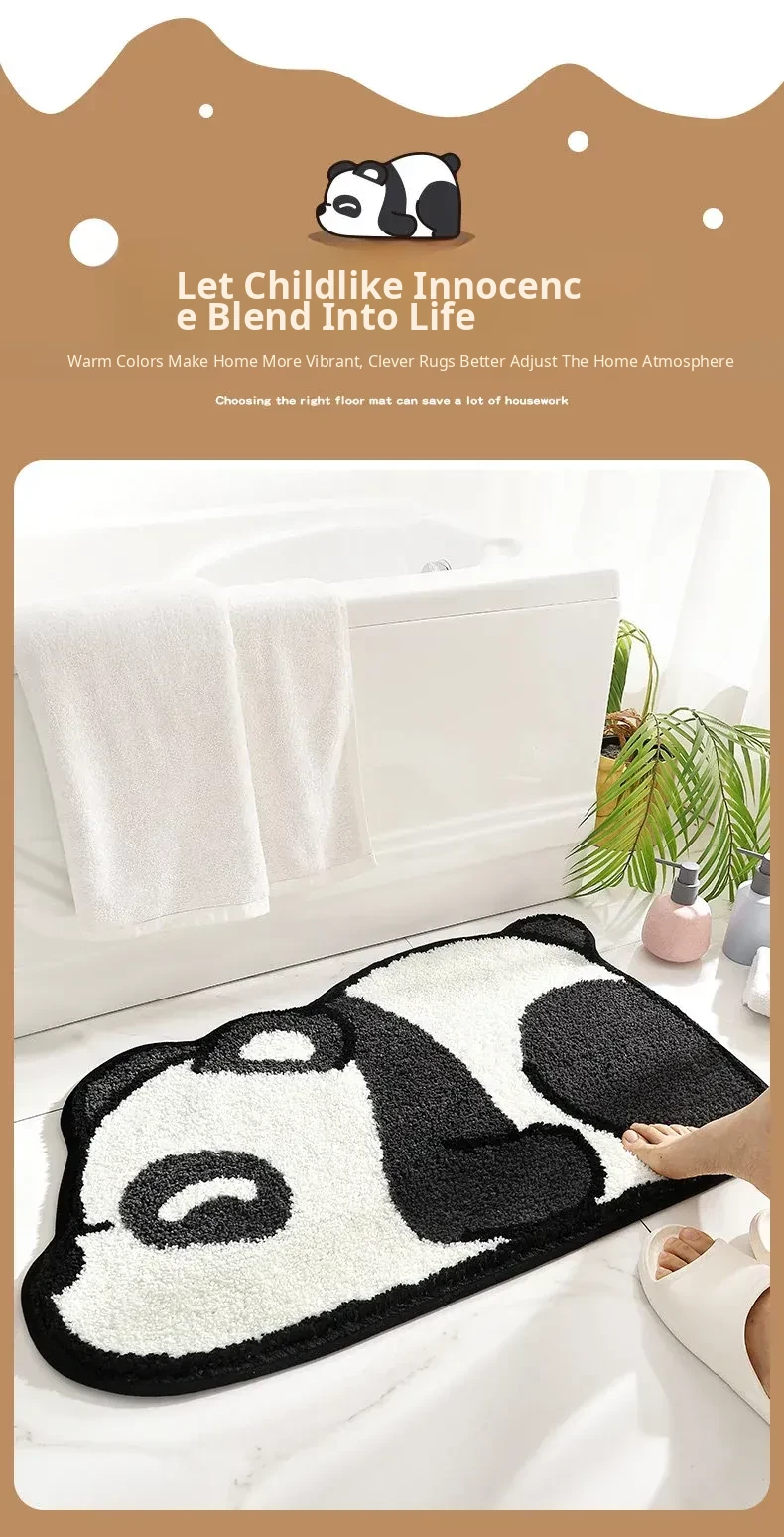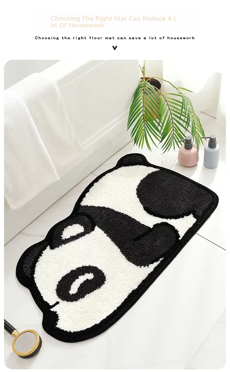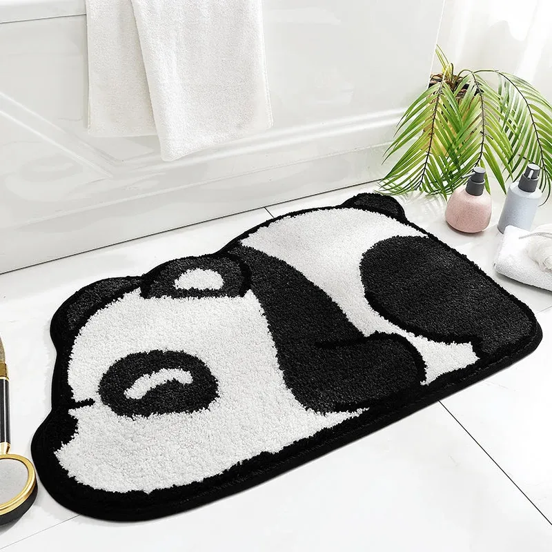 MerryHome Bathroom Absorbent Mat - Non-Slip Floor Rug for Toilet Entrance, Featuring Soft and Durable Tech Velvet with Adorable Panda Design