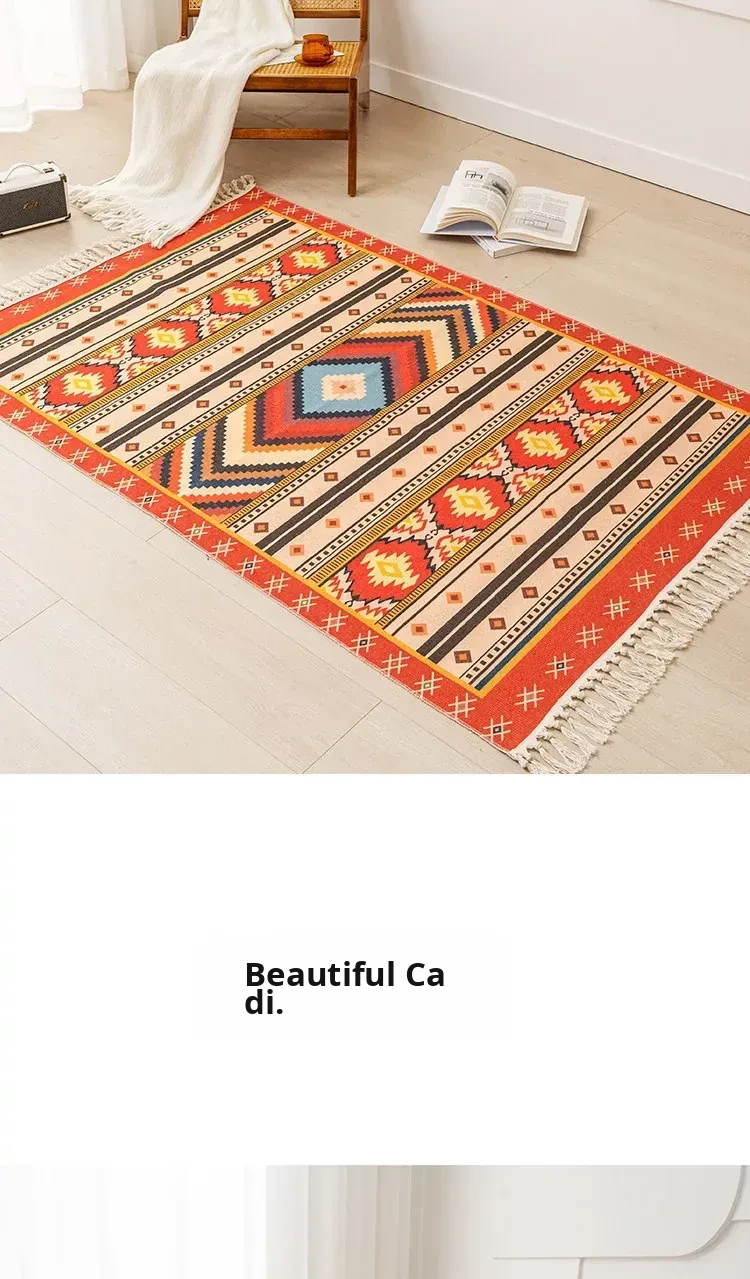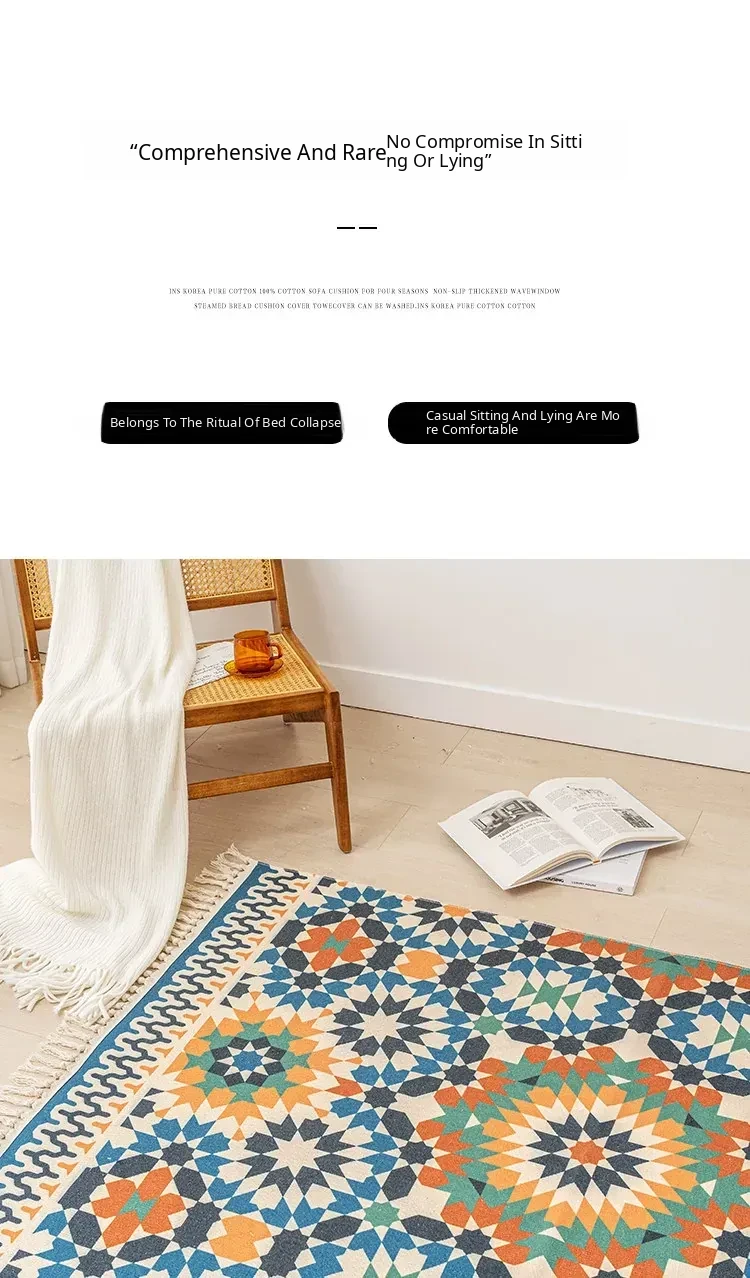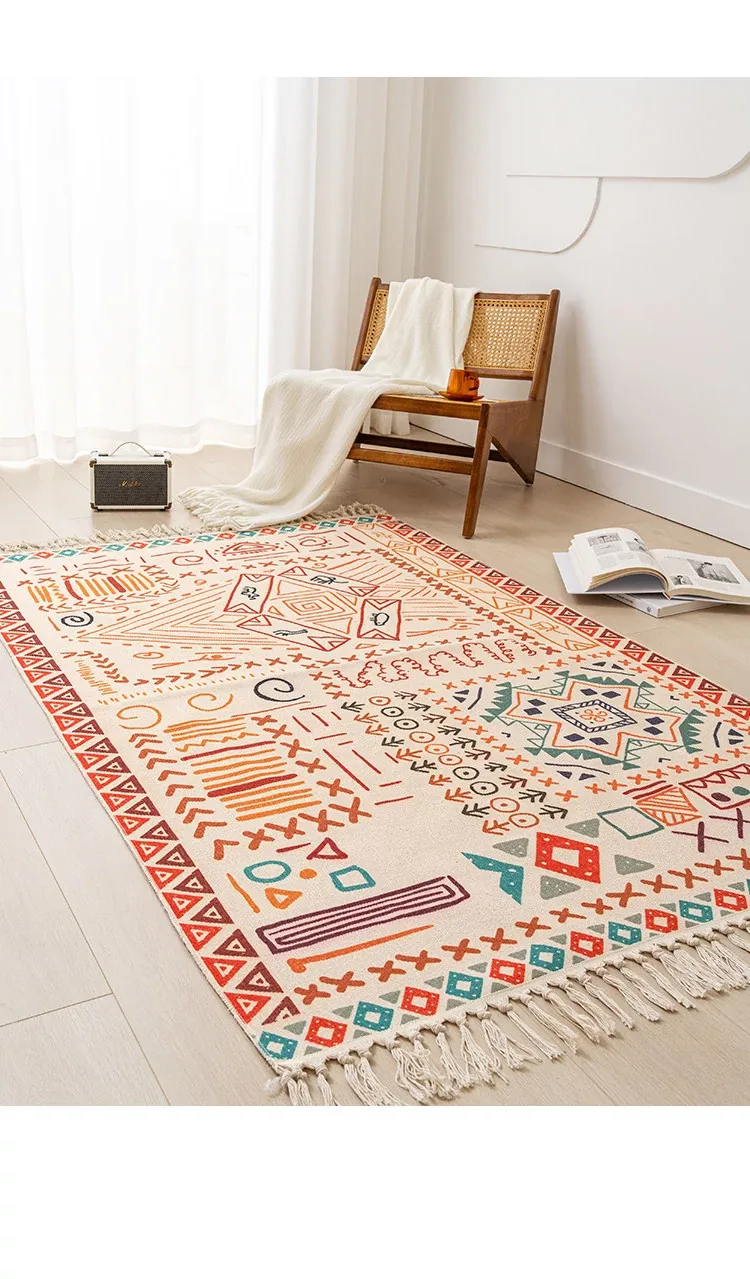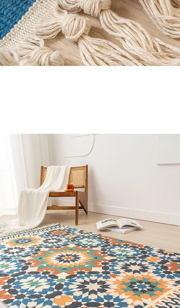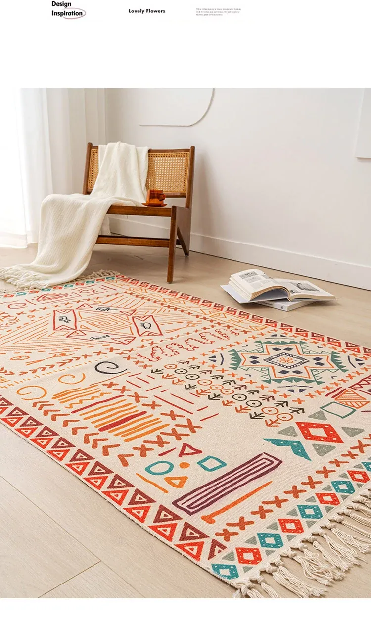 Nordic Retro Cotton Linen Area Rug - Versatile Bedroom Bedside Mat & Living Room Sofa Coffee Table Carpet for Cozy Home Decor
