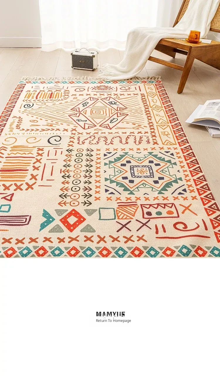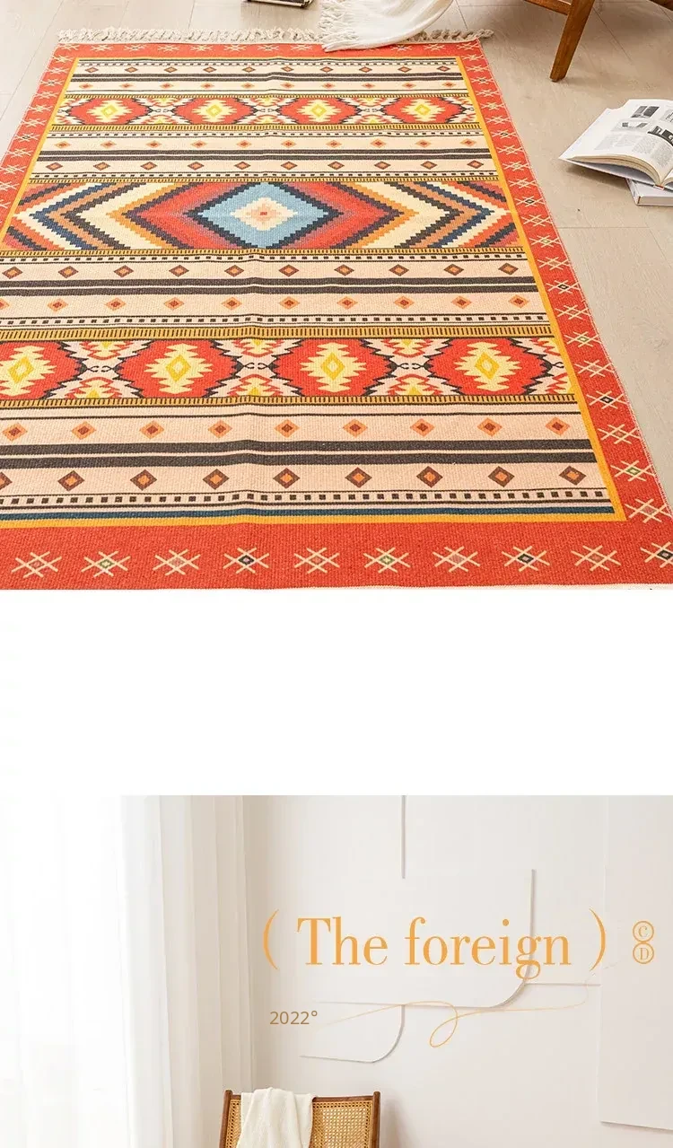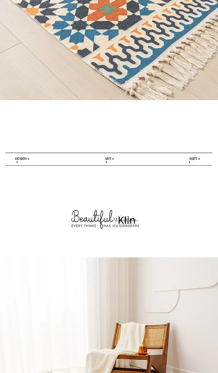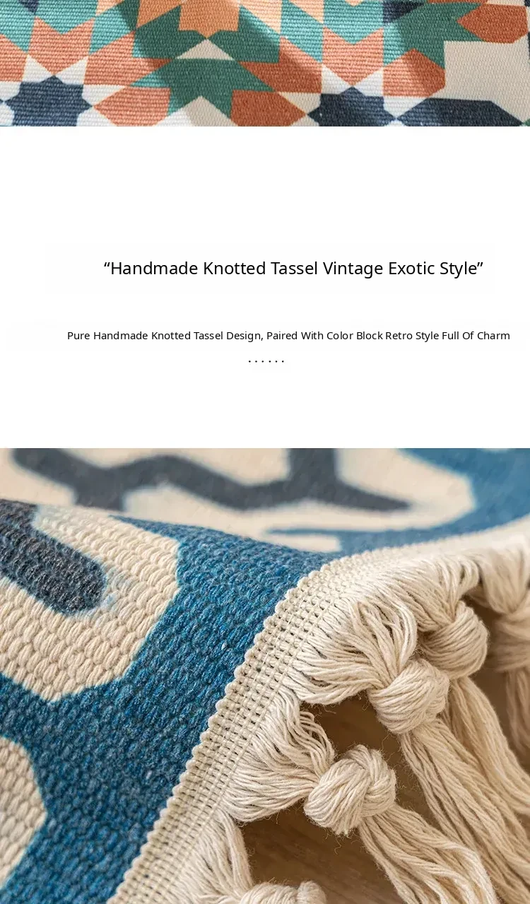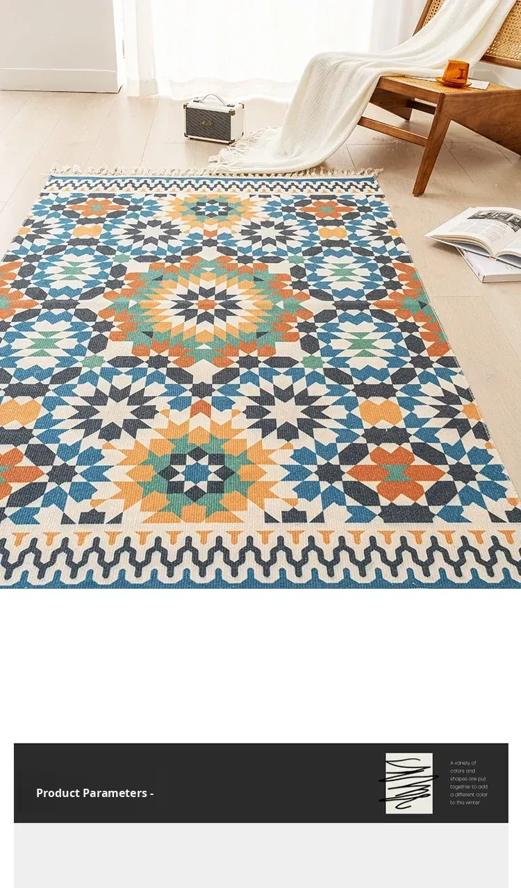 Nordic Retro Cotton Linen Area Rug - Versatile Bedroom Bedside Mat & Living Room Sofa Coffee Table Carpet for Cozy Home Decor