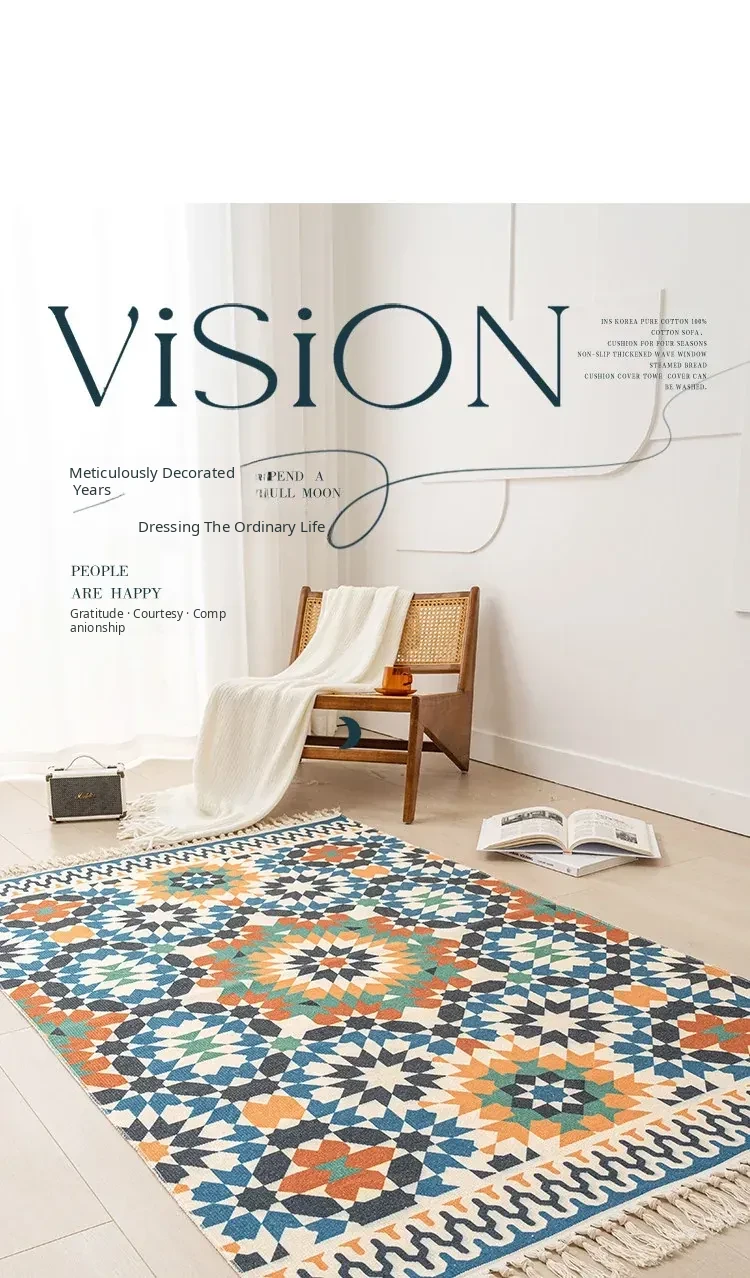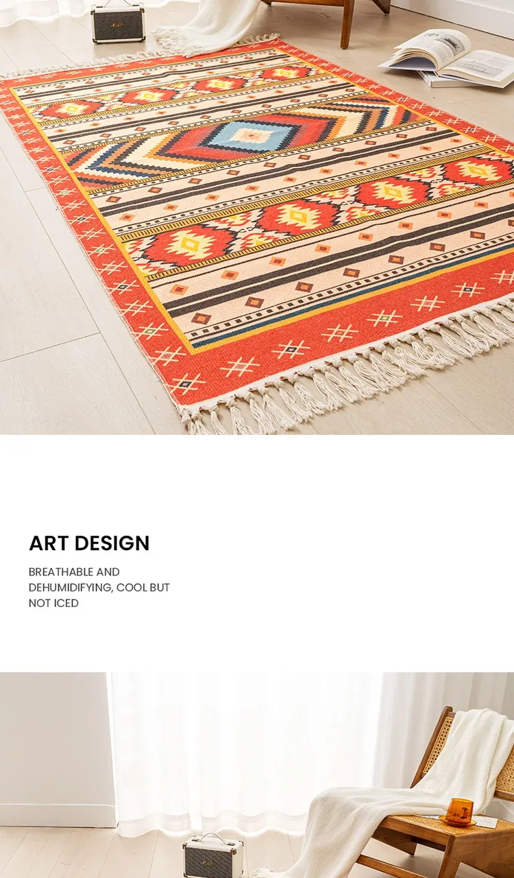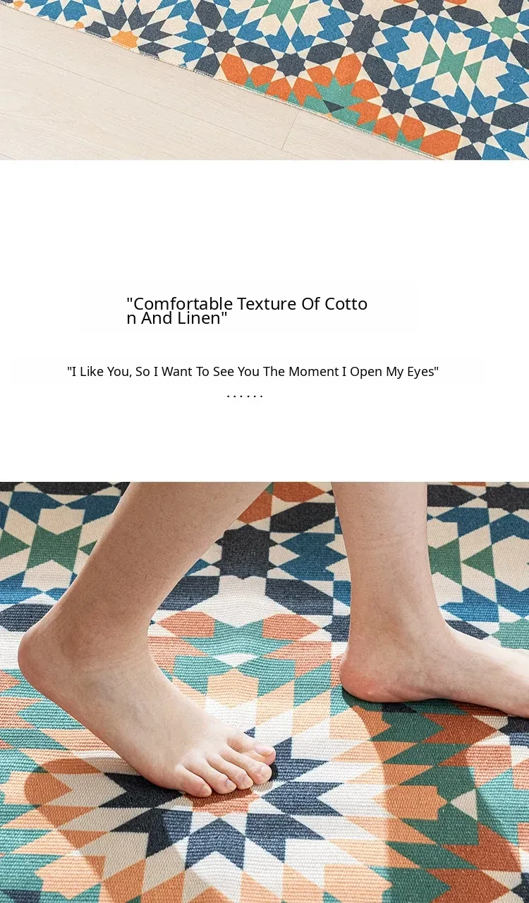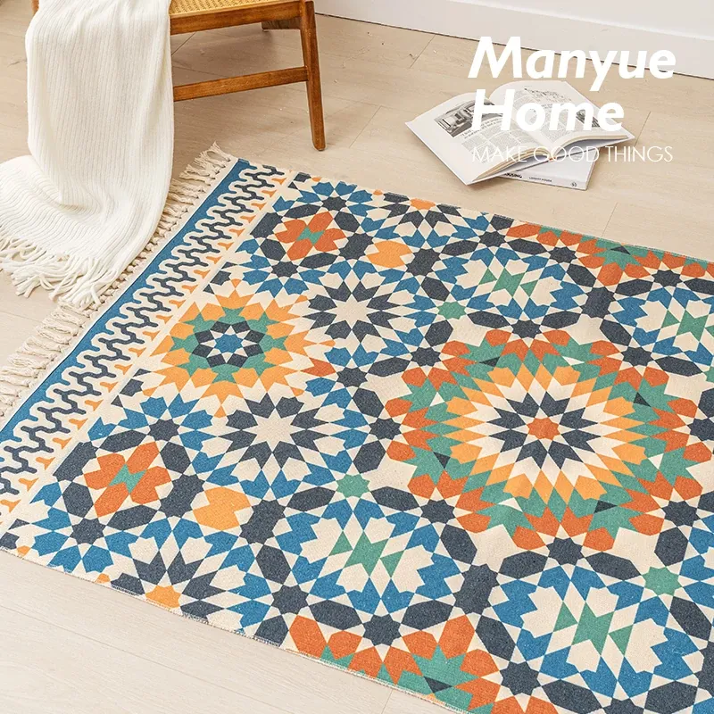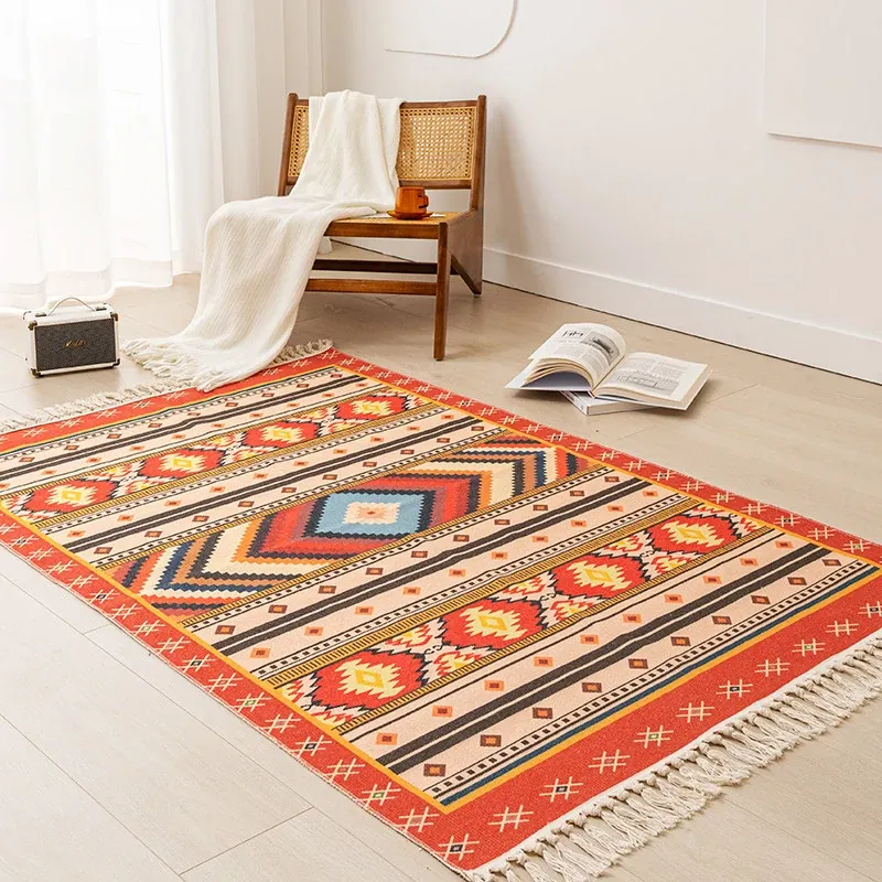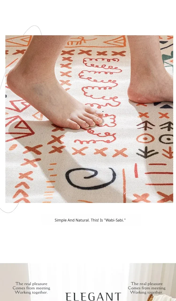 Nordic Retro Cotton Linen Area Rug - Versatile Bedroom Bedside Mat & Living Room Sofa Coffee Table Carpet for Cozy Home Decor