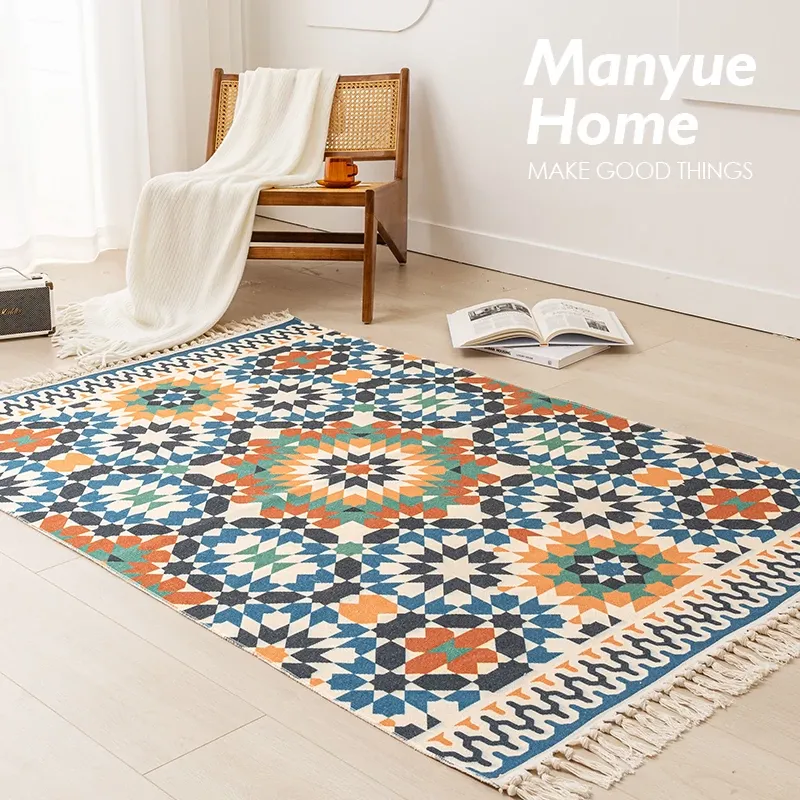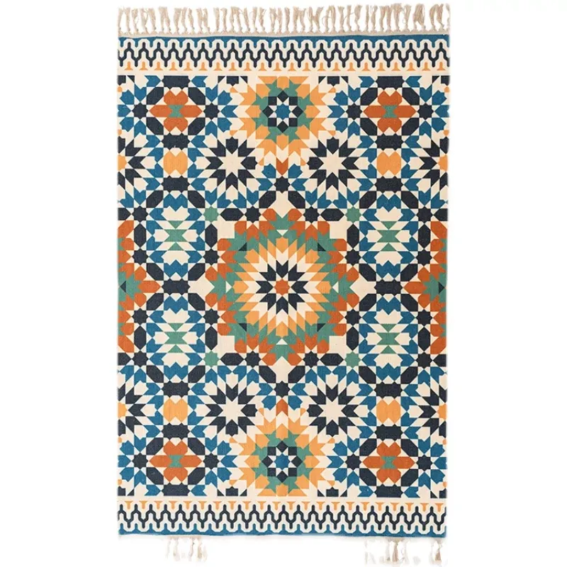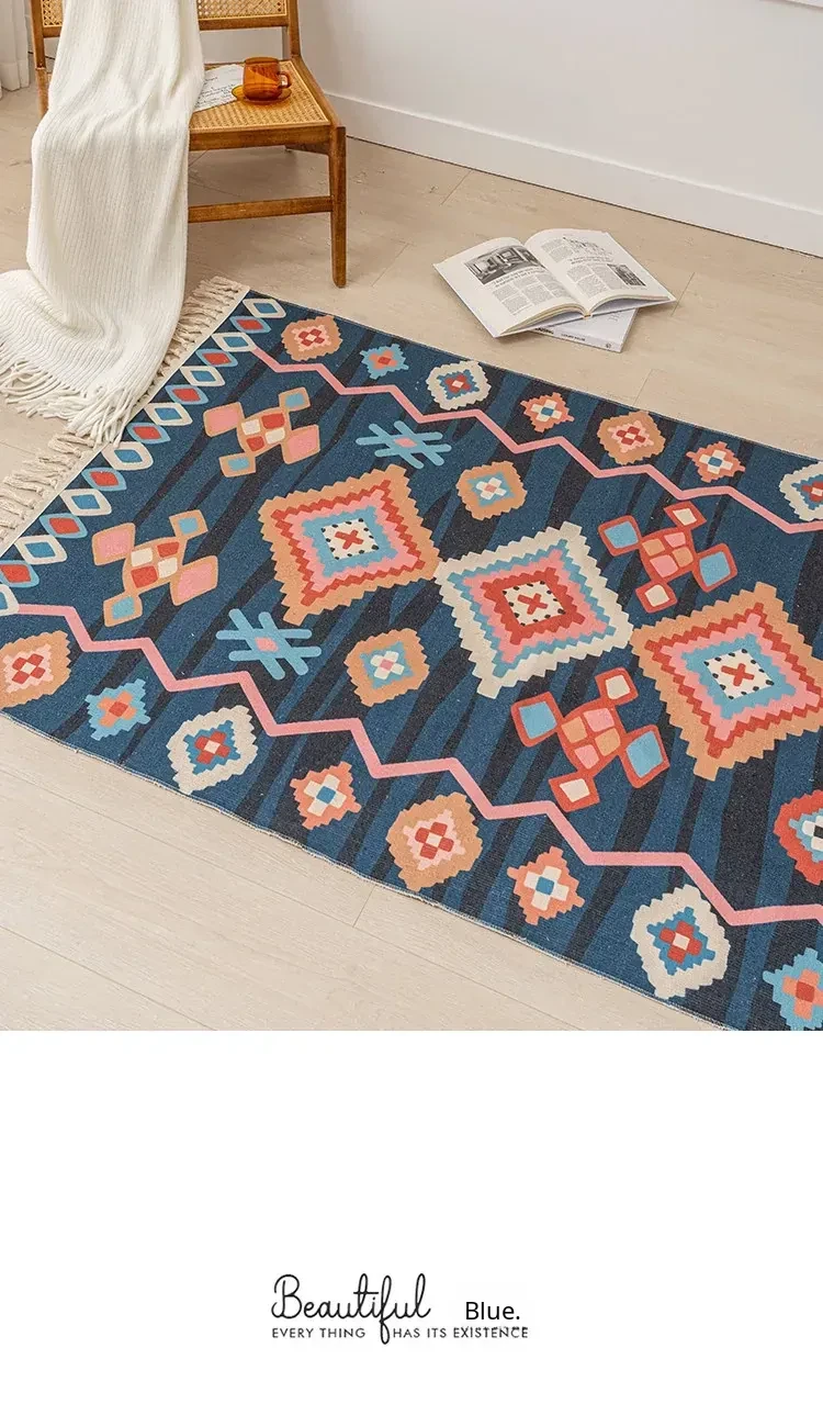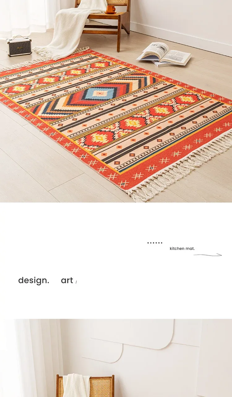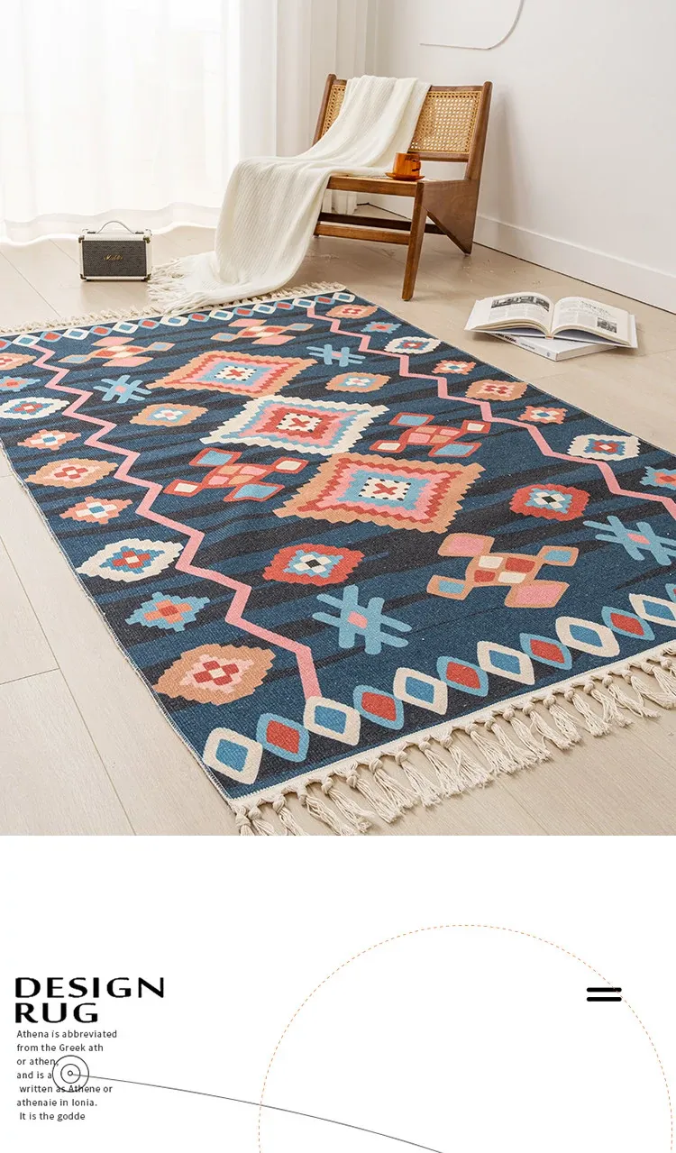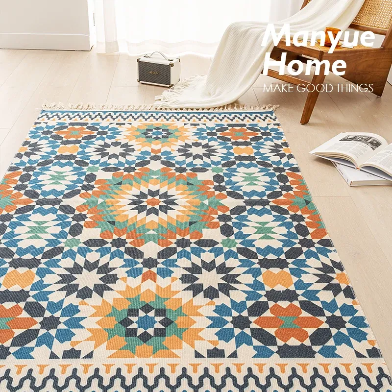 Nordic Retro Cotton Linen Area Rug - Versatile Bedroom Bedside Mat & Living Room Sofa Coffee Table Carpet for Cozy Home Decor