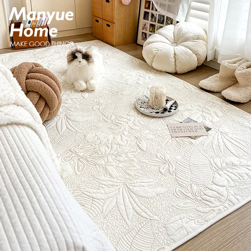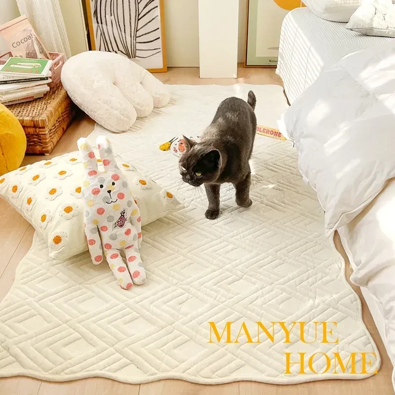 Cranberry Home Nordic INS Cotton Bedside Mat - Cream Color Bedroom Carpet, Pure Cotton Living Room Rug, Perfect for Crawling and Tatami Areas
