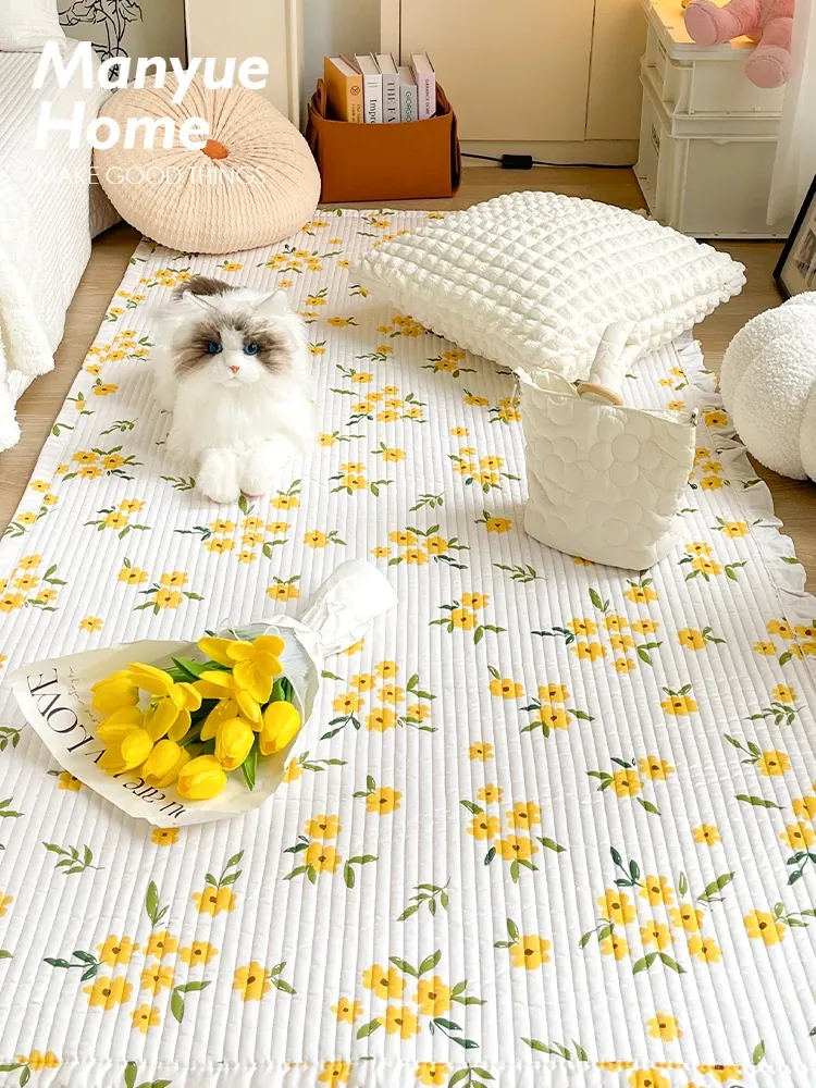 Cranberry Home Cotton Bedside Mat - Luxurious Bedroom and Living Room Carpet, Full Coverage for Baby Crawling, Tatami Style, Non-Slip and Machine Washable