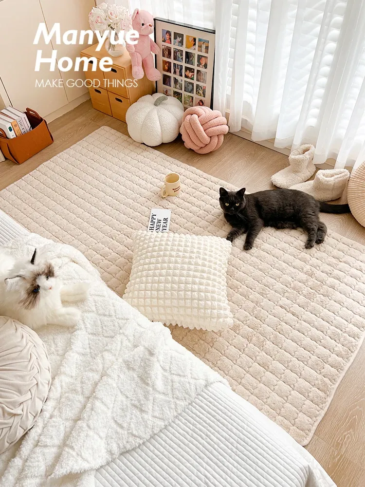 Korean Thick Short Plush Area Rug - Cozy Rectangular Carpet for Bedroom, Living Room, and Tea Table; Perfect Floor Mat for Crawling and Tatami Style Decor