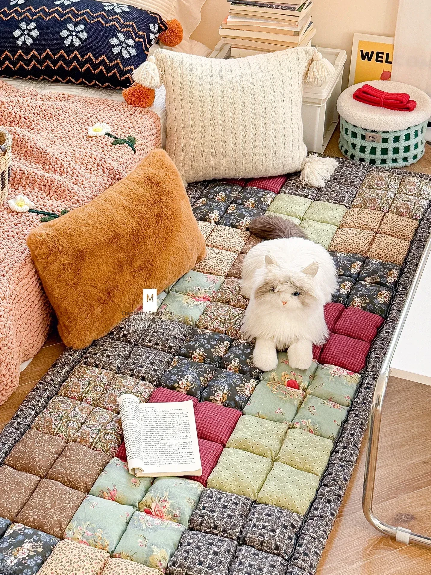 Cranberry Home Artistic Ins Inspired Washable Cotton Quilted Area Rug – Cozy Living Room Carpet & Bedroom Bedside Mat for Ultimate Comfort