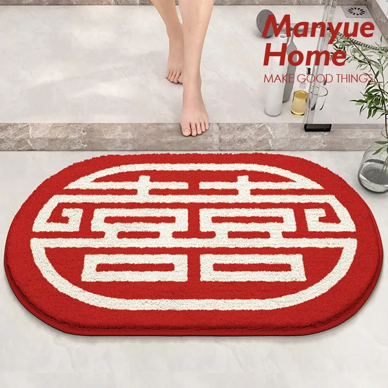 Cranberry Home Wedding Celebration Bath Mat - Absorbent, Non-Slip Bathroom Rug for Newlyweds, Red Carpet for Wedding Room