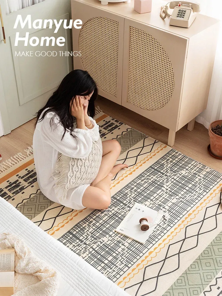 Vintage Cotton Linen Area Rug by ManYueJia - Simple Modern Bedroom Bedside Mat, Perfect for Living Room Sofa and Coffee Table! Stylish and Cozy Home Decor!