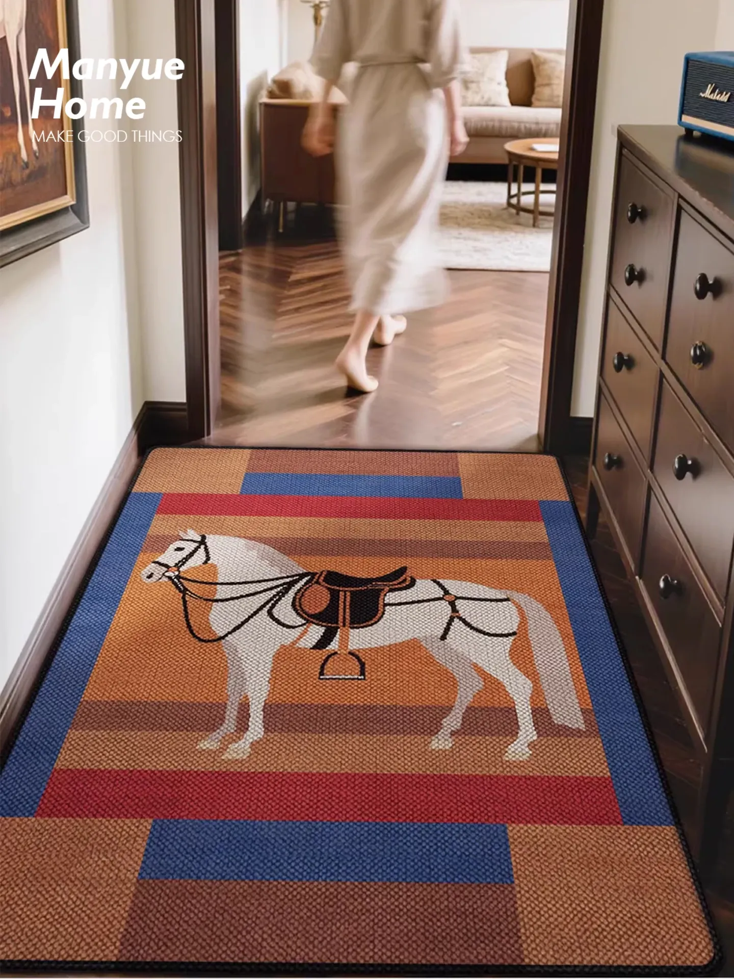 Cranberry Home Premium Entrance Door Mat - Year of the Horse Stylish Dust-Removing Rug for Entryway, Durable and Wash-Free Carpet, Perfect for Front Door Use