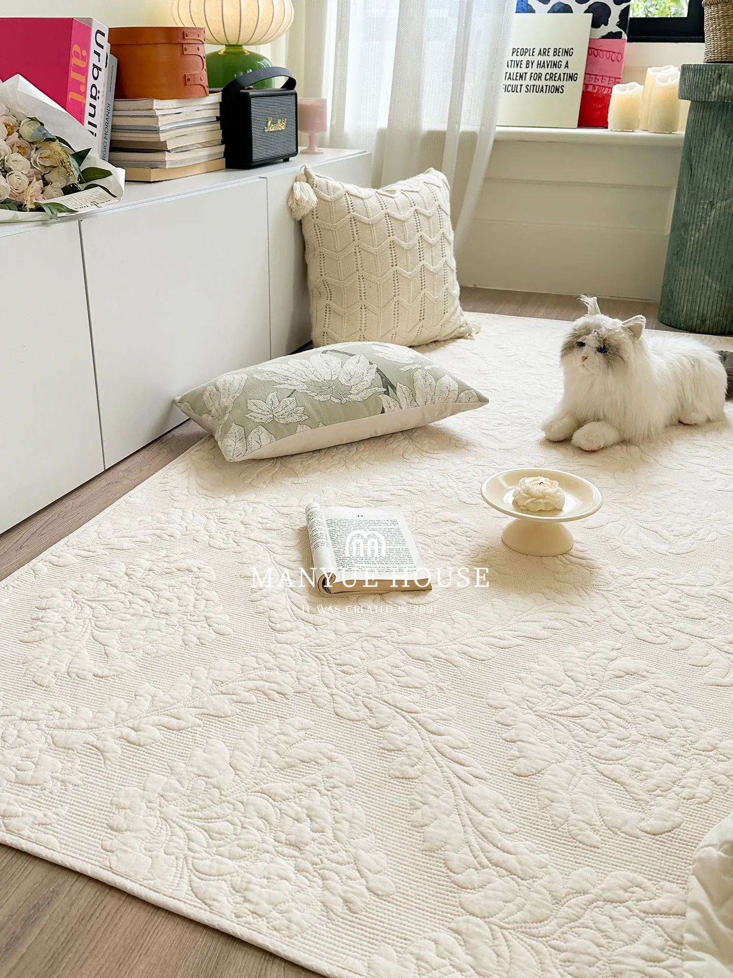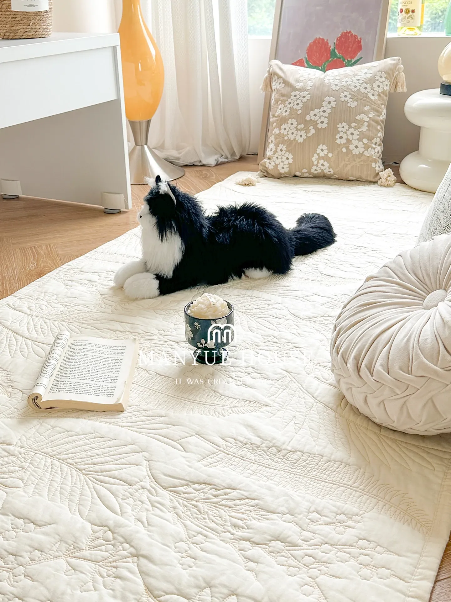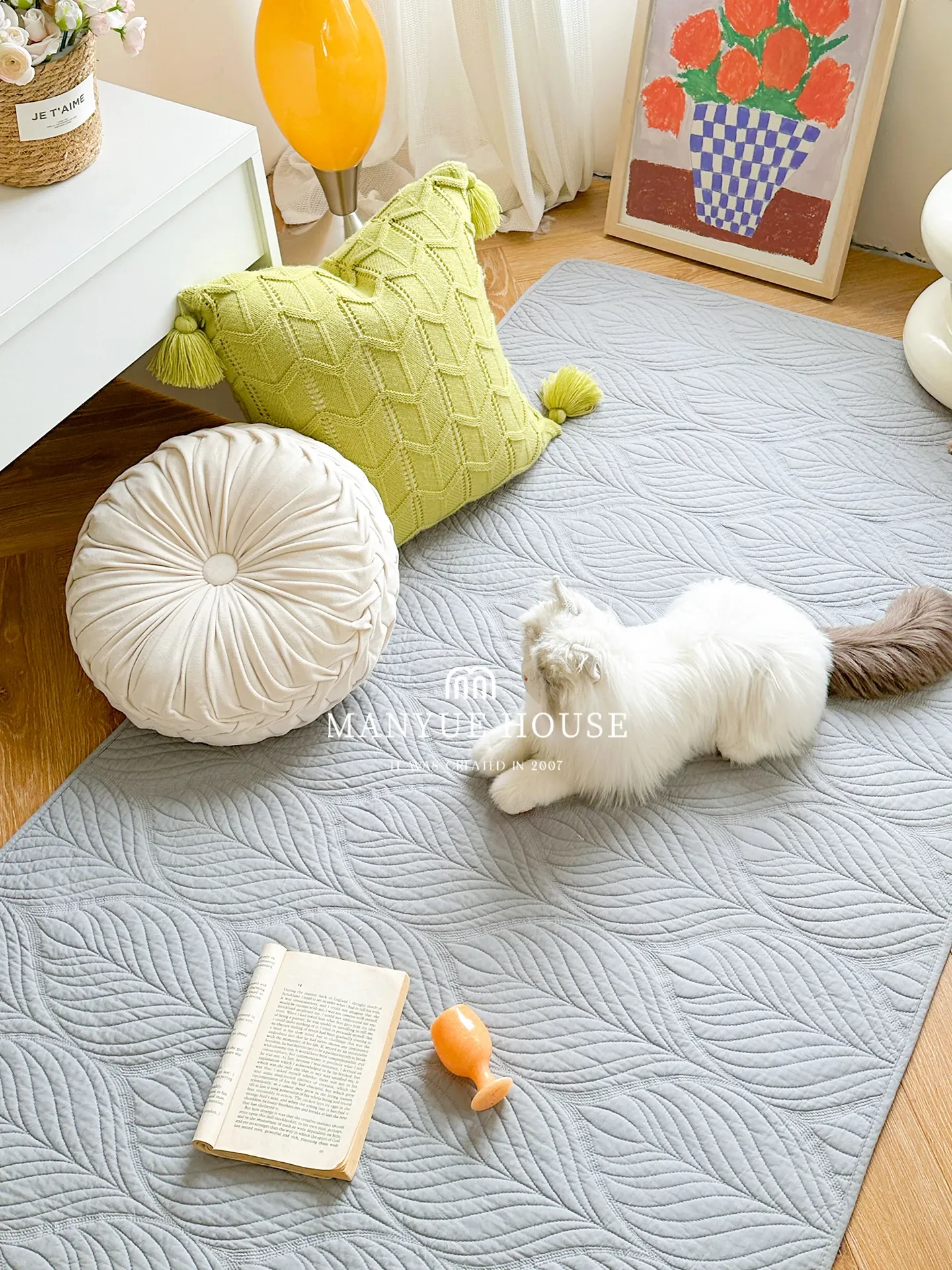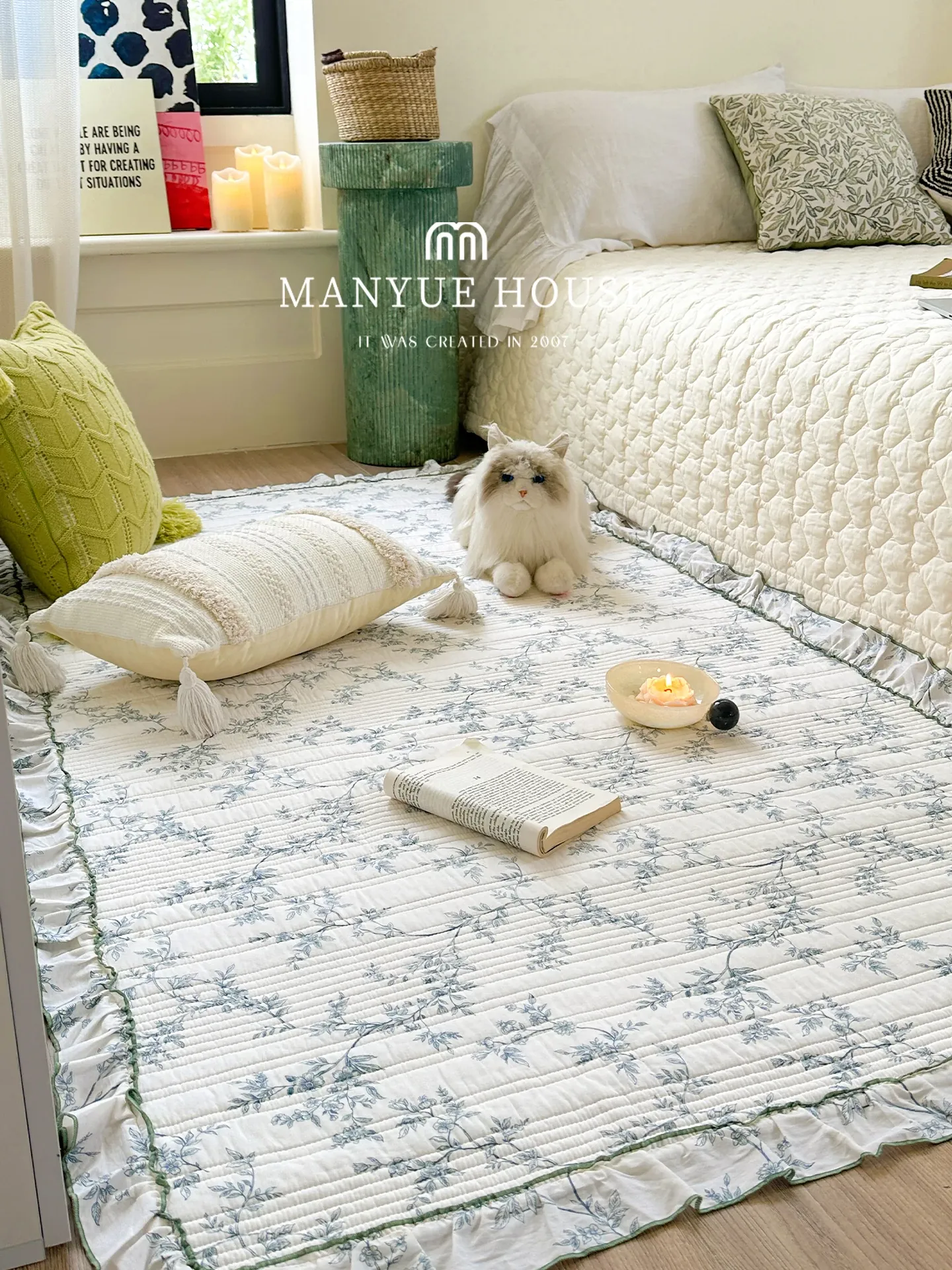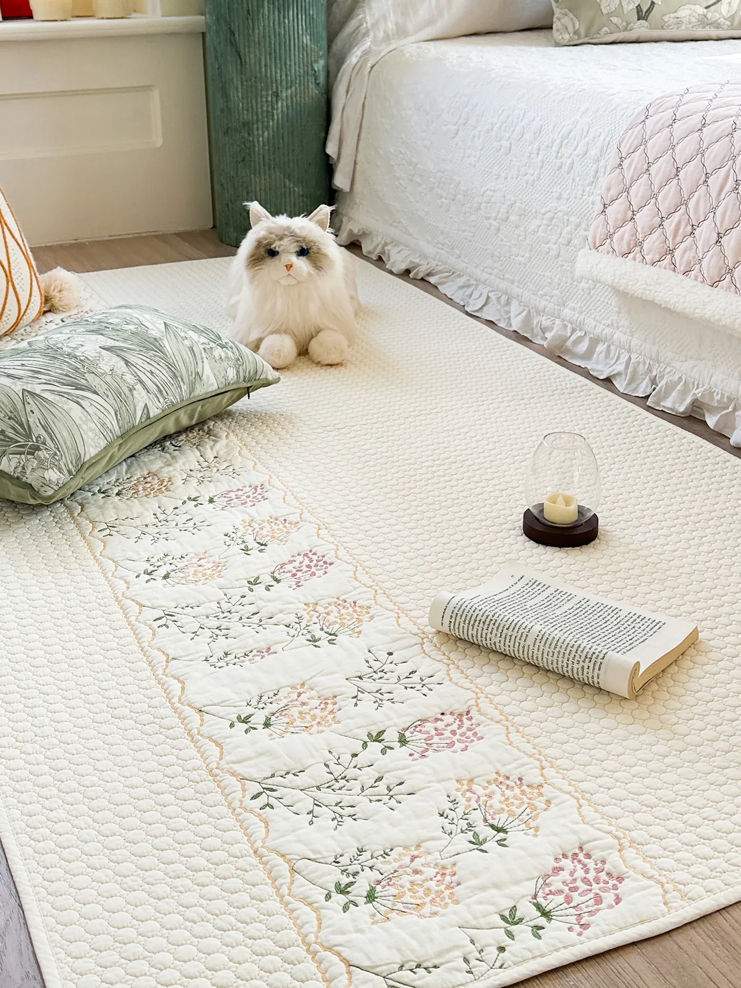 Mian Yue Jia Pure Cotton Washable Embroidered Bedroom Area Rug – Non-Slip Floor Mat for Cozy Comfort and Style in Your Home