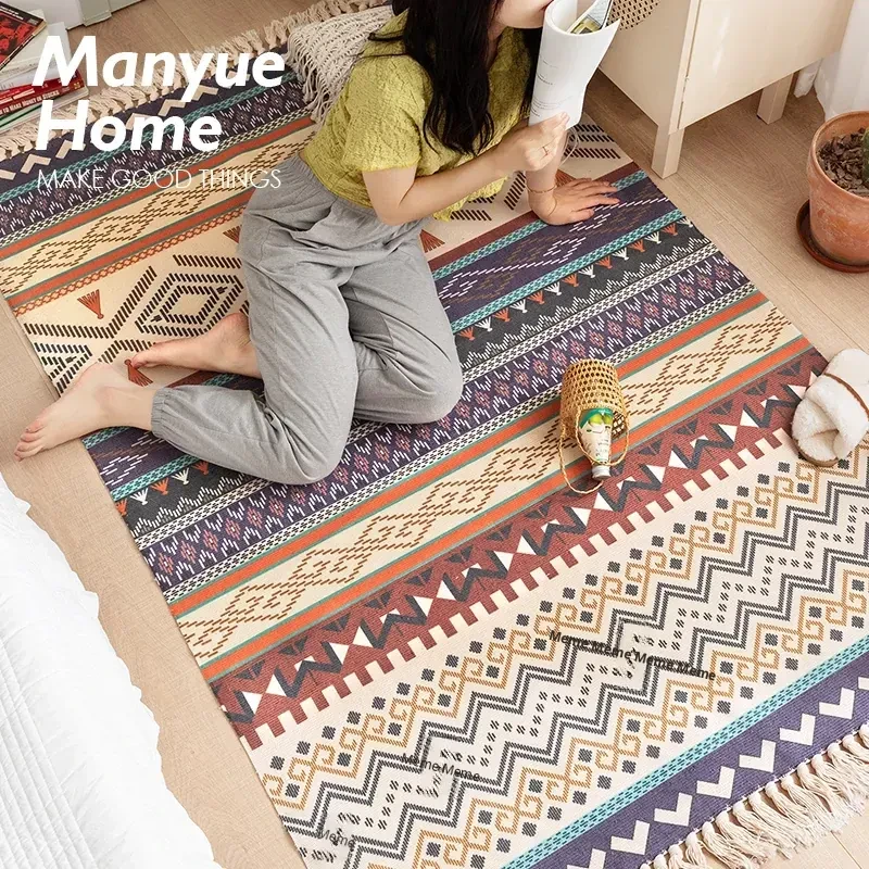 Vintage Cotton Linen Area Rug - Versatile Bedroom, Living Room, and Sofa Mat for Ultimate Comfort and Style
