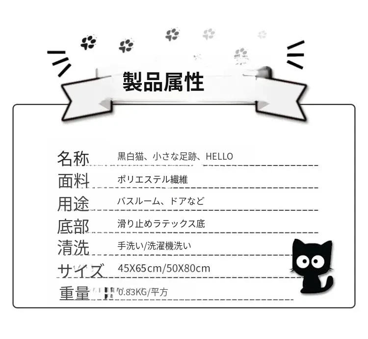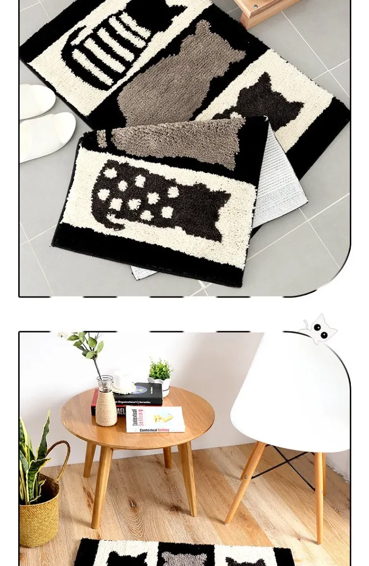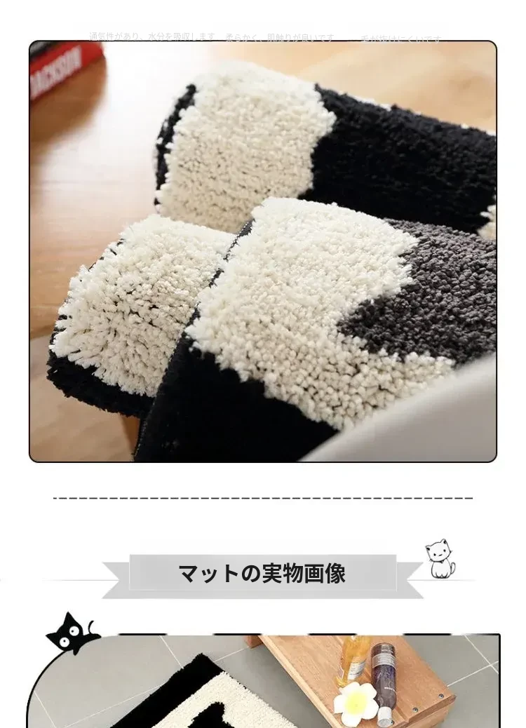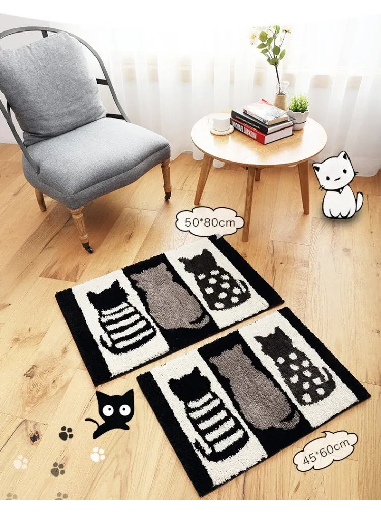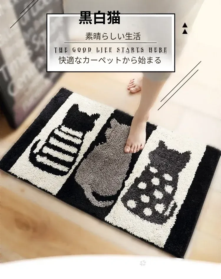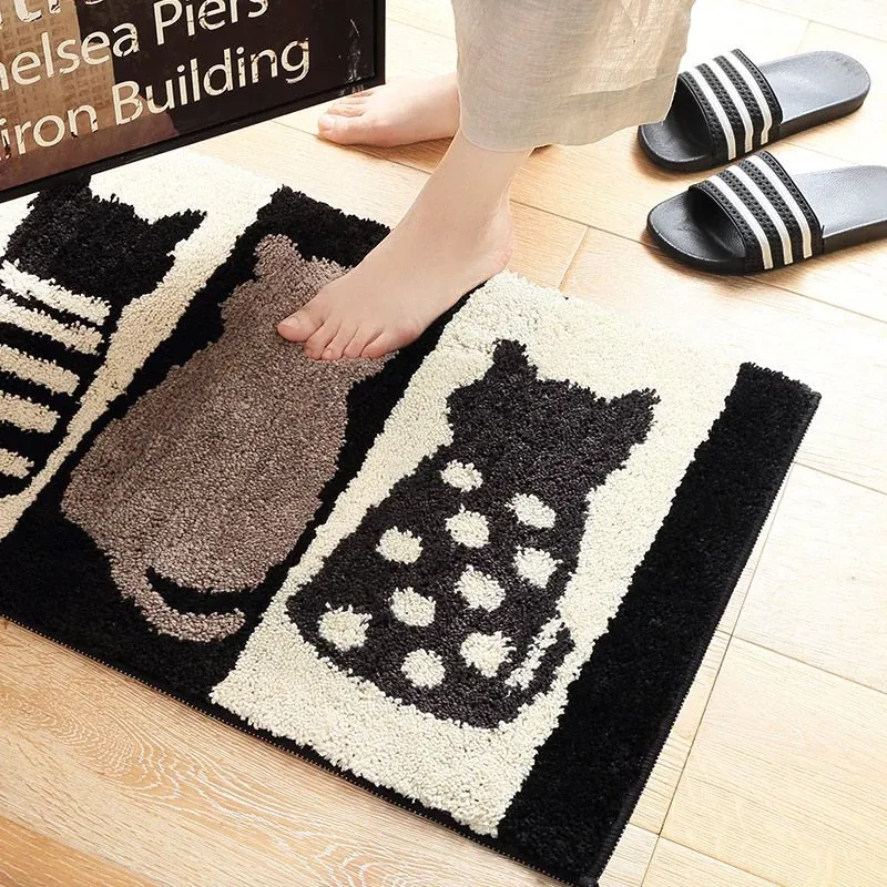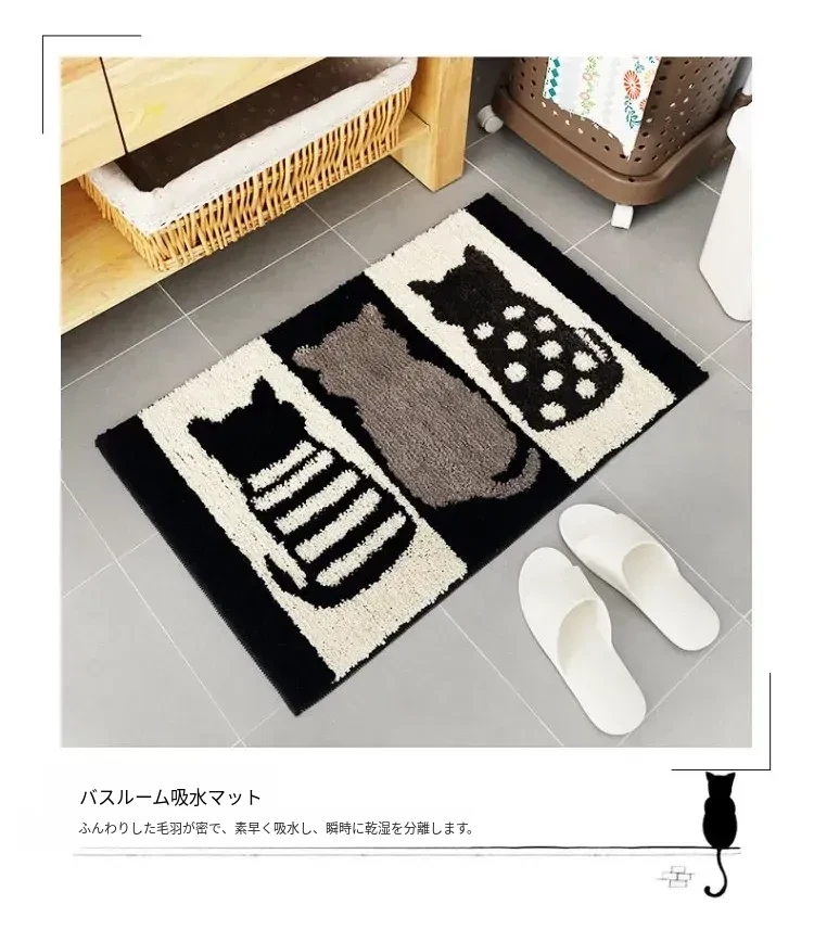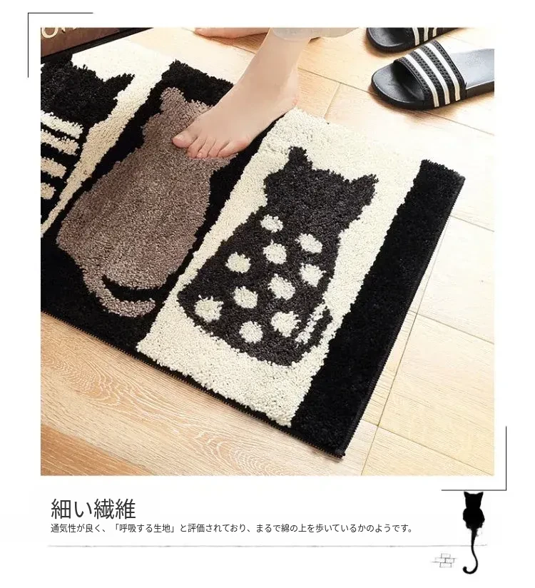 かわいい猫デザインの玄関マット!滑り止め&吸水機能付きで、バスルームやトイレの入り口にぴったり。おしゃれで実用的な家用マットで、あなたの家をもっと素敵に演出します。