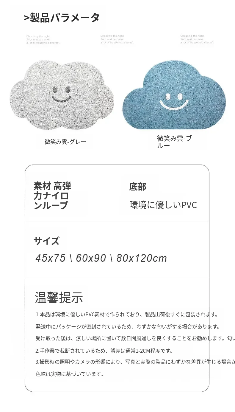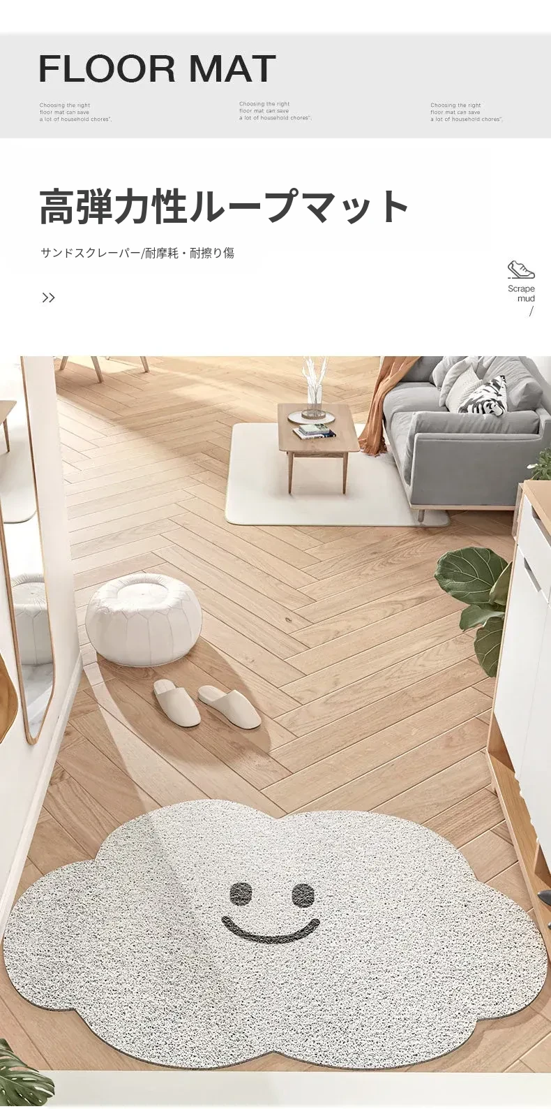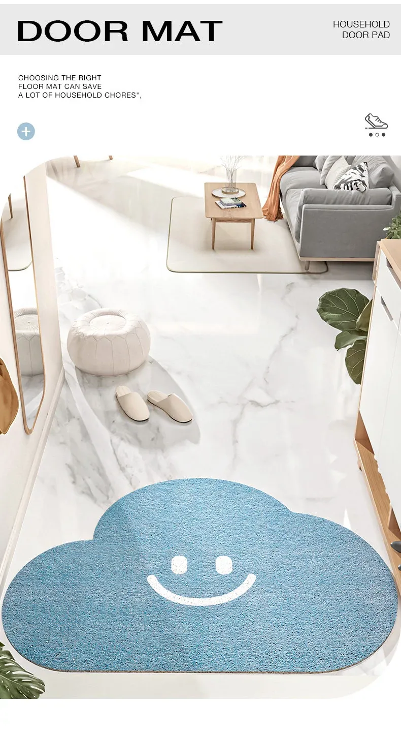 クランベリー家の玄関マット - 笑顔で迎える雲のデザイン、スタイリッシュなインテリアにぴったり!家族やゲストを温かく迎えるユニークなアイテム。おしゃれな玄関を演出する必須アイテム!