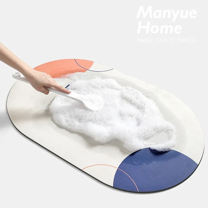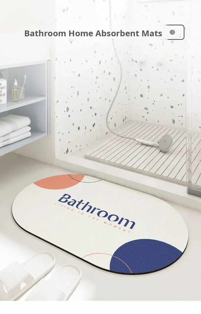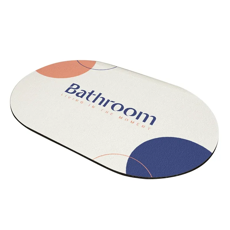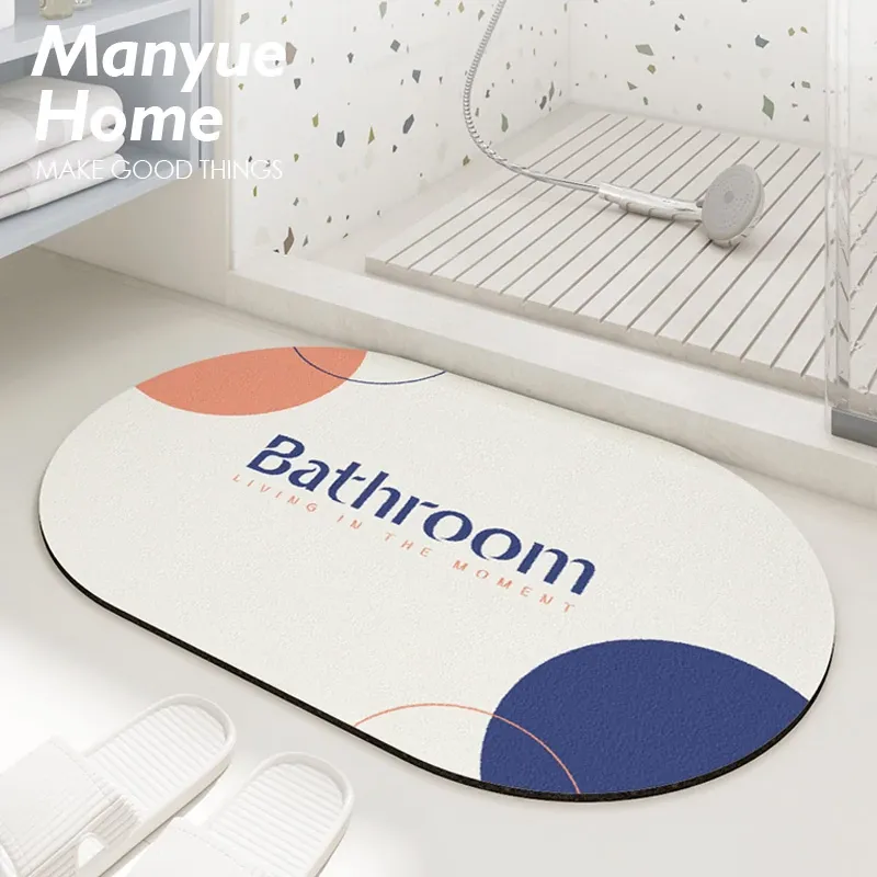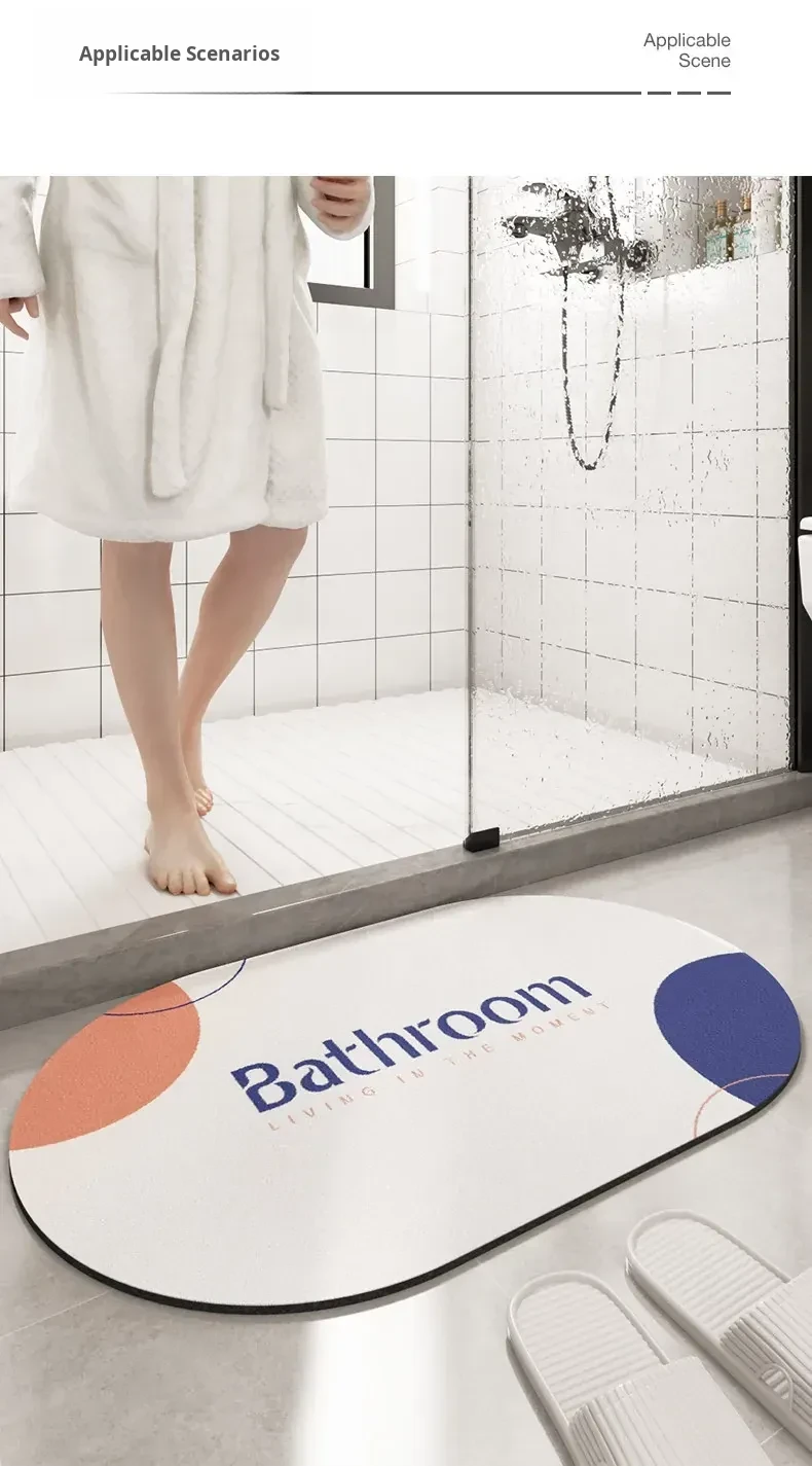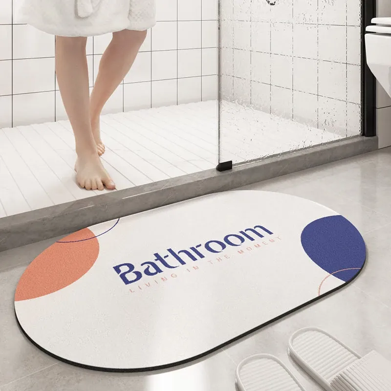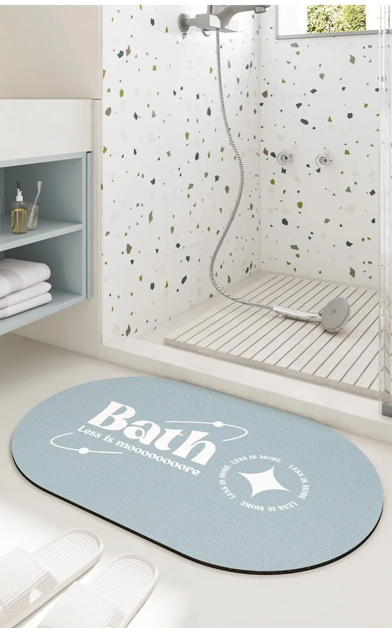 Cranberry Home Absorbent Oval Bathroom Mat - Stylish Powder Blue Area Rug for Entrance & Toilet, Perfect for Modern Bathrooms