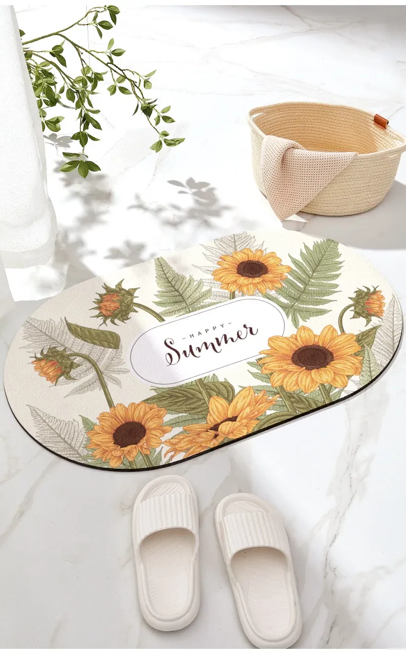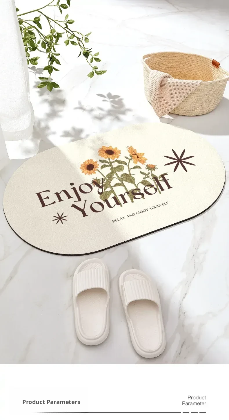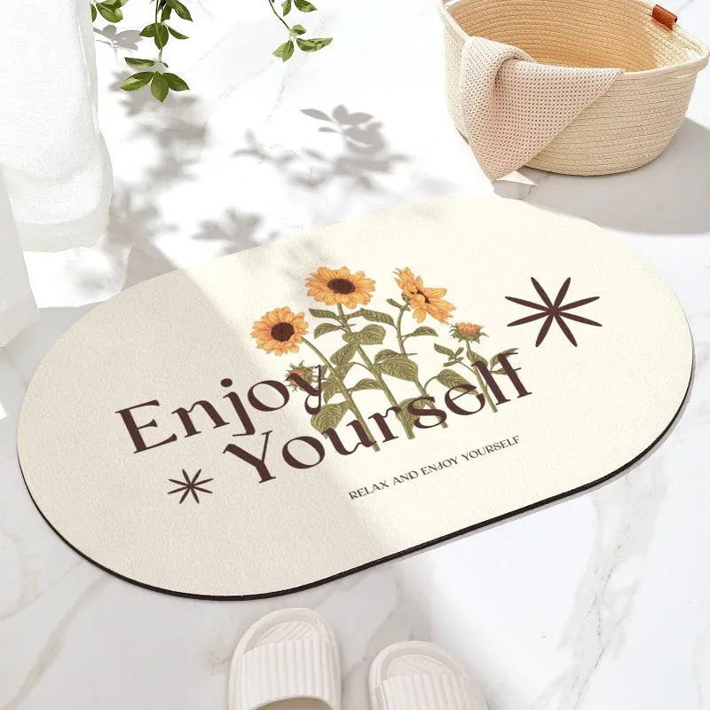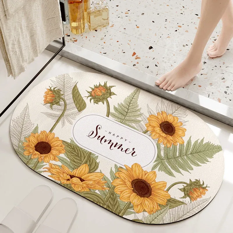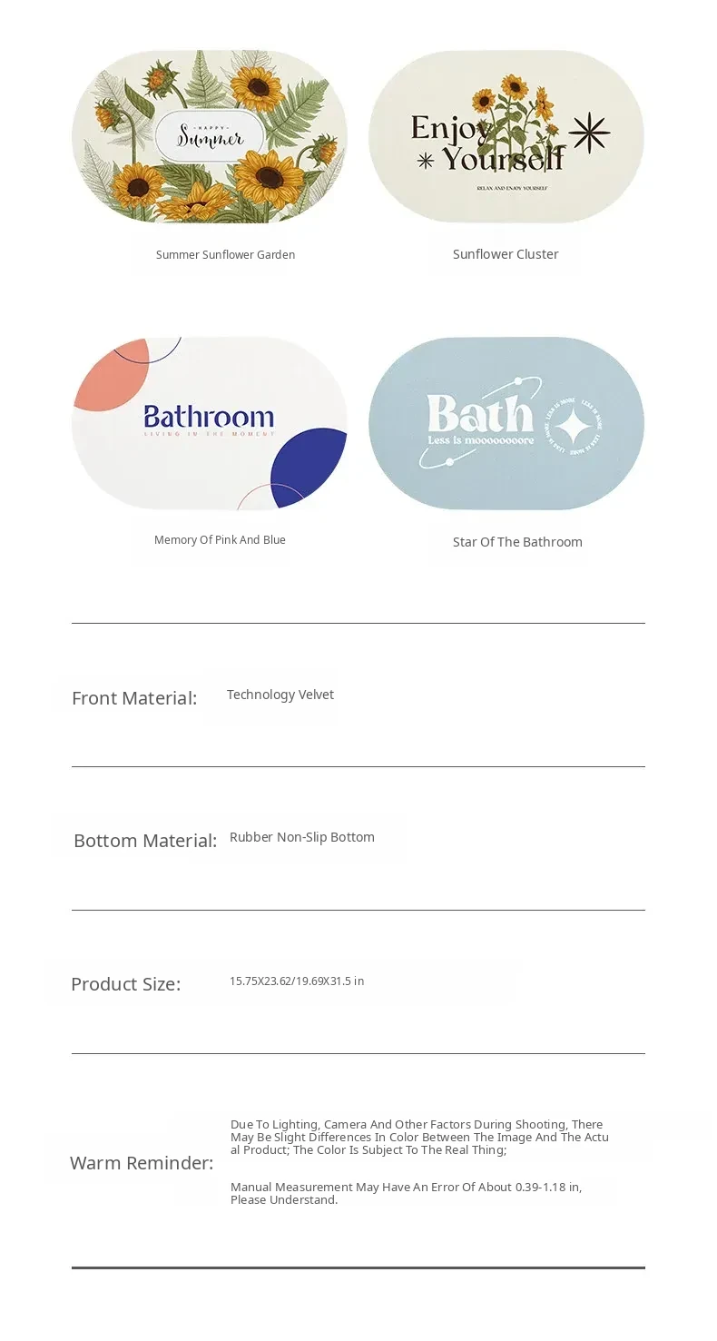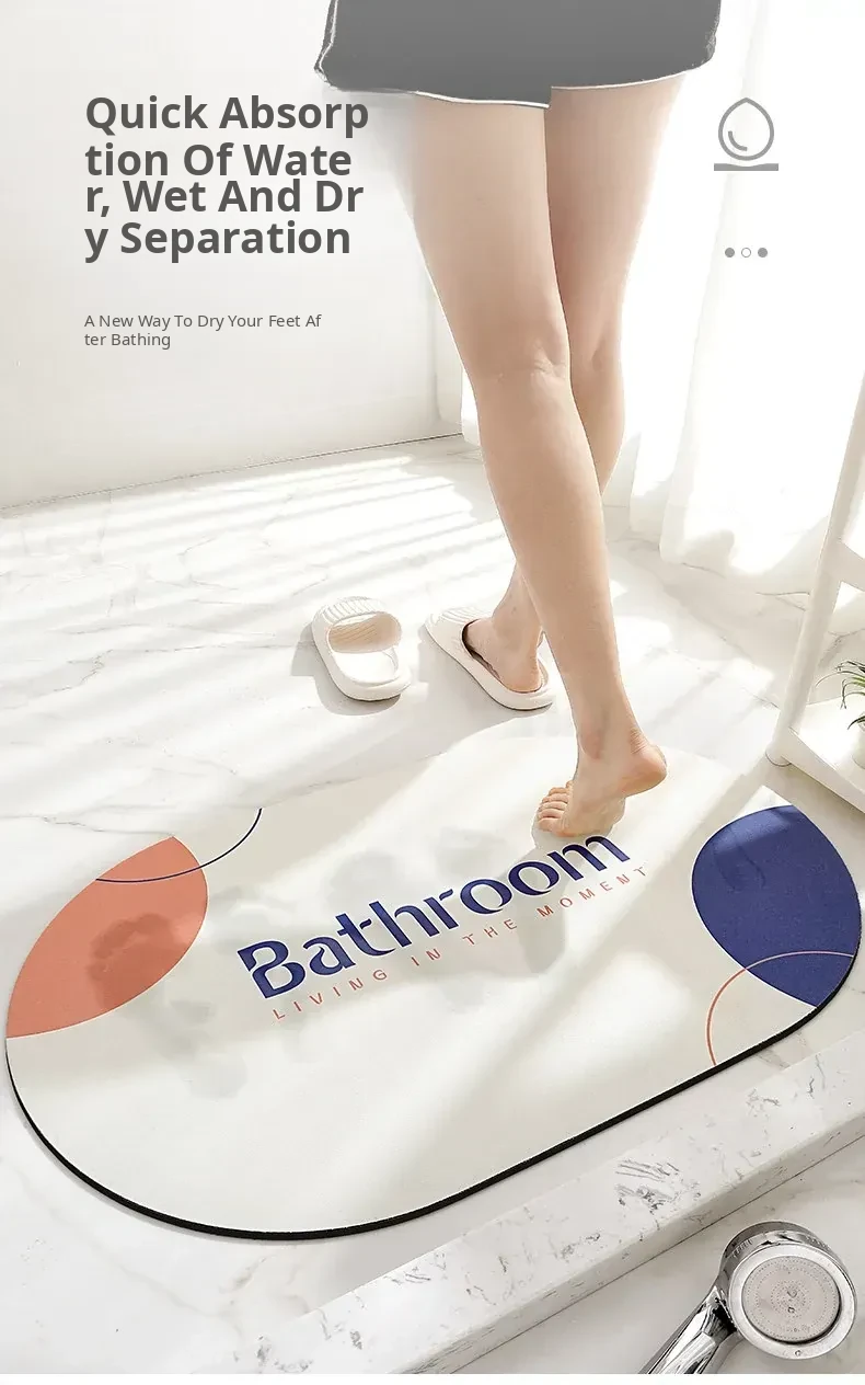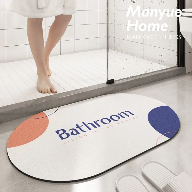 Cranberry Home Absorbent Oval Bathroom Mat - Stylish Powder Blue Area Rug for Entrance & Toilet, Perfect for Modern Bathrooms