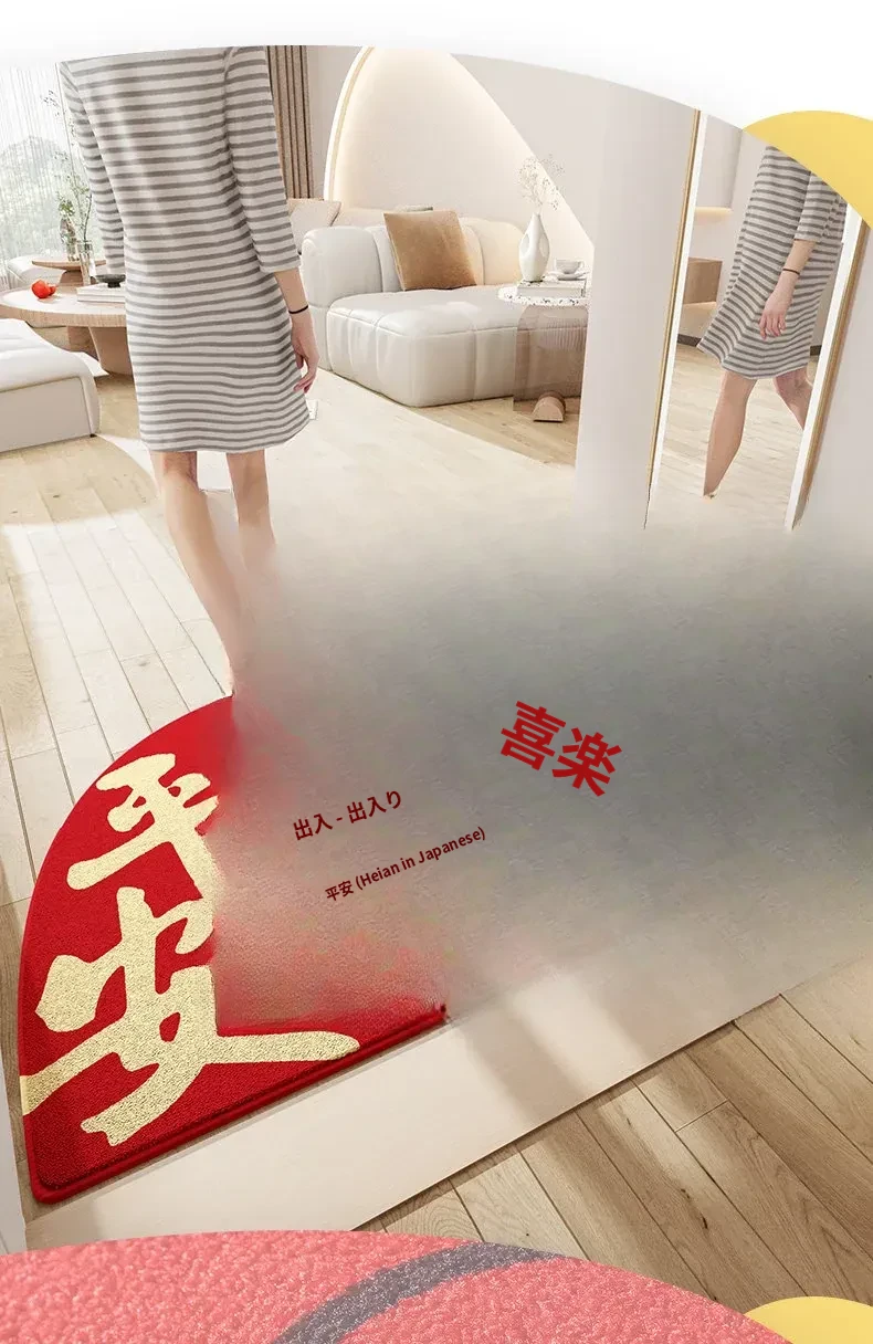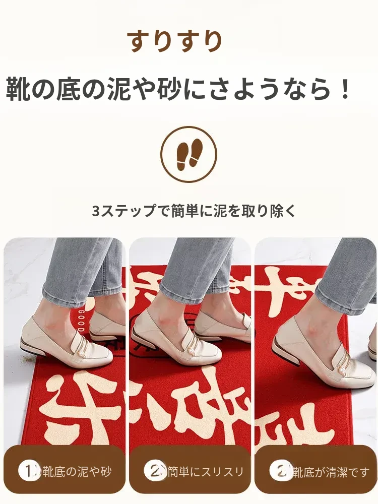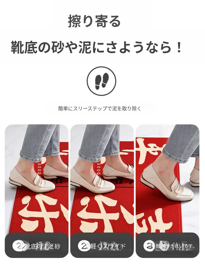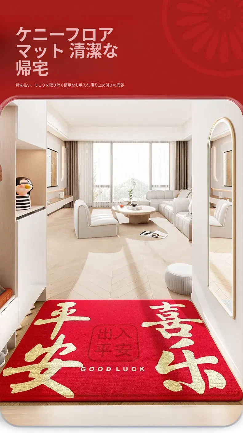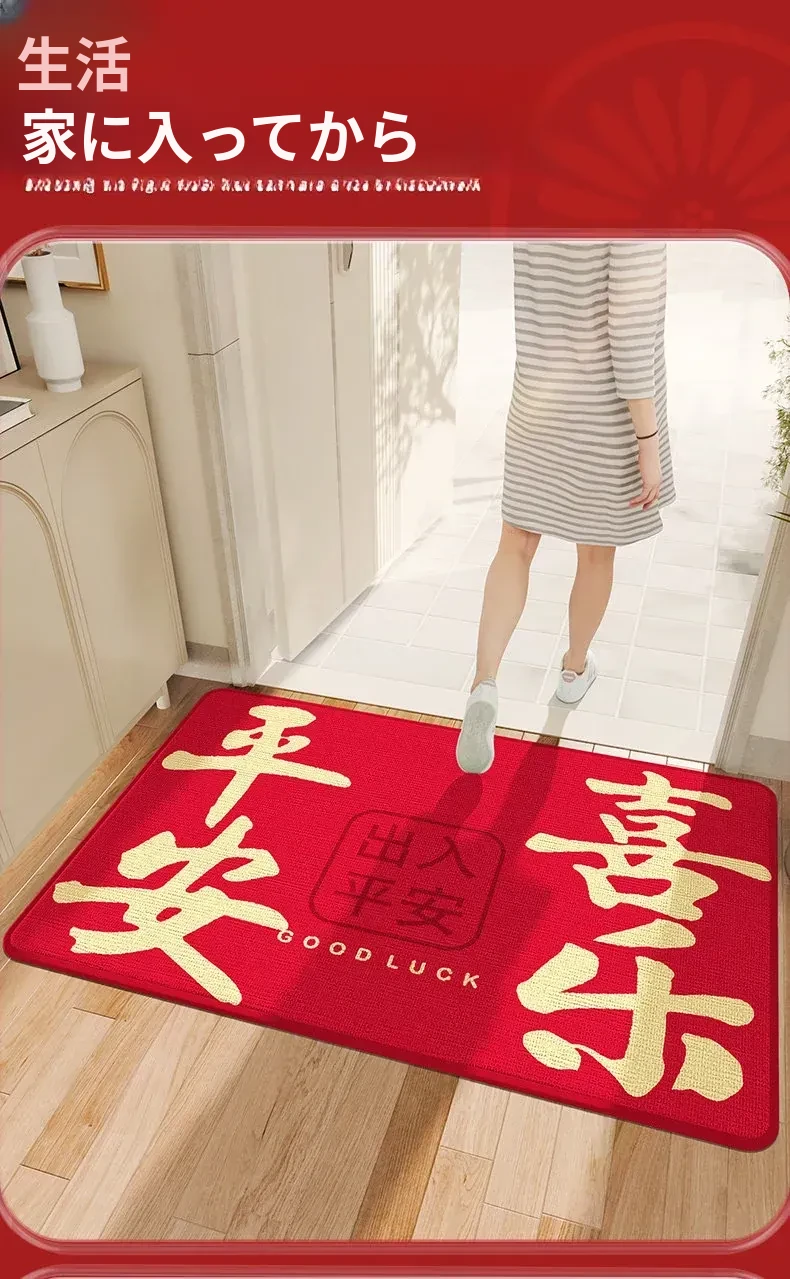 蔓越家の玄関マット - お祝いにぴったりな赤色の滑り止めマット!家の入り口を華やかに彩り、快適な足元を実現します。おしゃれで実用的なデザインで、訪れる人を温かく迎えます。