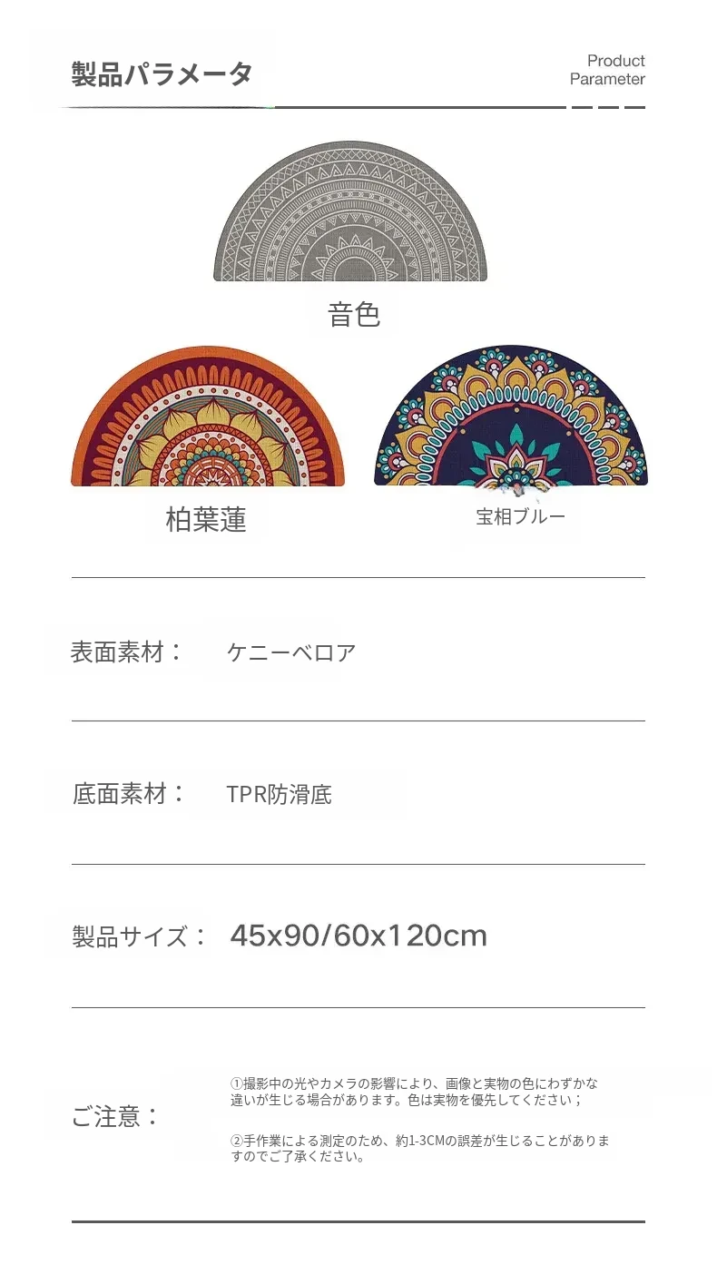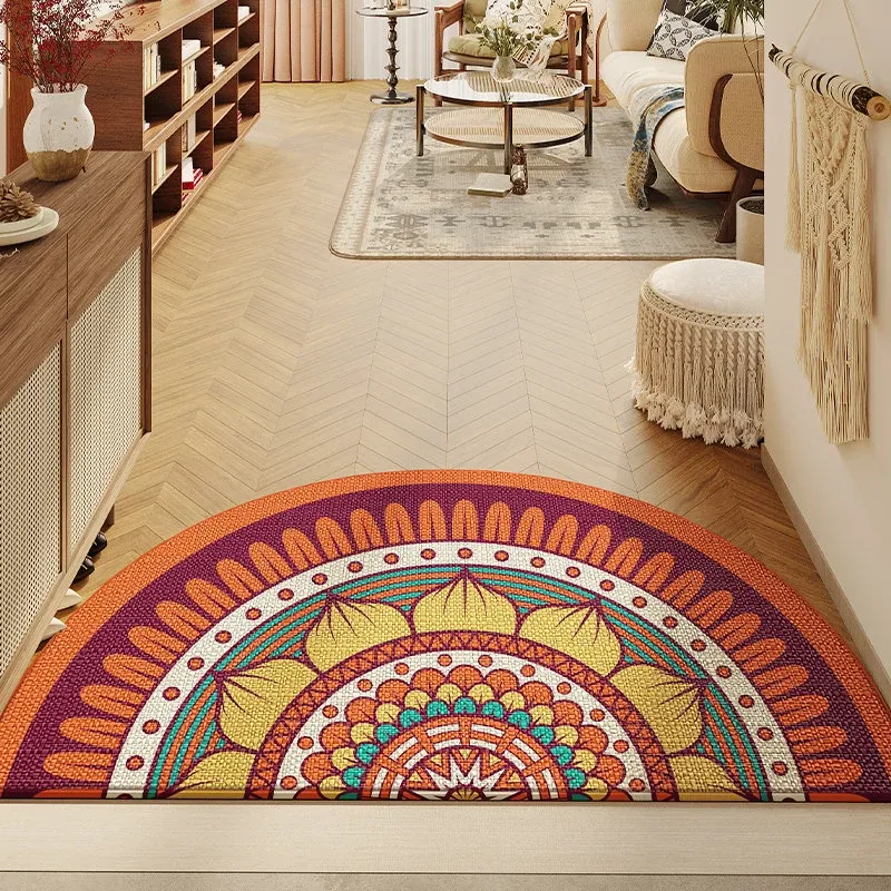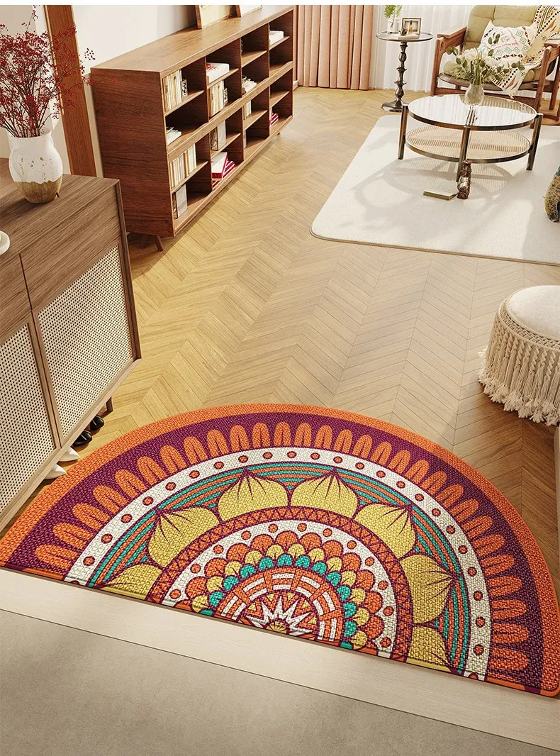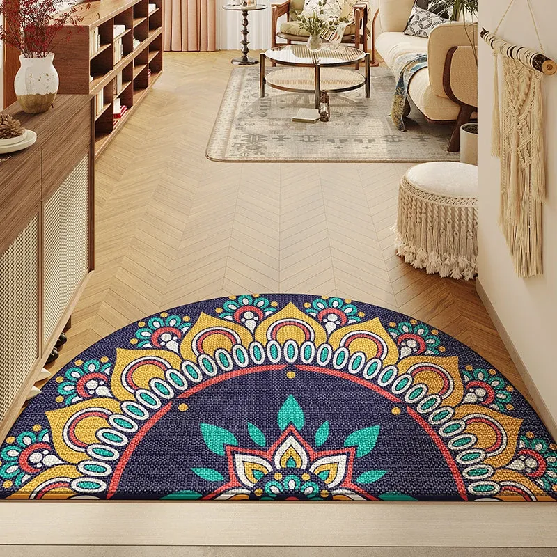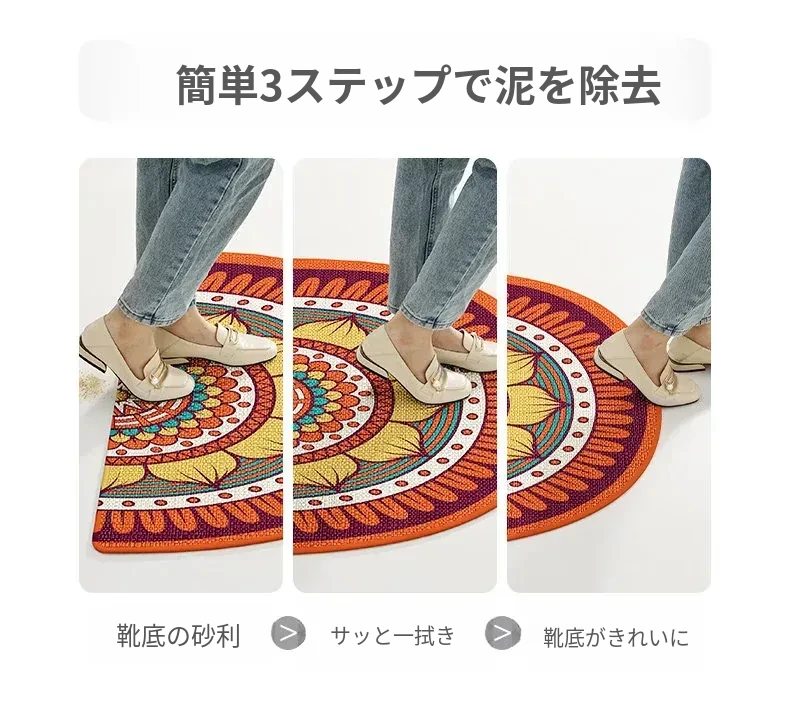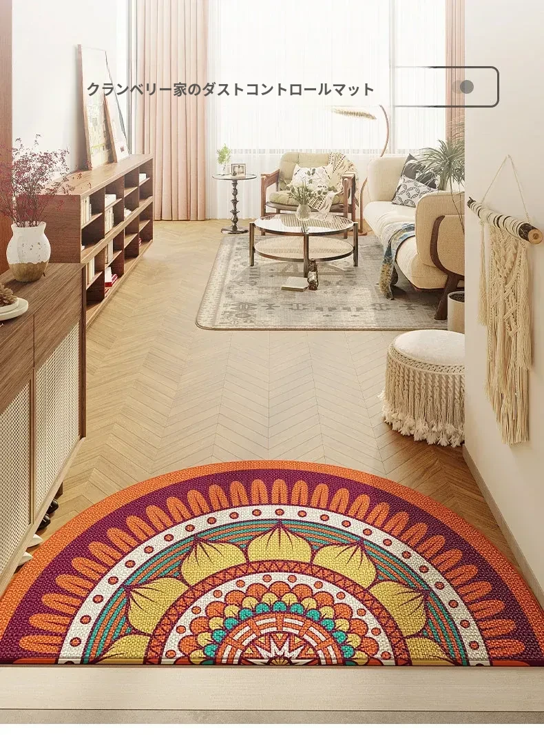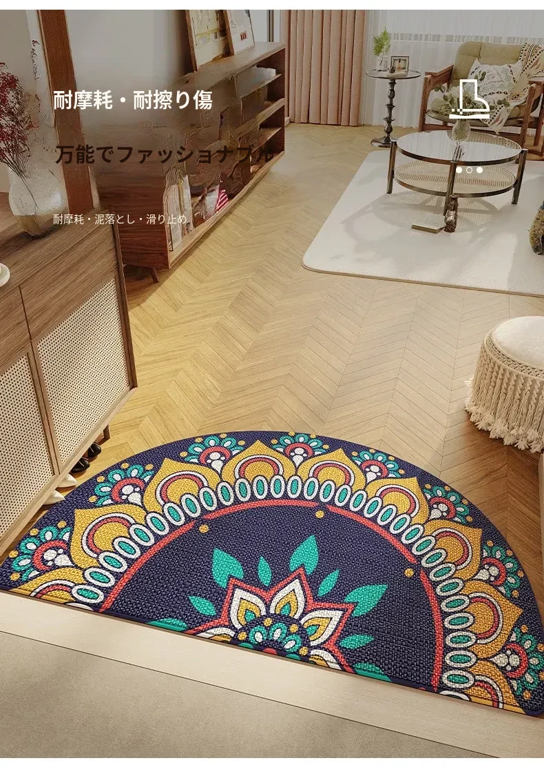蔓越家の民族風ドアマット|滑り止め付きの半円形玄関マット|埃をシャットアウト!耐久性抜群でお手入れ簡単な新品質の入り口マット!おしゃれなデザインでお家を華やかに演出!