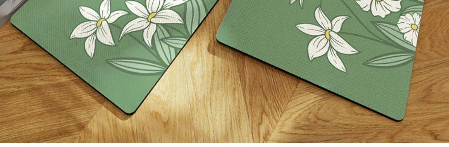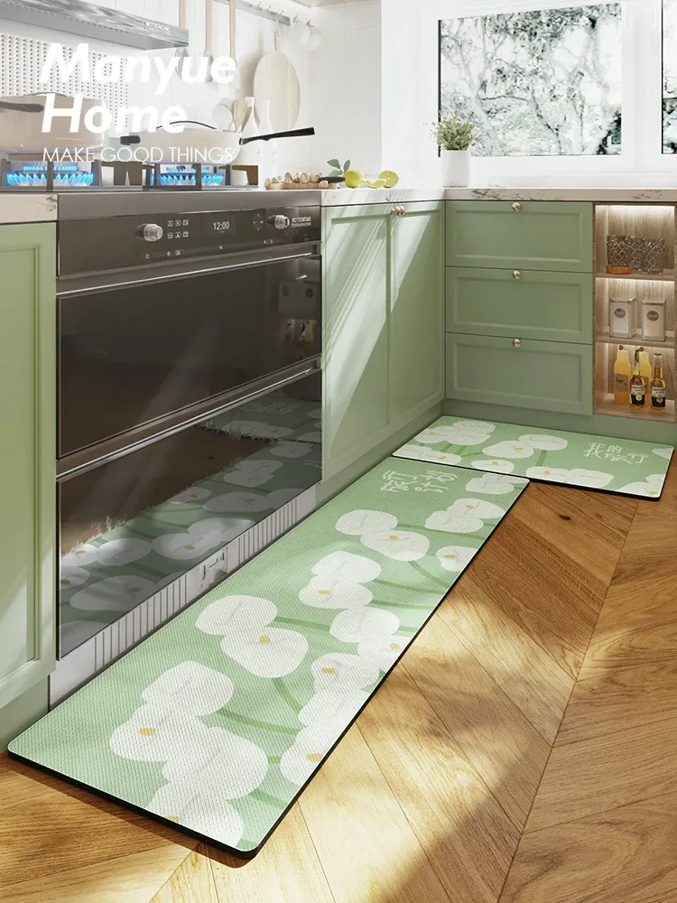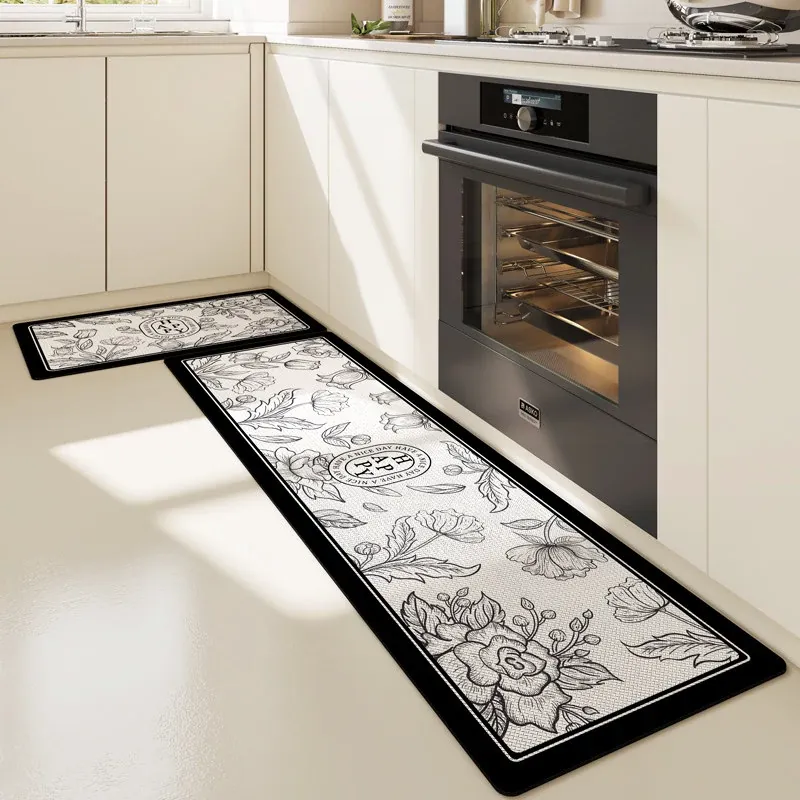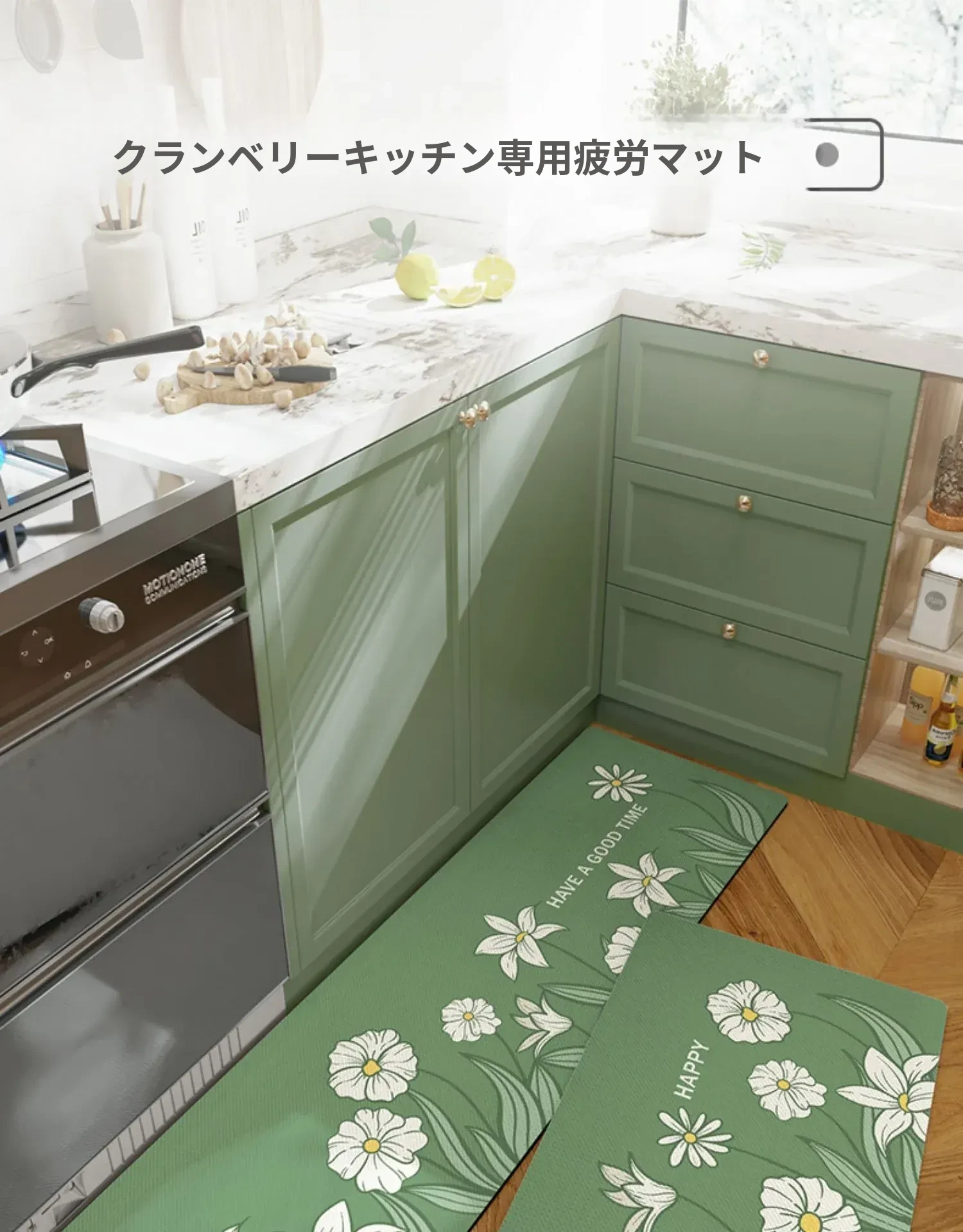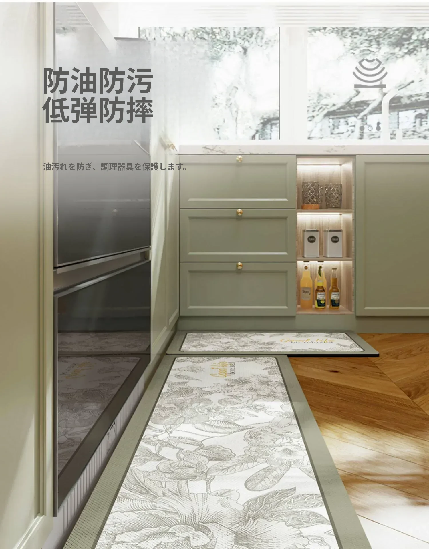 マスカットホーム キッチン用花柄マット 防油・防汚の足元マット お手入れ簡単・洗えるロングスリム滑り止めマットで、快適なキッチンライフを!