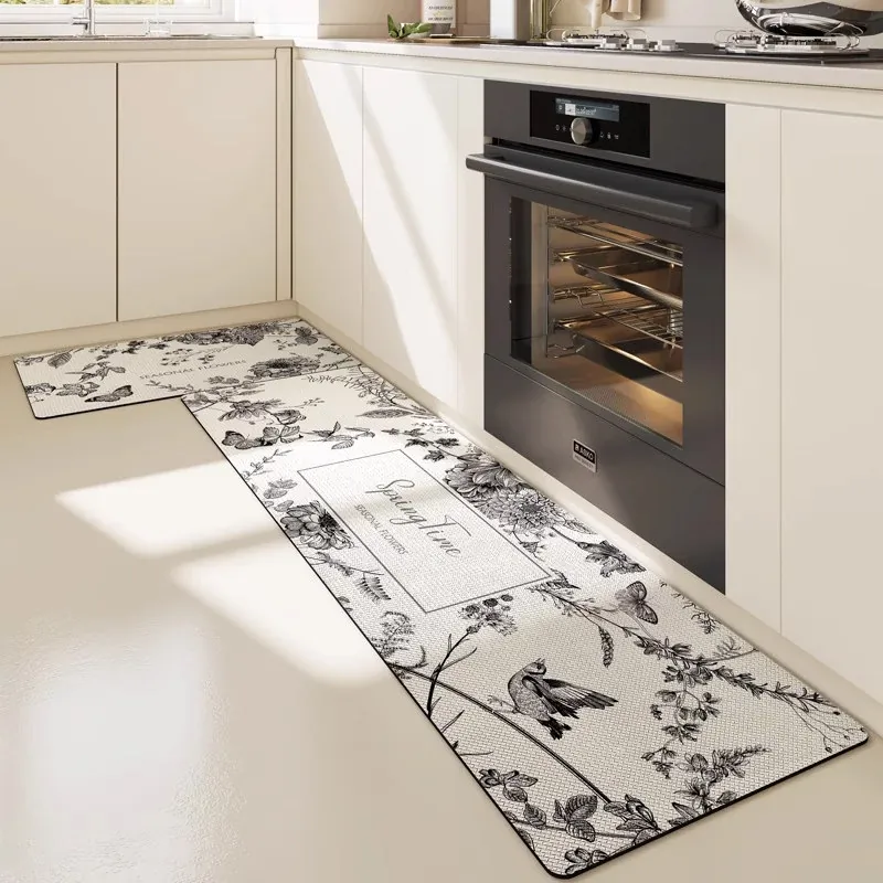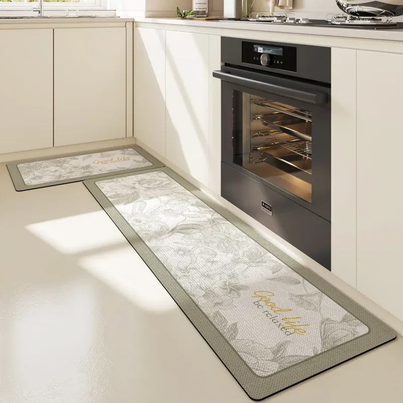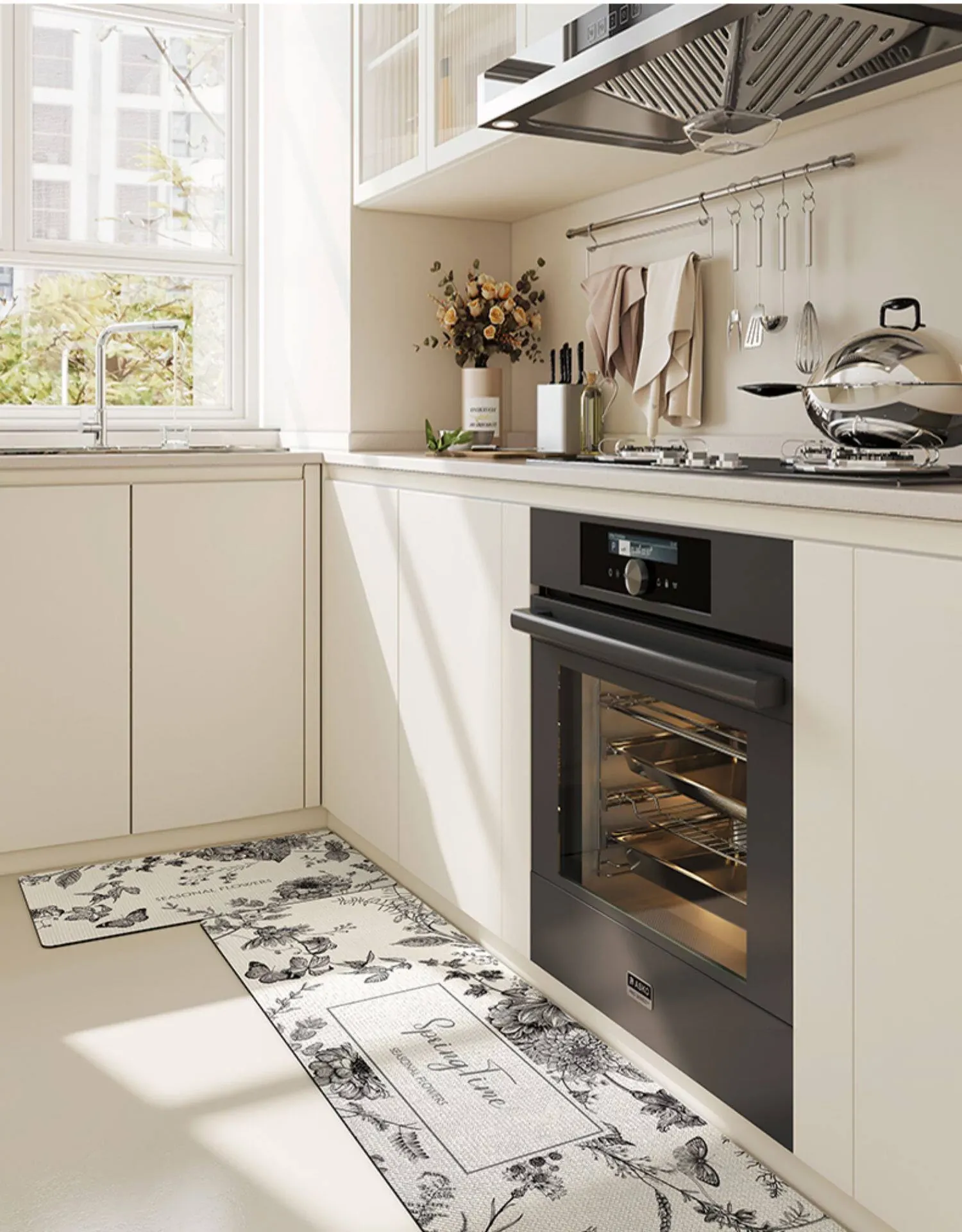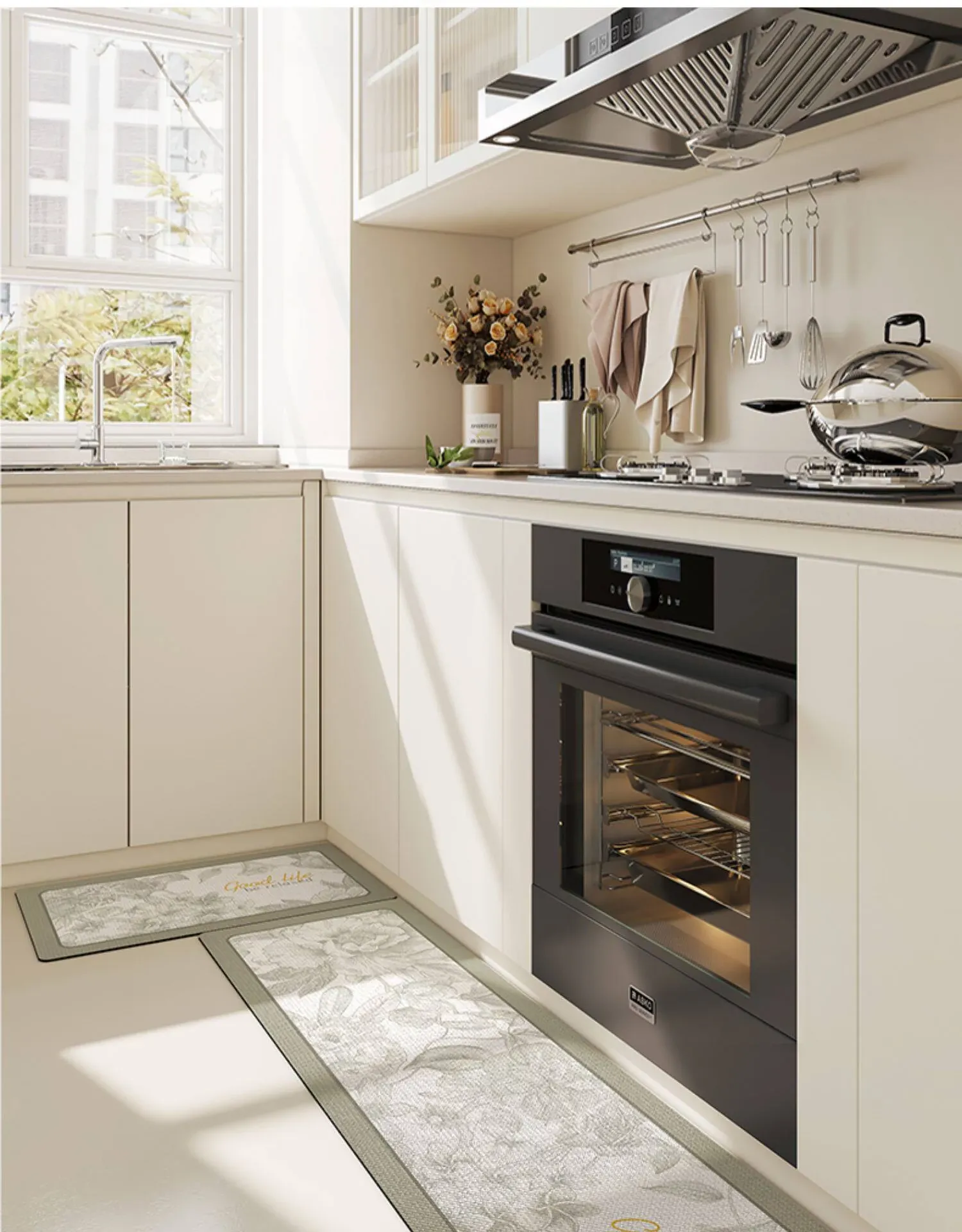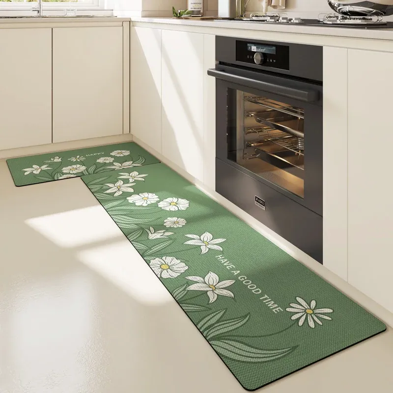 マスカットホーム キッチン用花柄マット 防油・防汚の足元マット お手入れ簡単・洗えるロングスリム滑り止めマットで、快適なキッチンライフを!