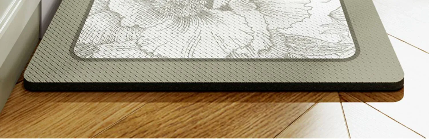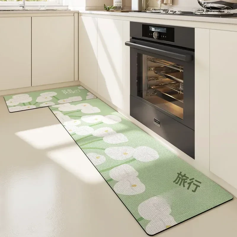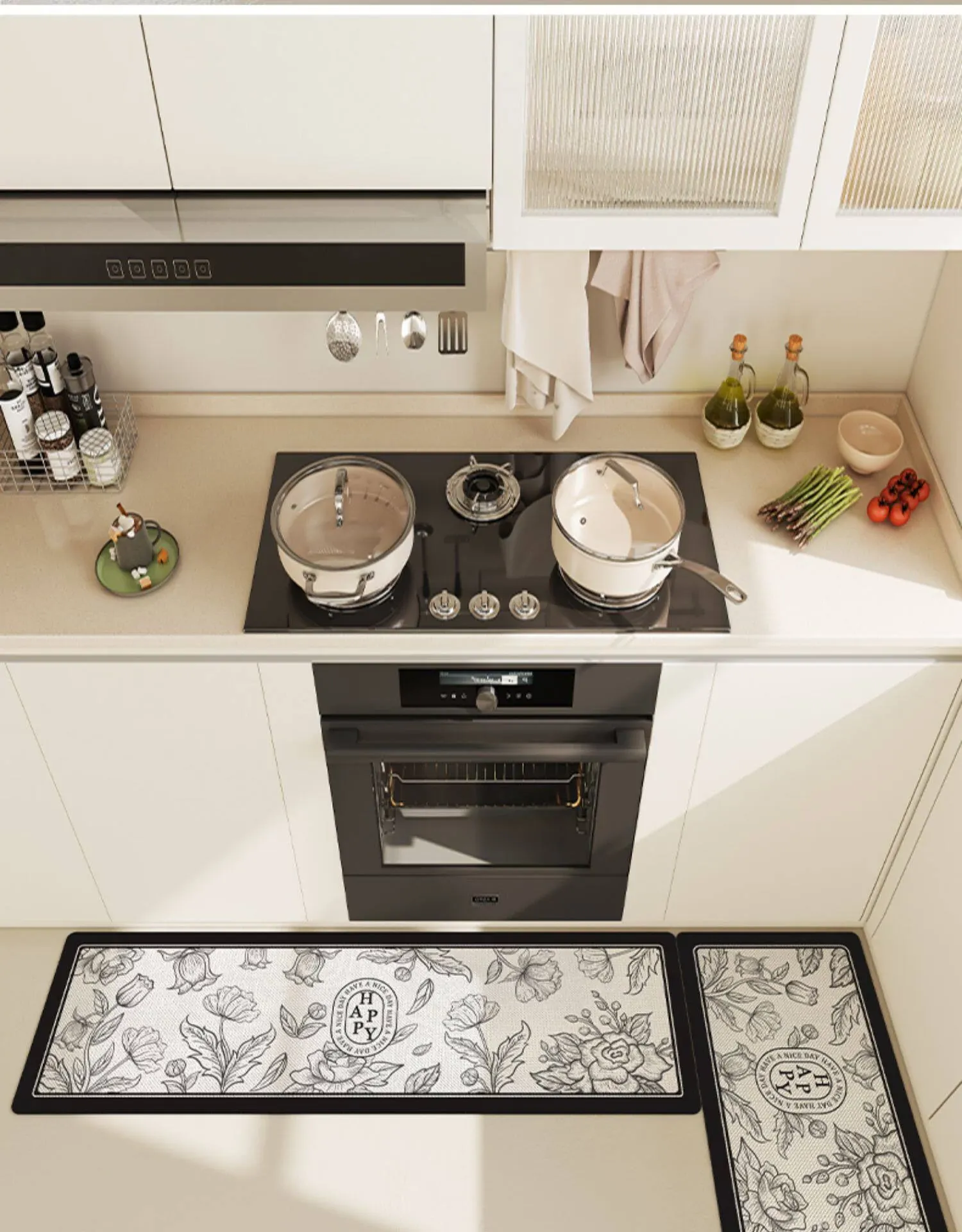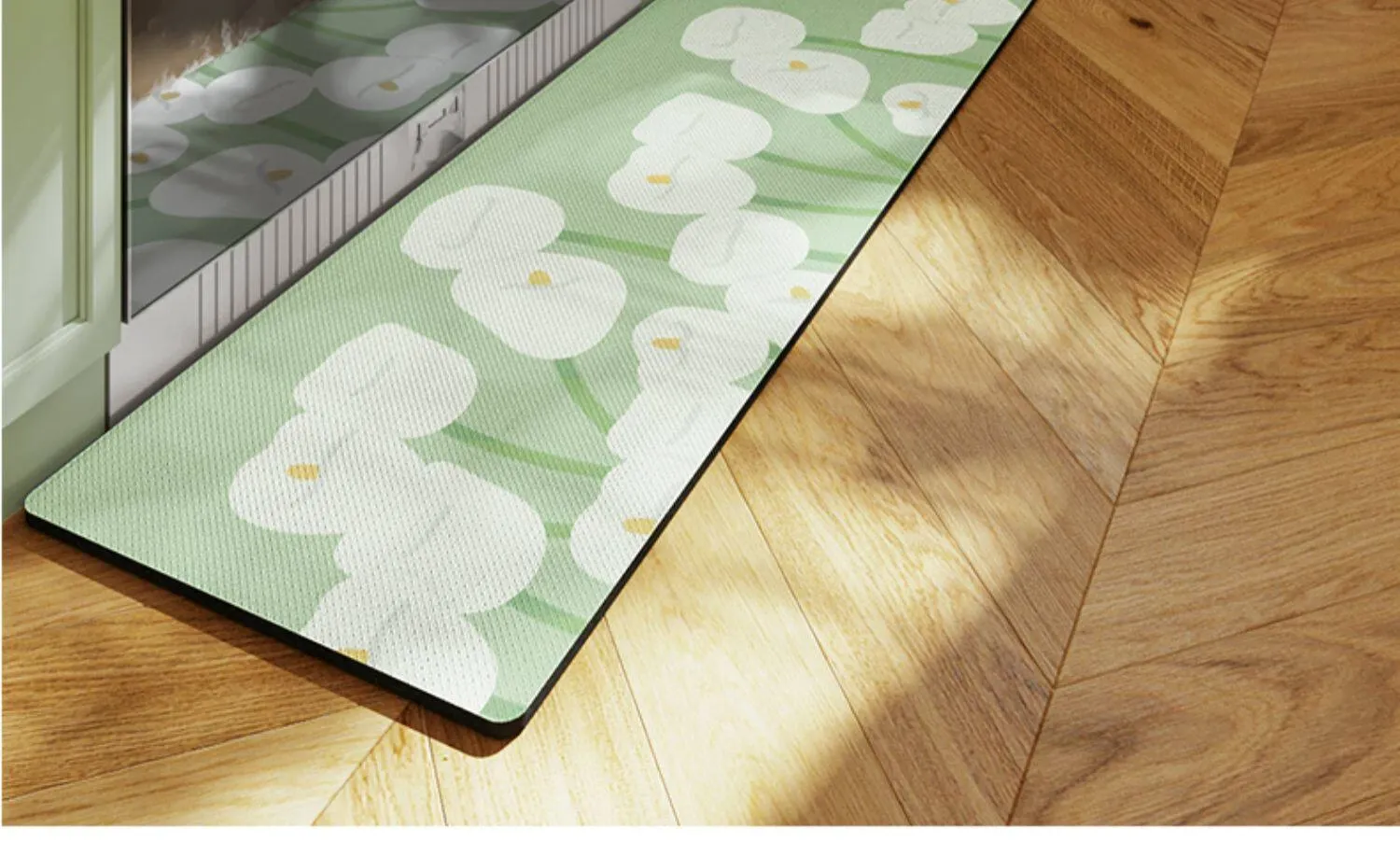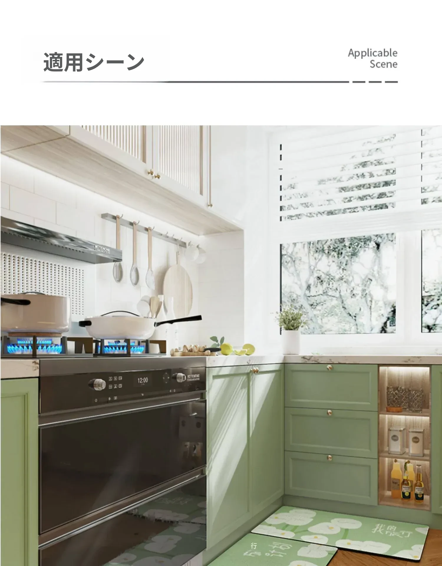 マスカットホーム キッチン用花柄マット 防油・防汚の足元マット お手入れ簡単・洗えるロングスリム滑り止めマットで、快適なキッチンライフを!