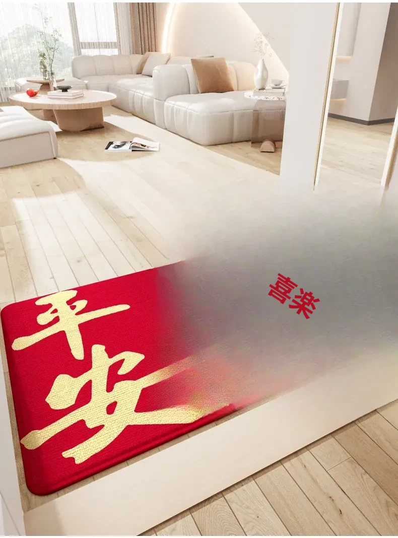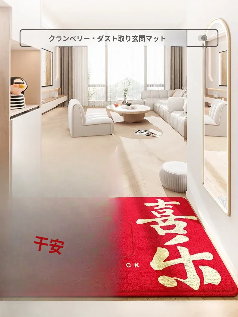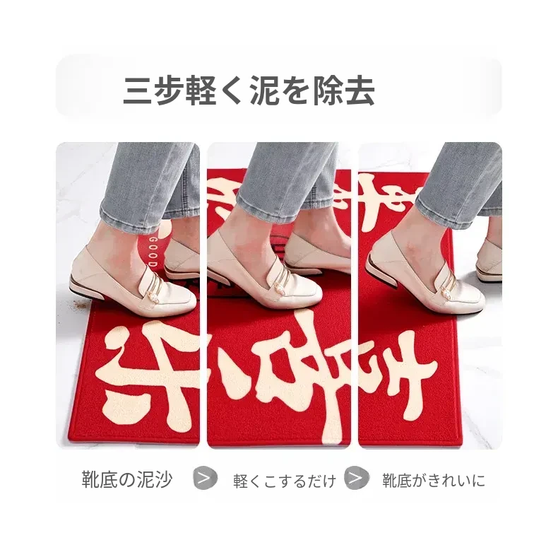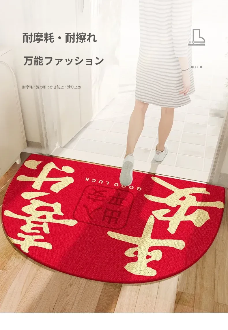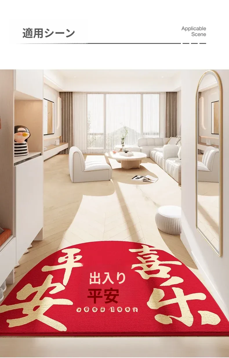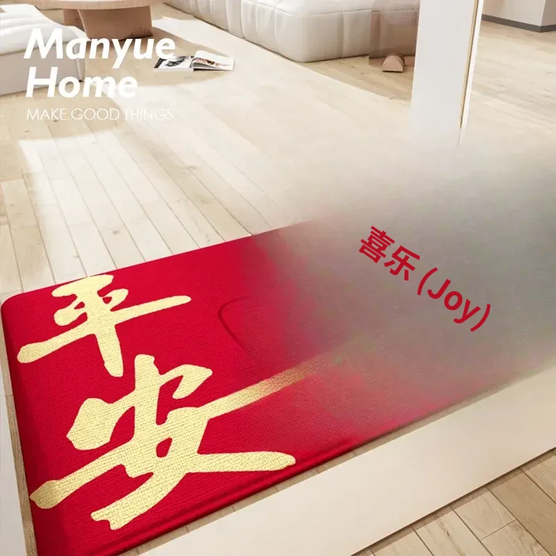 蔓越家 新年限定!赤いお祝いの玄関マット - 家庭用の入門マットで、明るい雰囲気を演出!お正月にぴったりのデザインで、幸運を呼び込む一品です。