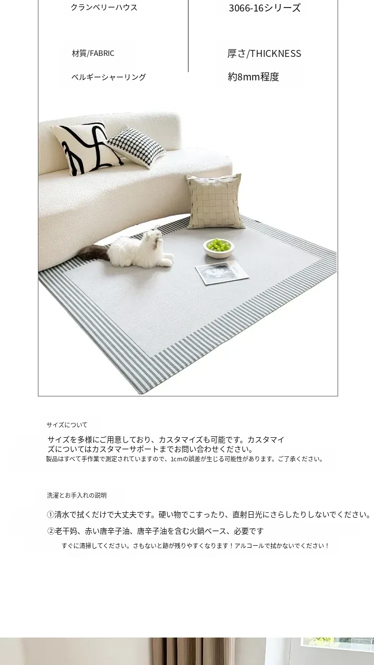 蔓越家特許の抗ピリング技術!超大型リビングカーペット、ベッドサイドマット、テーブルマットとしても使える厚手のフルカバーラグ。快適さとスタイルを両立させた理想のアイテムです!