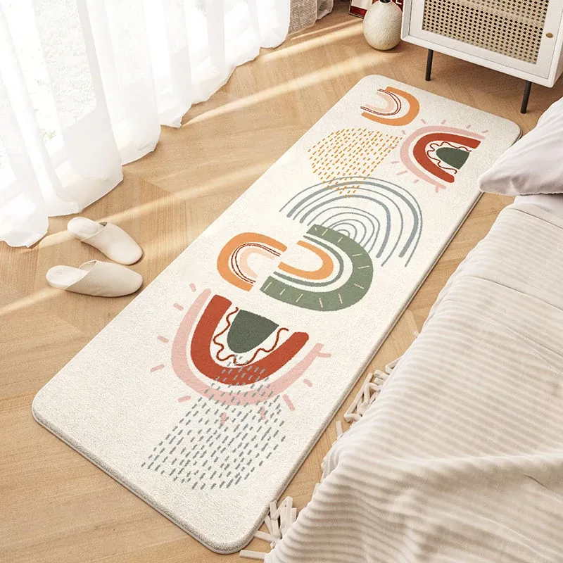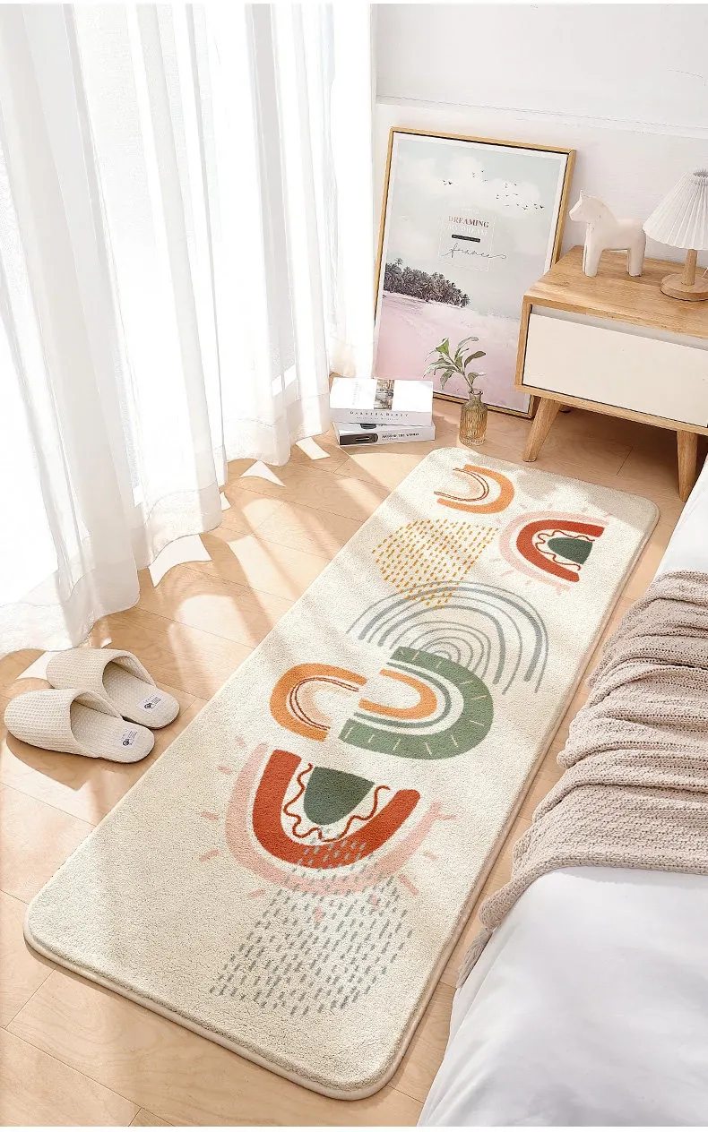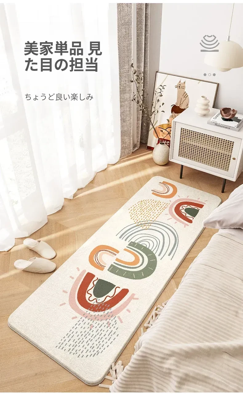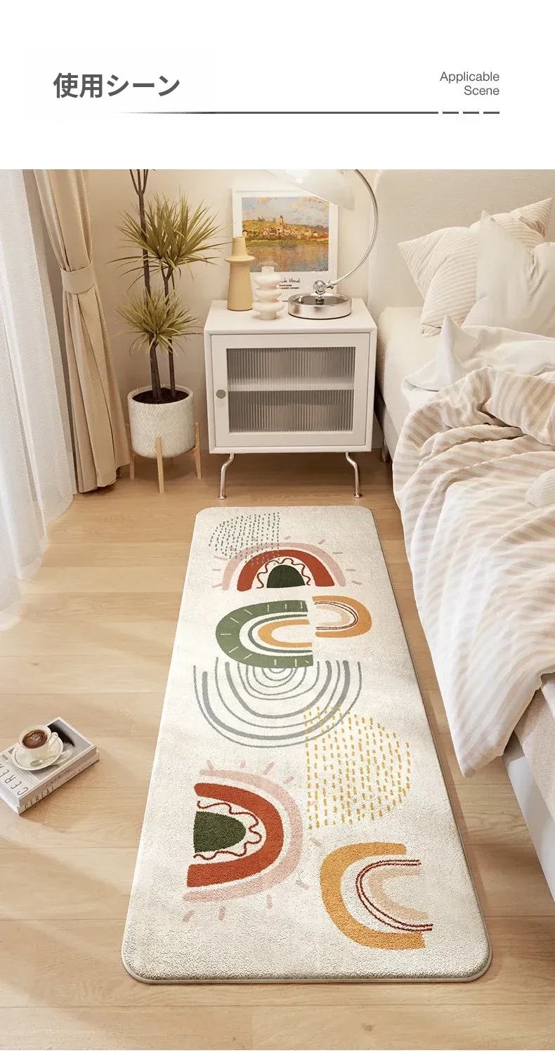 マンゴー家のカラフルなレインボーラグ - 寝室やリビングにぴったり!少女の夢を叶える窓辺やベッドサイドを彩るロングマット。心地よい足元を実現し、毎日を特別に!