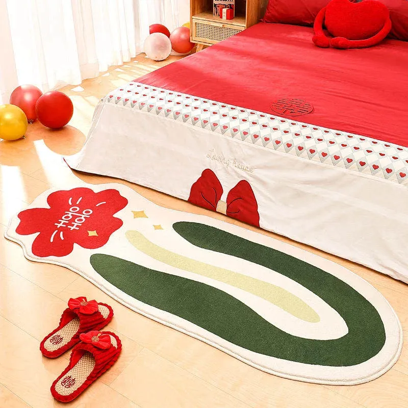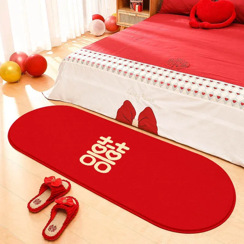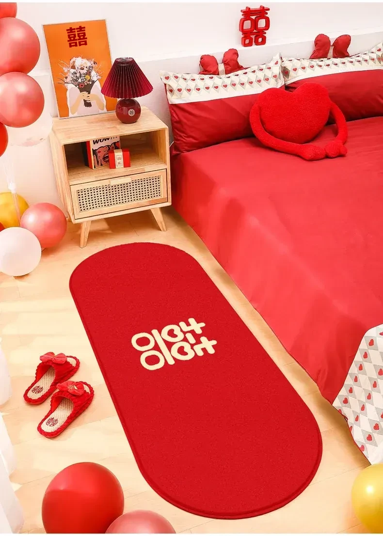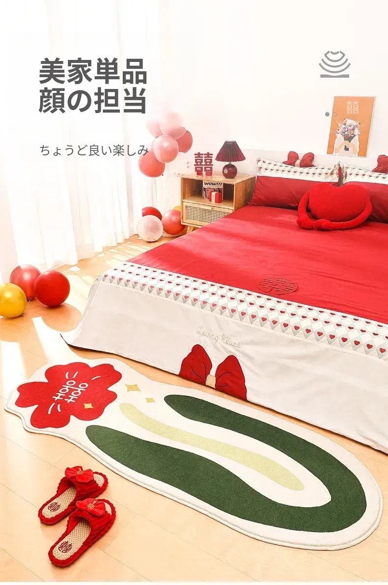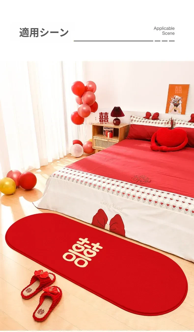 蔓越家【結婚用カーペット】赤いお祝いのベッドサイドマット、寝室・リビングルームにぴったりの毛布!幸せな瞬間を彩る素敵なインテリアアイテム!