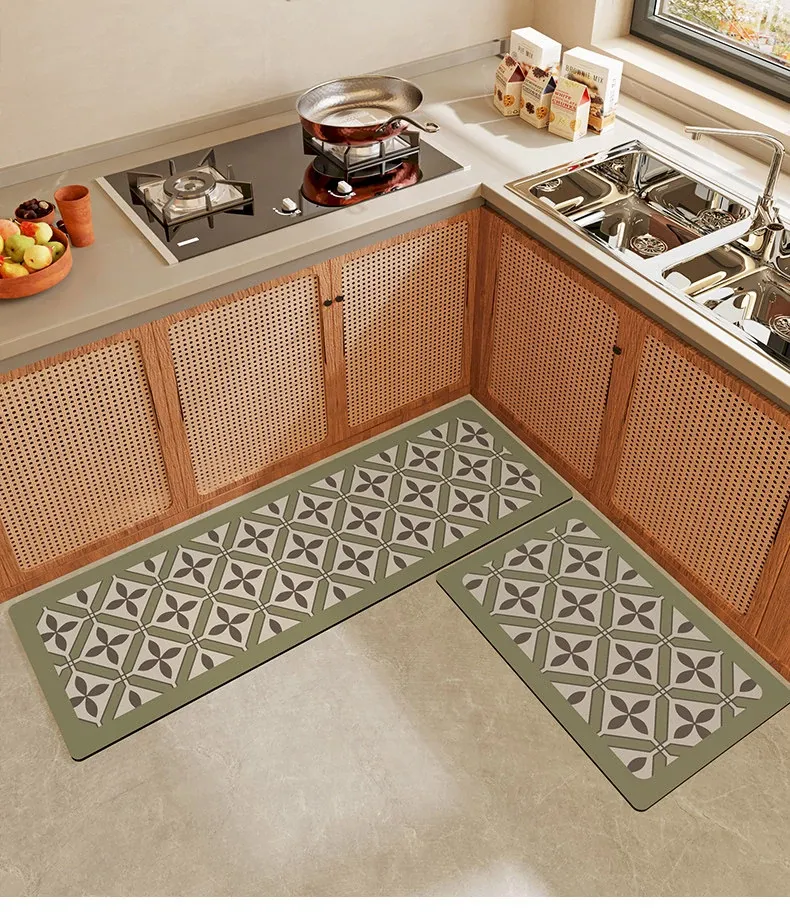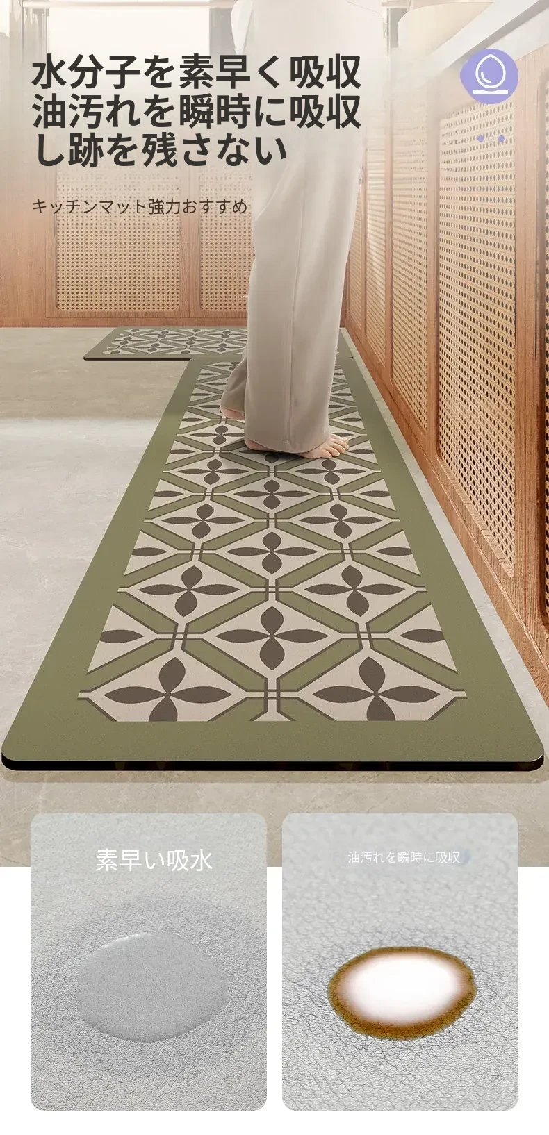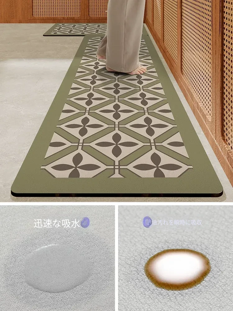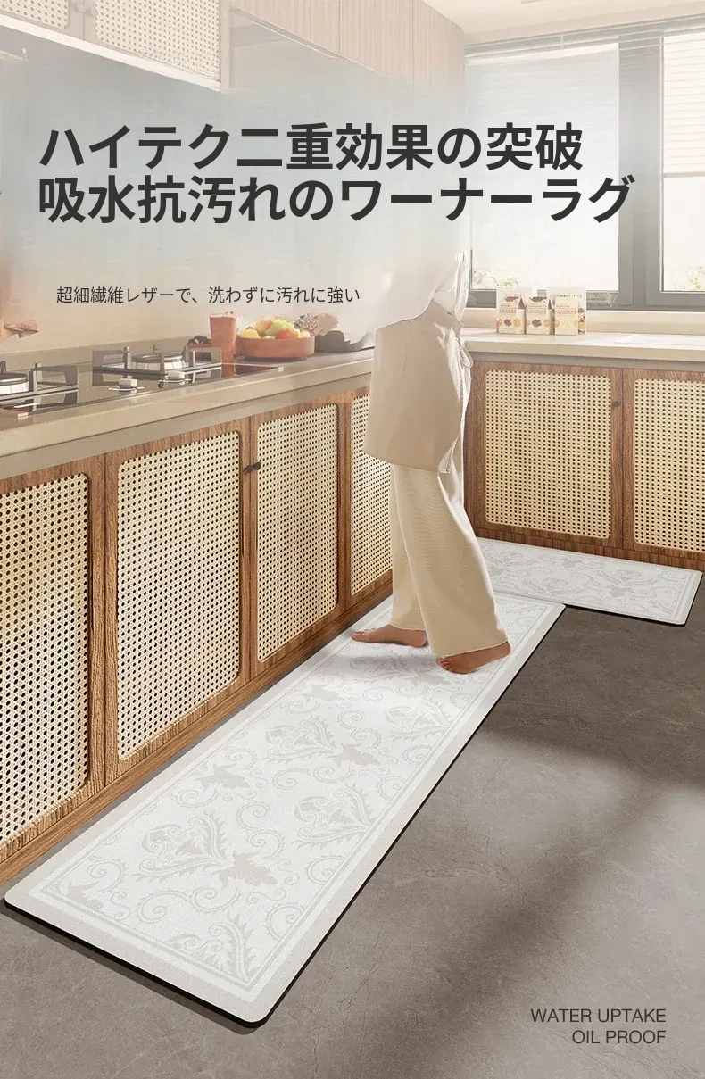 蔓越家 レトロアメリカン スリップ防止吸水キッチンマット 洗える防汚マット 滑り止め付きで安心のフロアカーペット