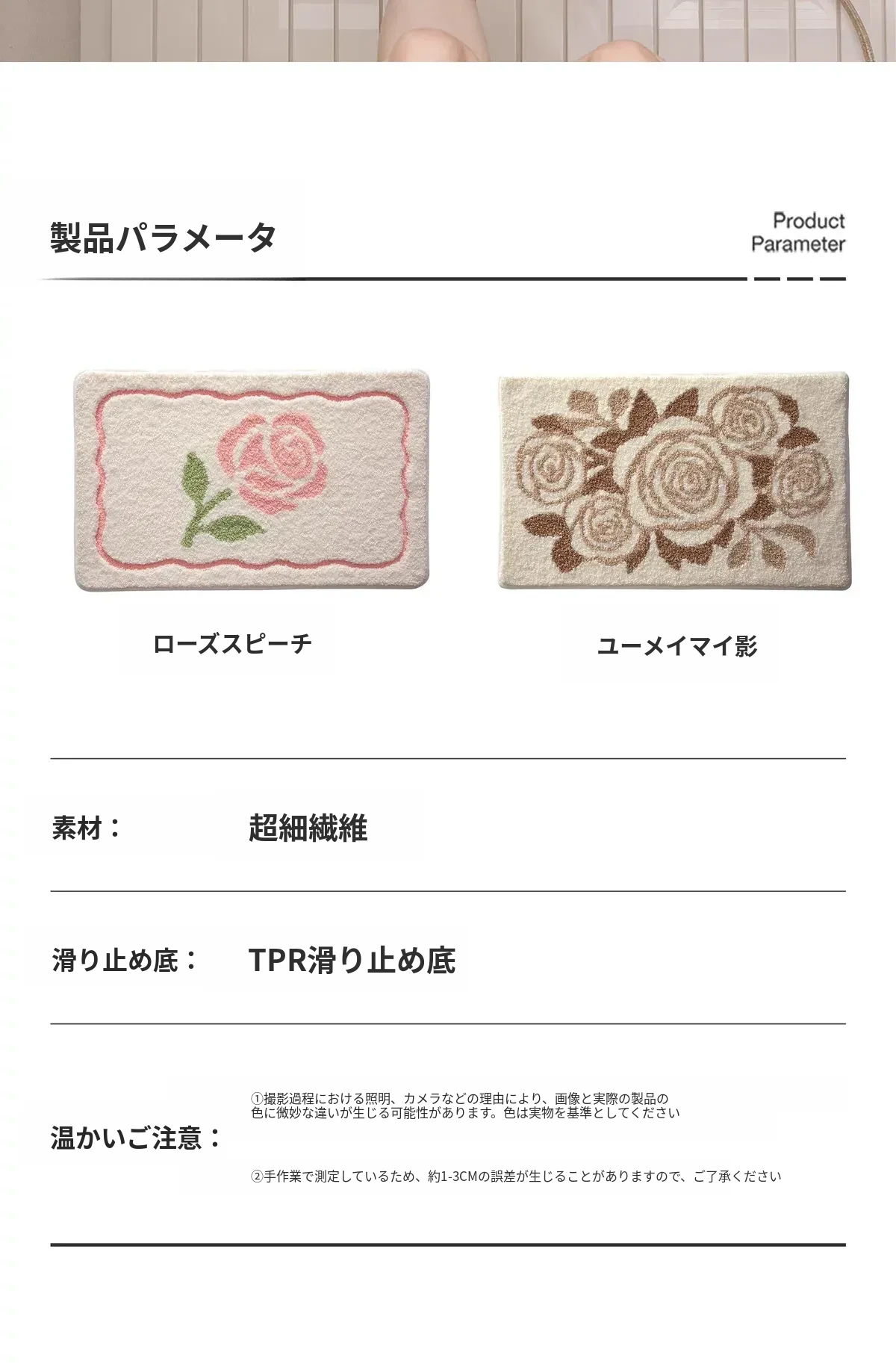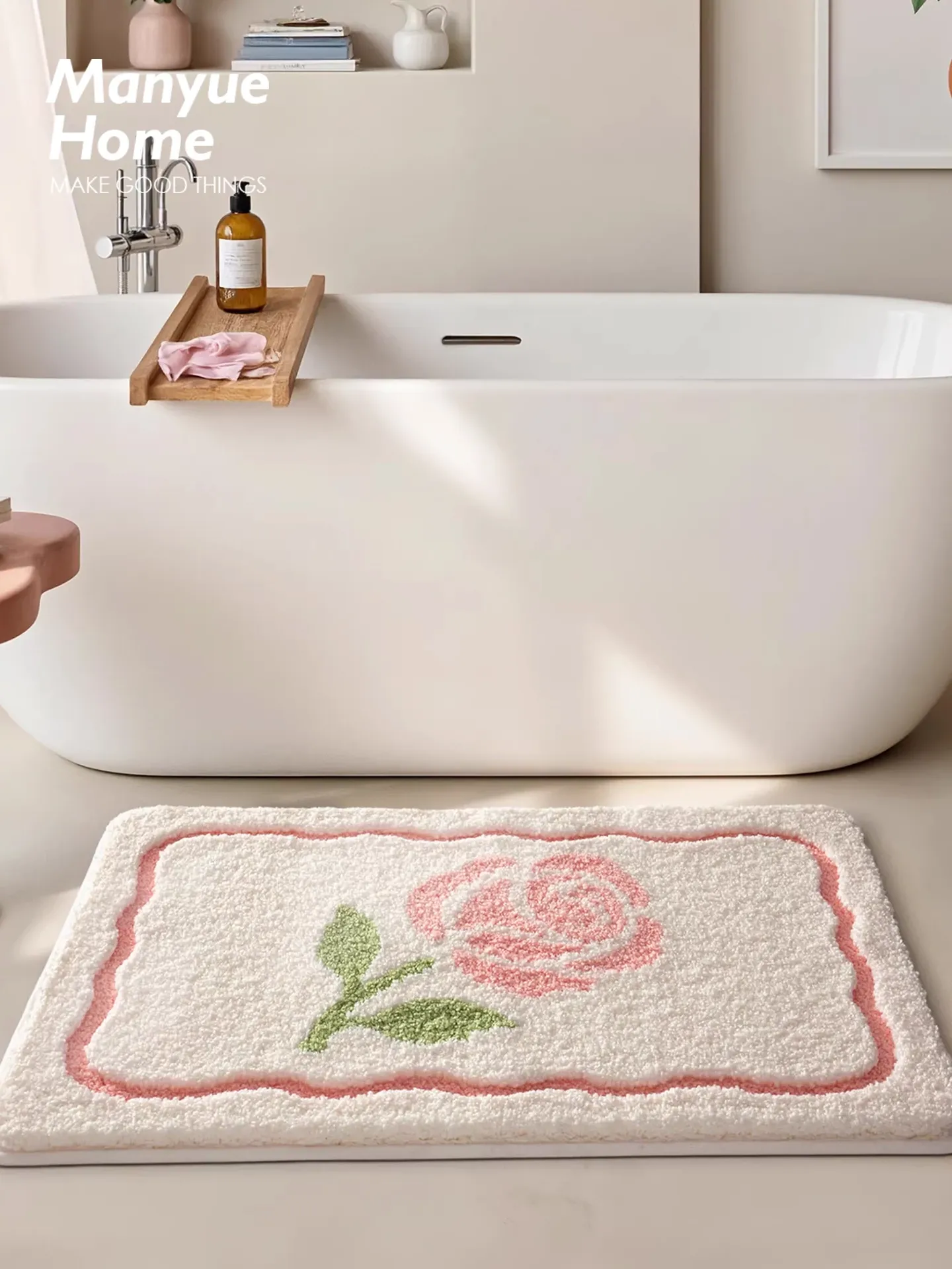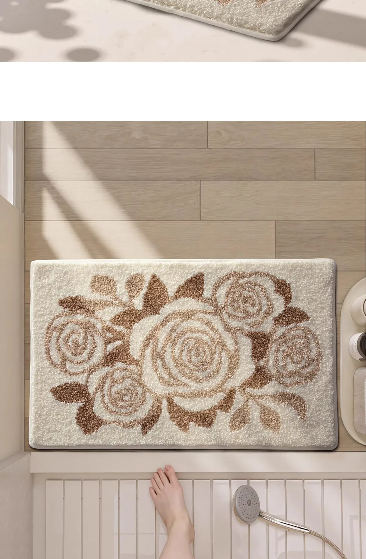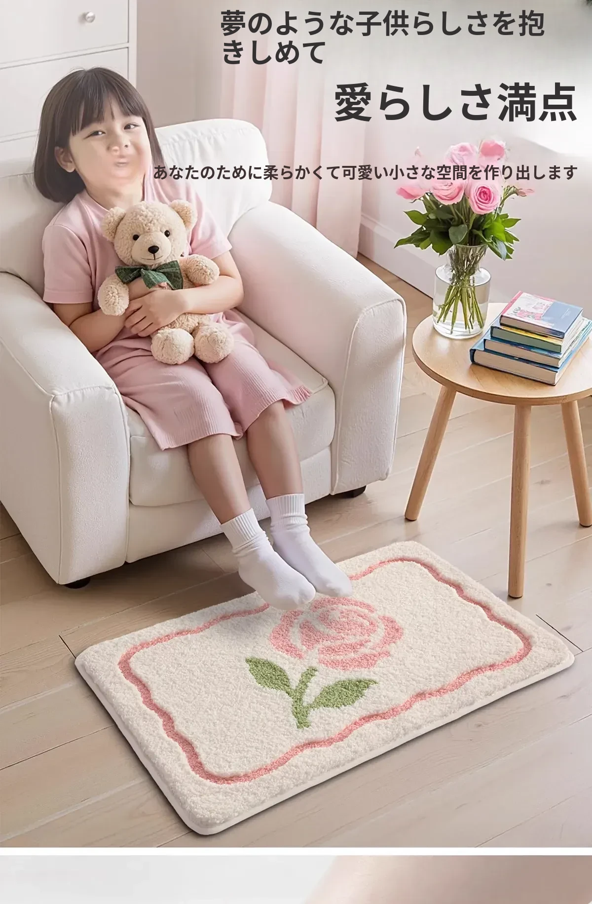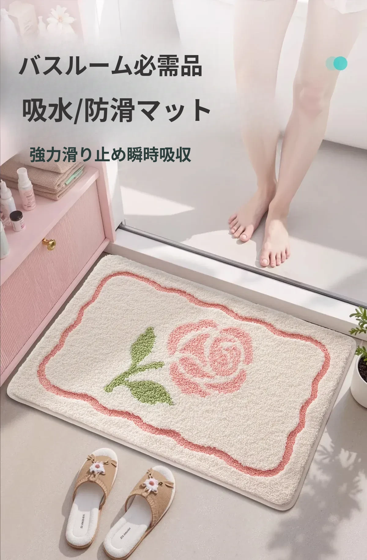 マンゴー家 人気の厚手吸水バスルームマット 花柄フロック速乾マット 新作トイレ用滑り止めカーペットで、快適なバスタイムをお楽しみください!