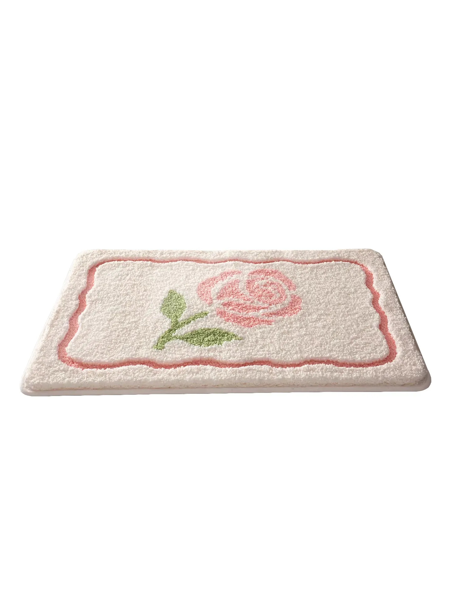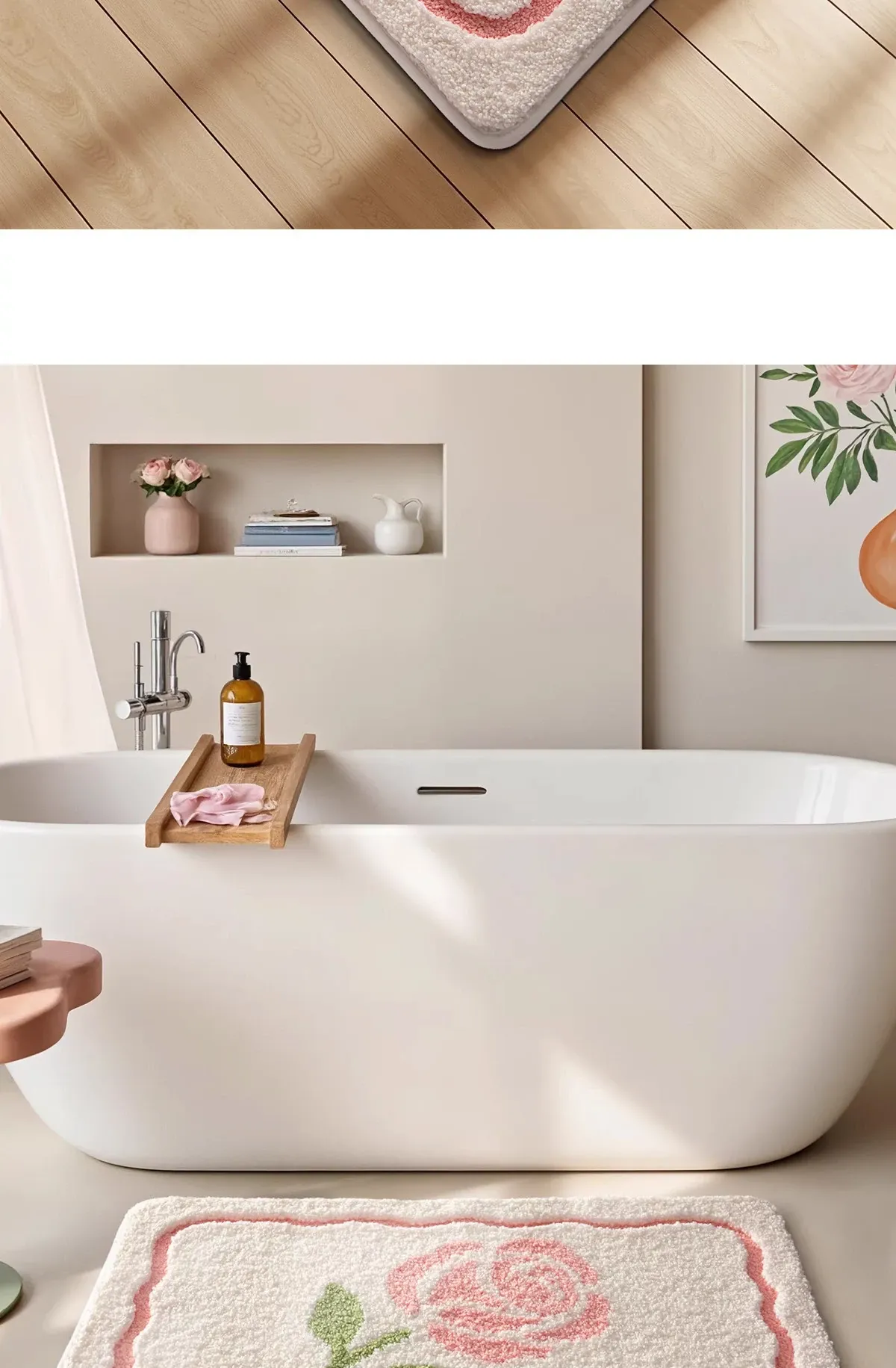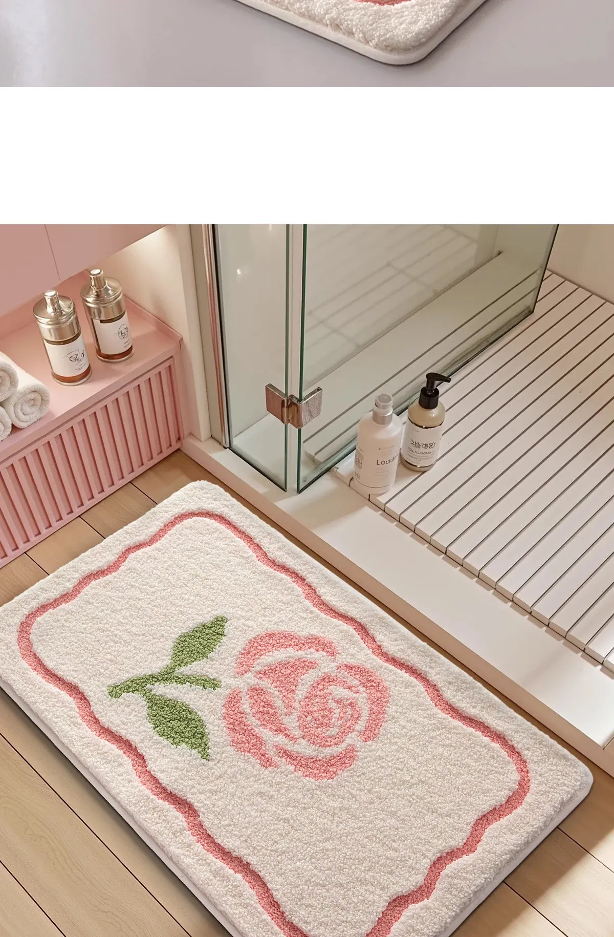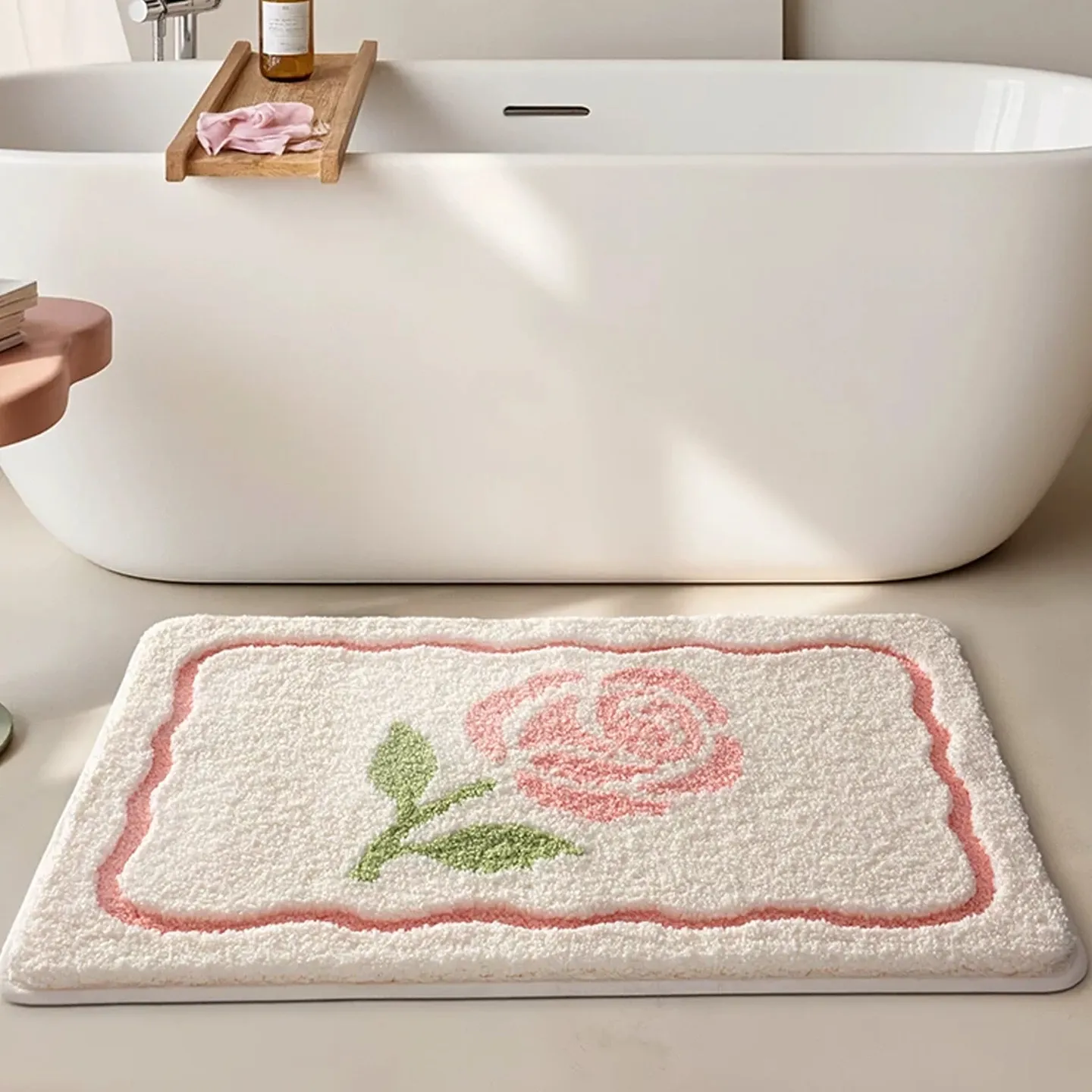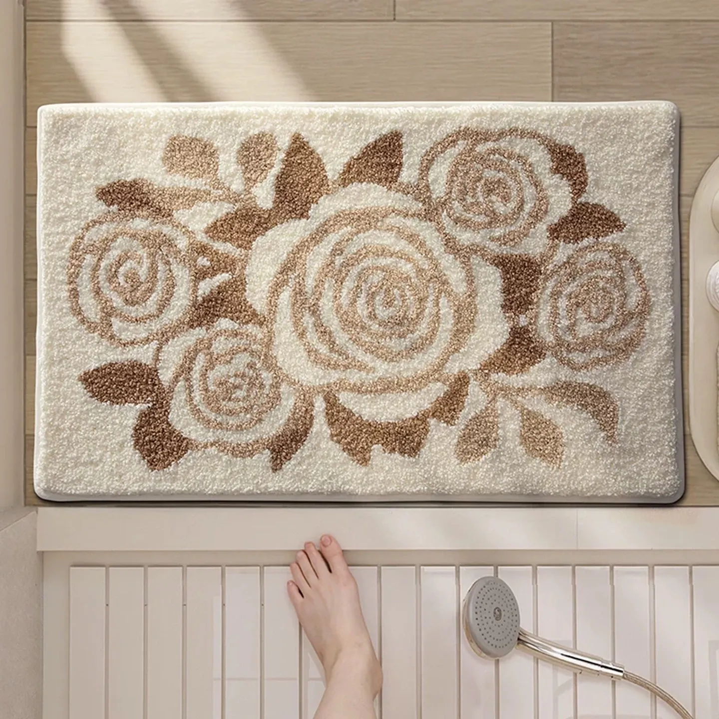 マンゴー家 人気の厚手吸水バスルームマット 花柄フロック速乾マット 新作トイレ用滑り止めカーペットで、快適なバスタイムをお楽しみください!