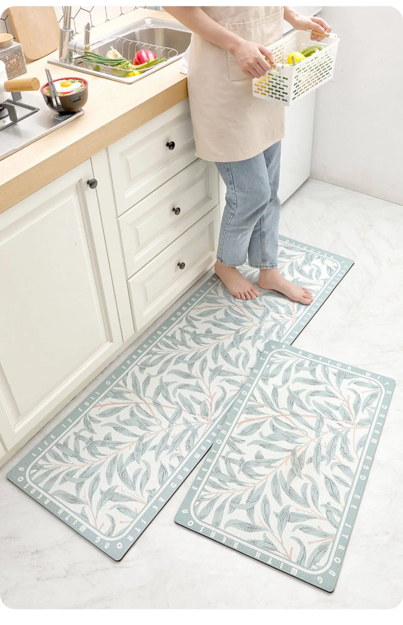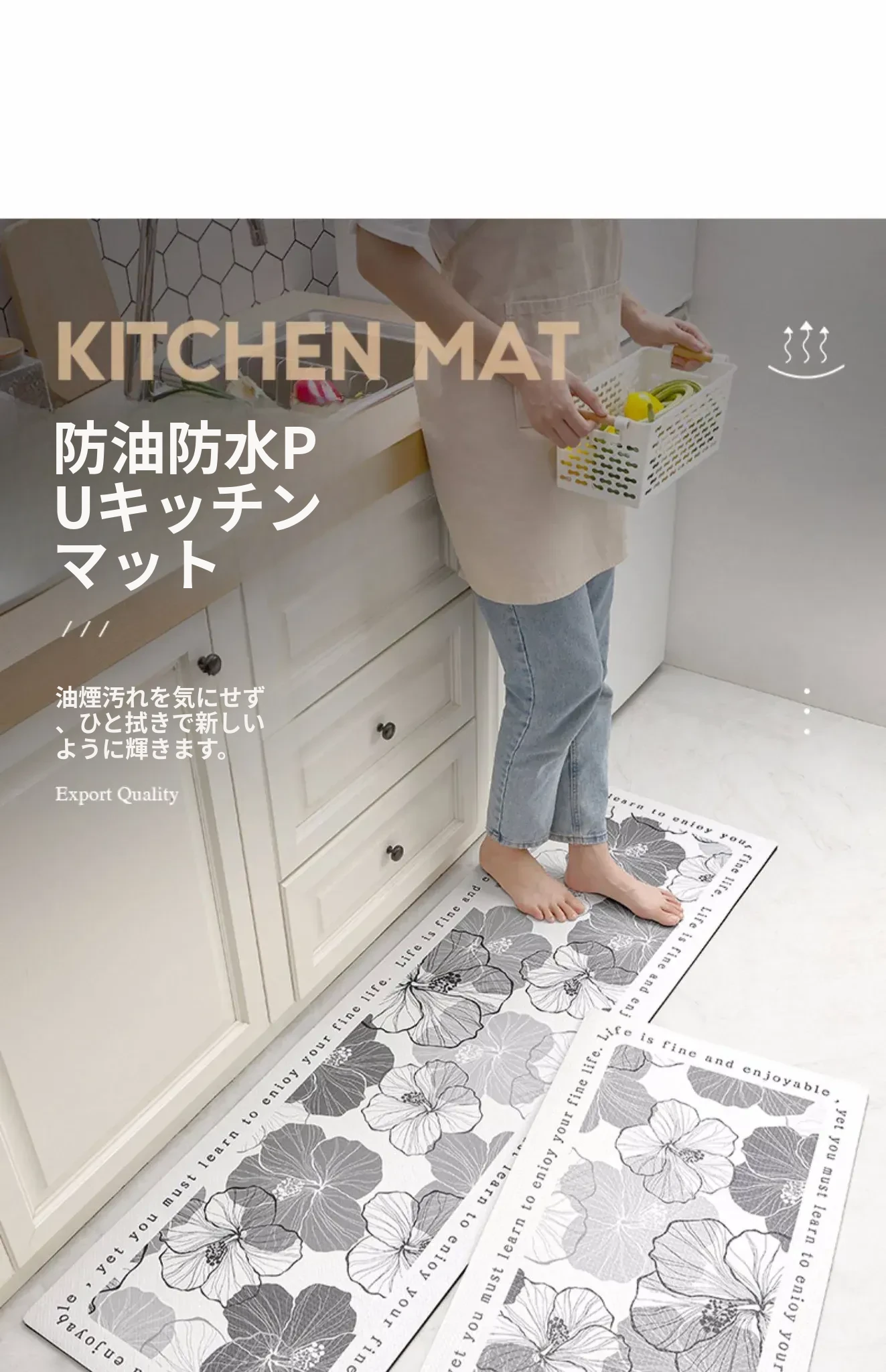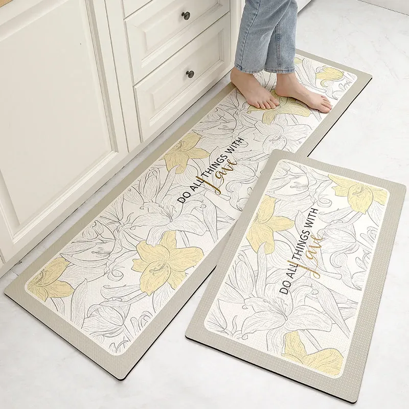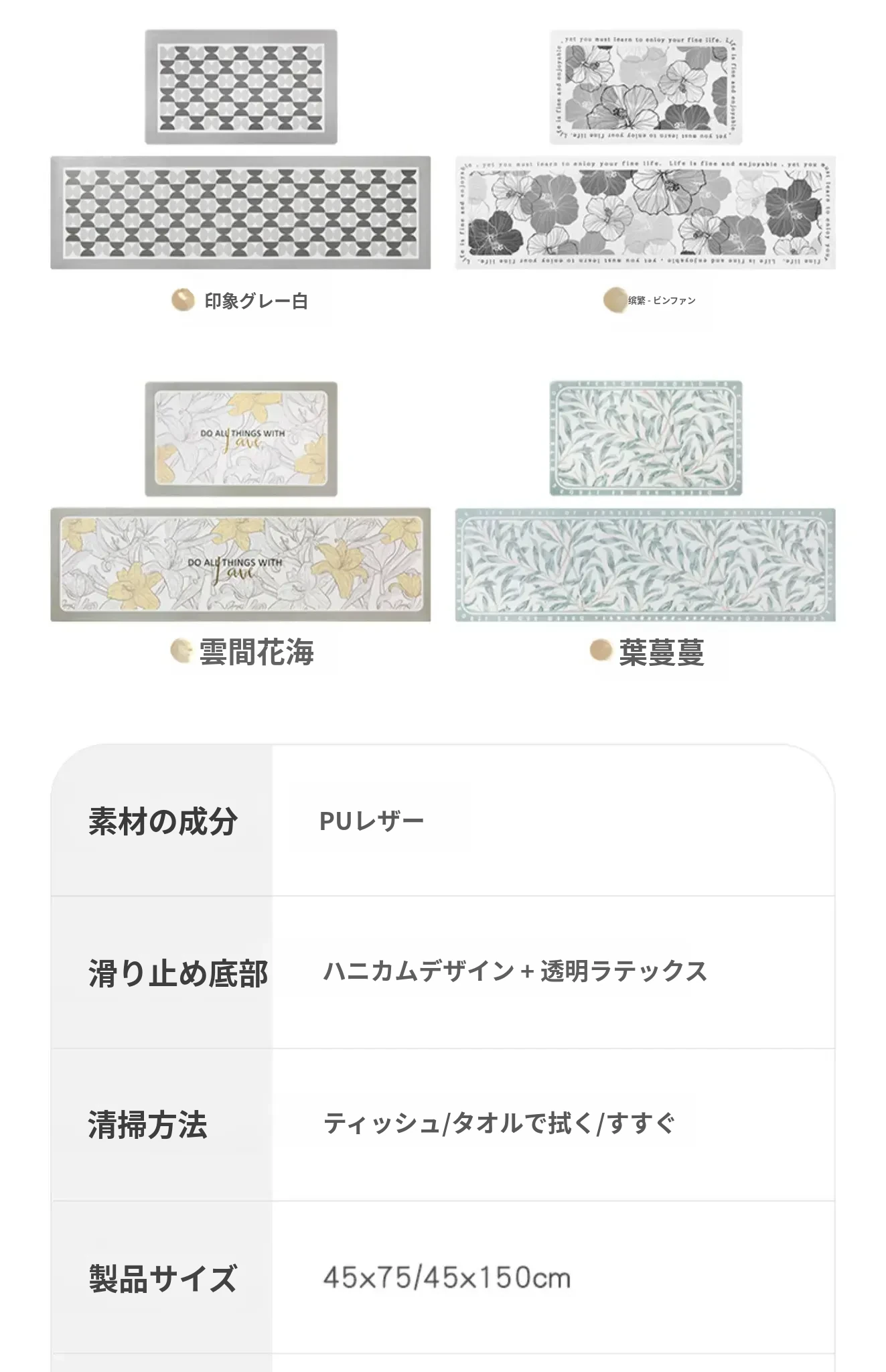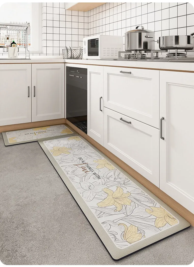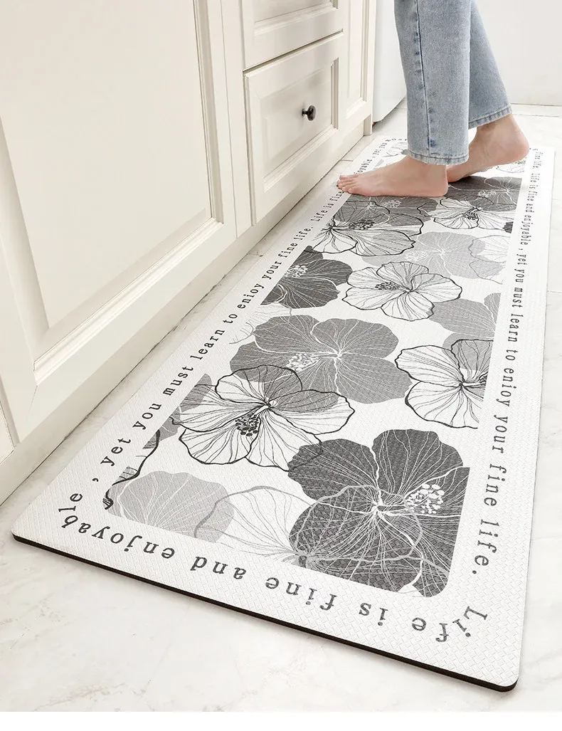 蔓越家 防水・滑り止め・油汚れ防止!PVC製キッチンマット - お手入れ簡単&洗えるフロアマットで安心の安全性を実現!