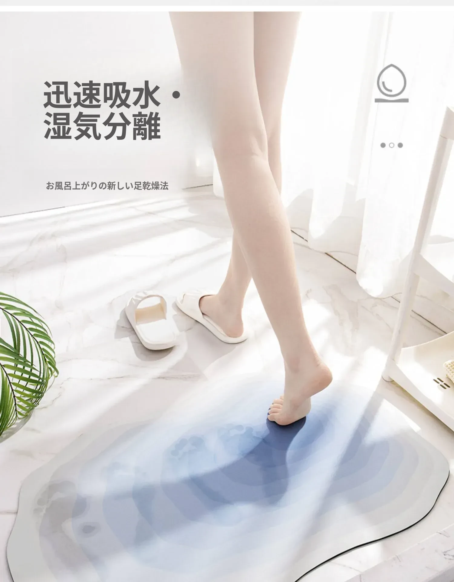 抗菌・速乾!蔓越家のシリカゲル吸水マット - おしゃれなグラデーションデザインで、トイレやお風呂にぴったり。滑り止め付きで安心、安全。家庭用に最適な快適な足元を実現!