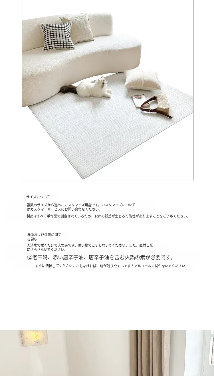 蔓越家のコストパフォーマンス抜群!モダンでシンプルなリビング用ラグ。寝室やテーブル下に最適な滑り止めマット。おしゃれで快適な空間を演出します!
