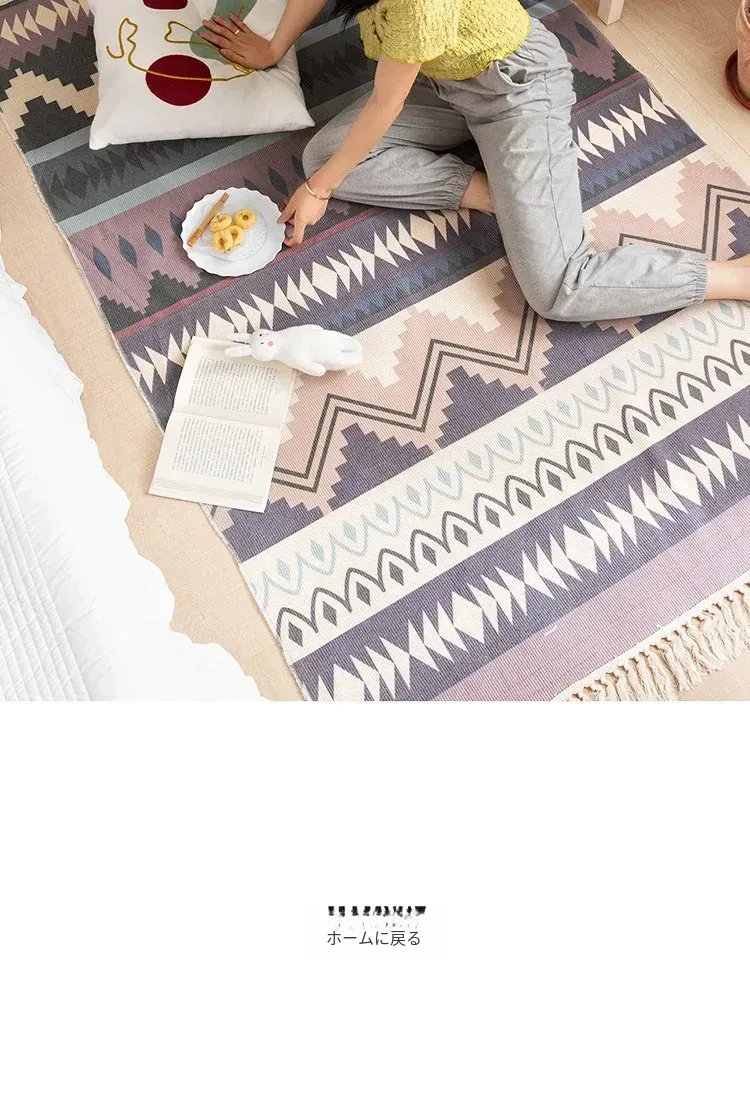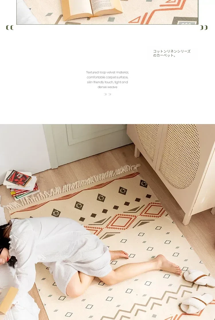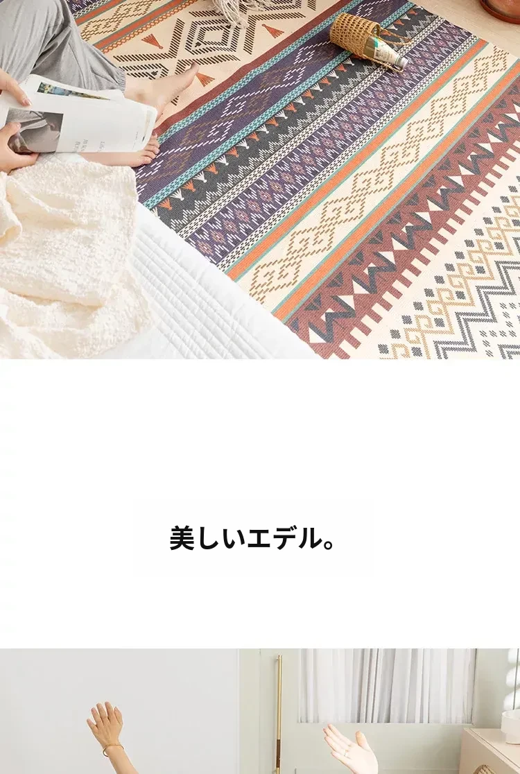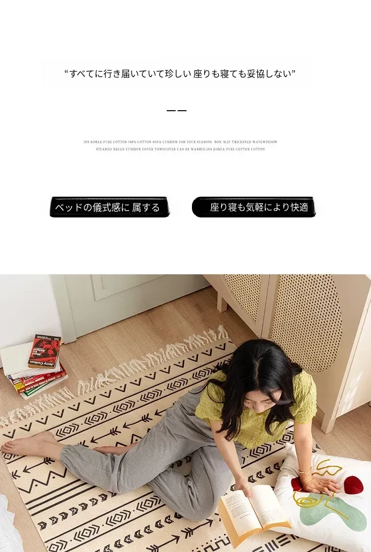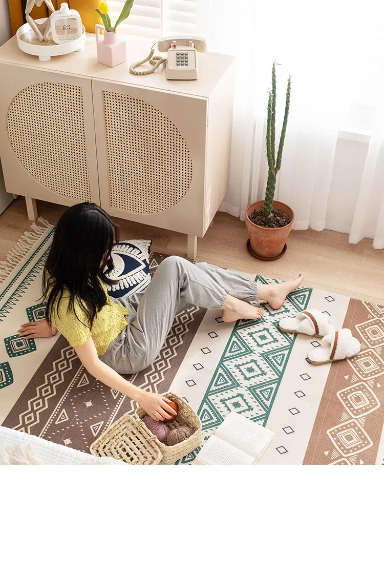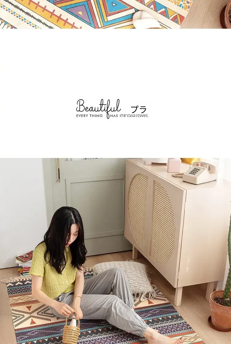 蔓越家 おしゃれな侘寂スタイルのヴィンテージラグ!寝室やリビングにぴったりな多機能フロアマット。高級感あふれるソファやテーブルのアクセントとして最適です。