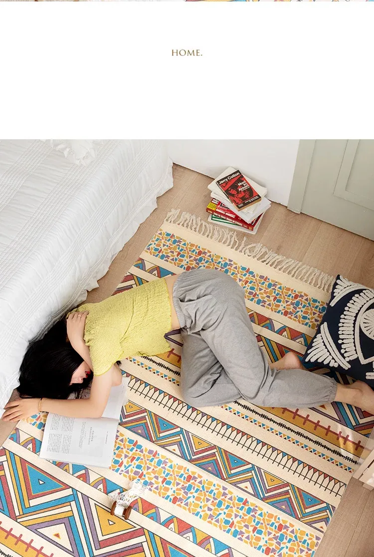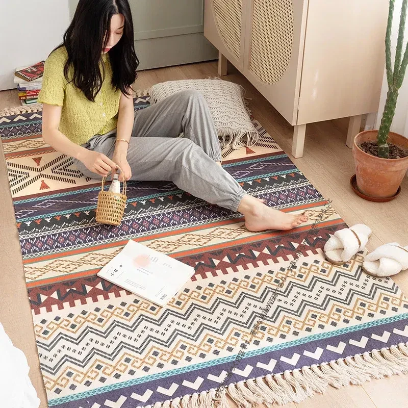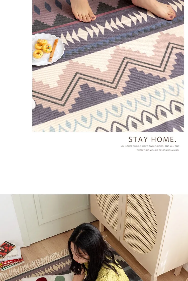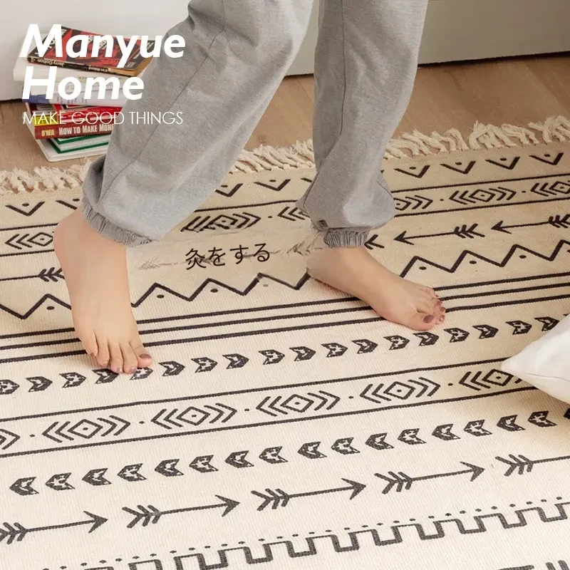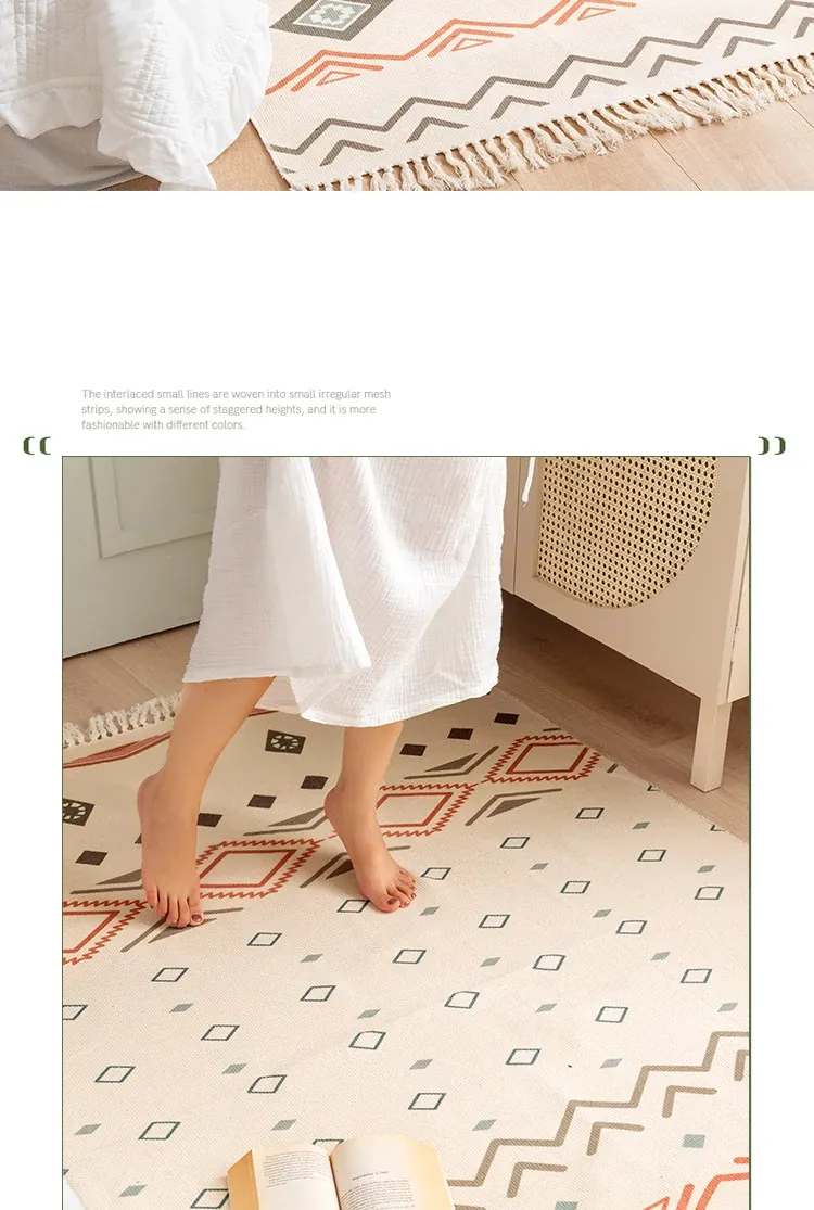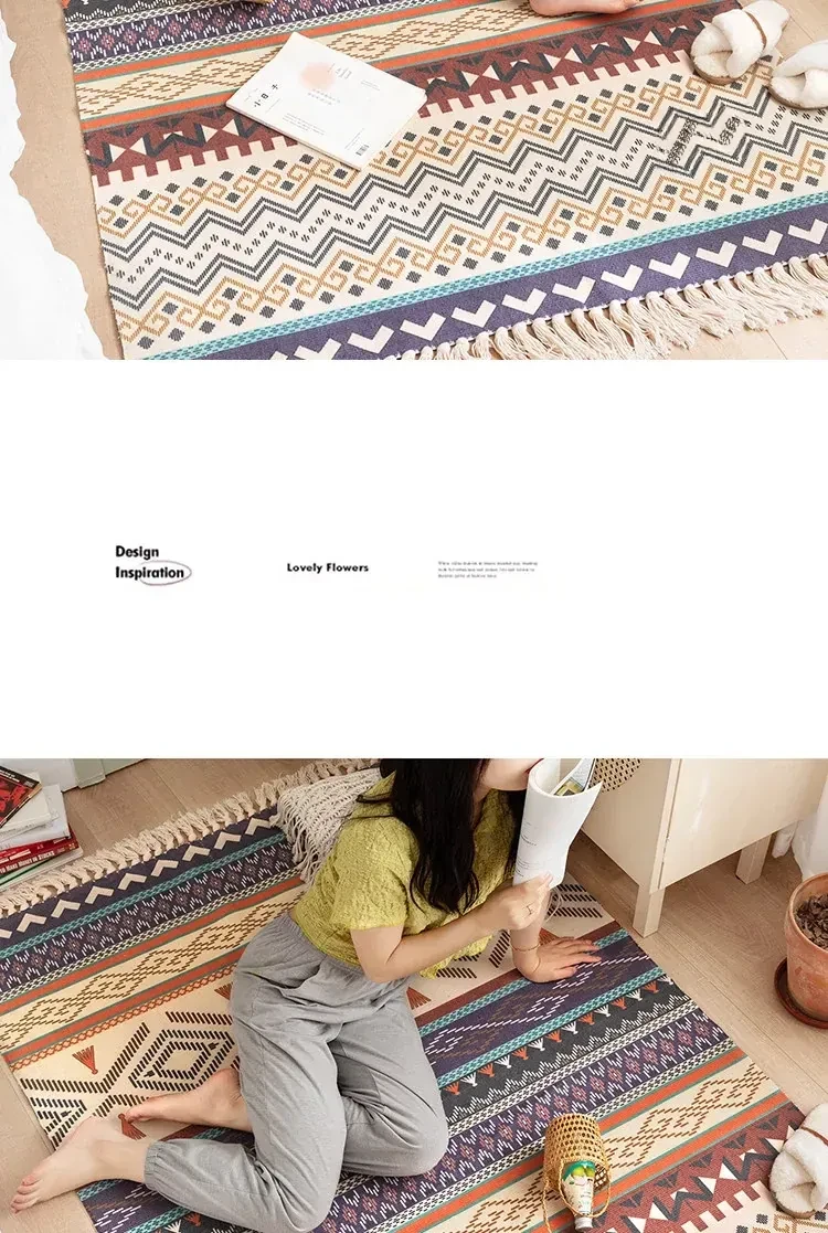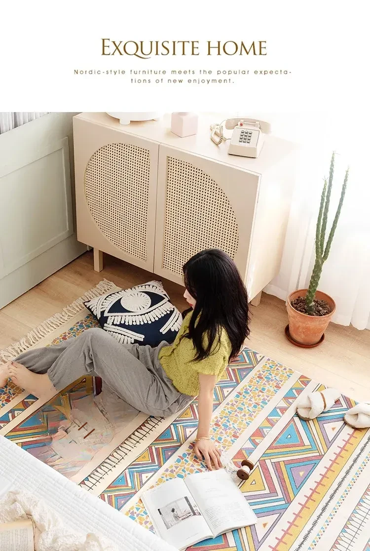 蔓越家 おしゃれな侘寂スタイルのヴィンテージラグ!寝室やリビングにぴったりな多機能フロアマット。高級感あふれるソファやテーブルのアクセントとして最適です。