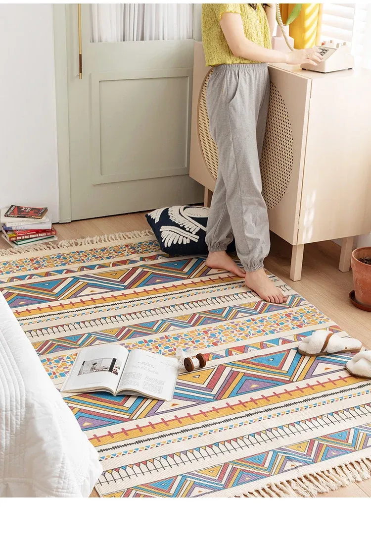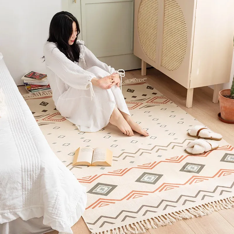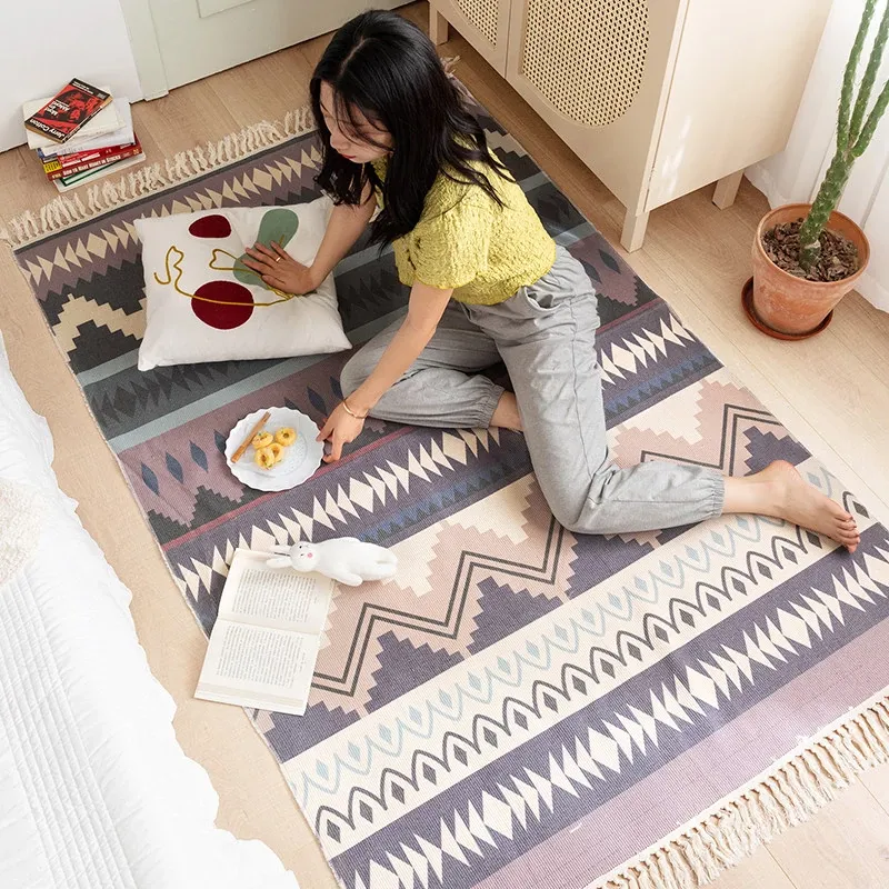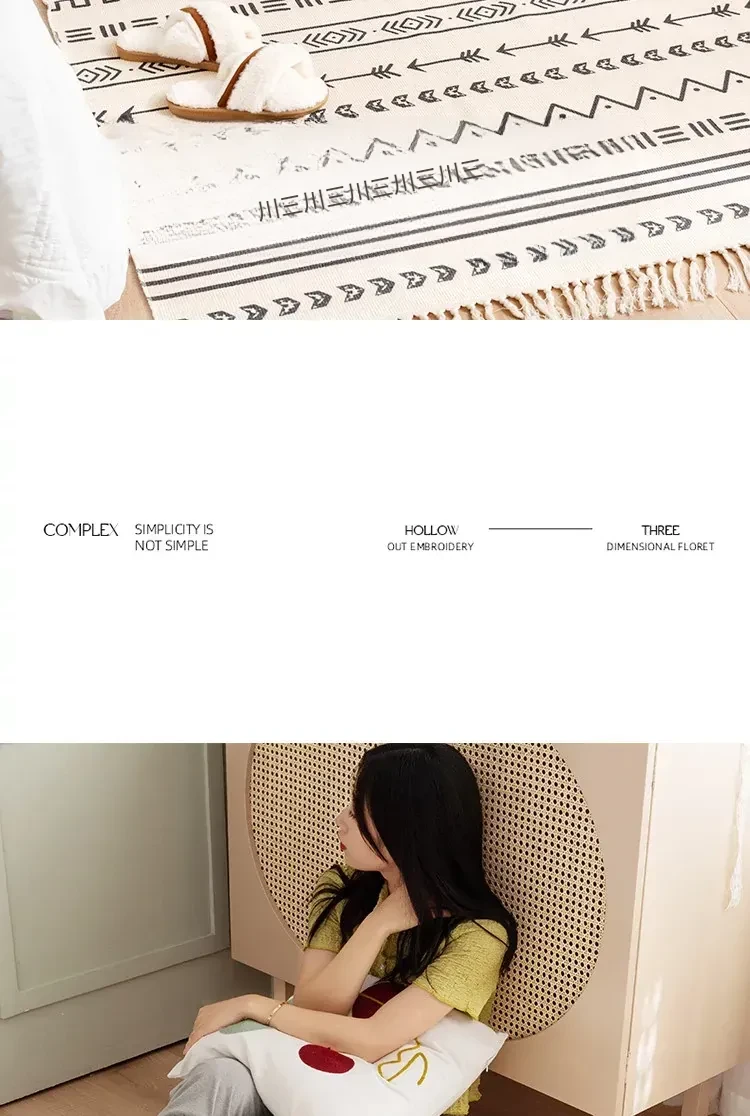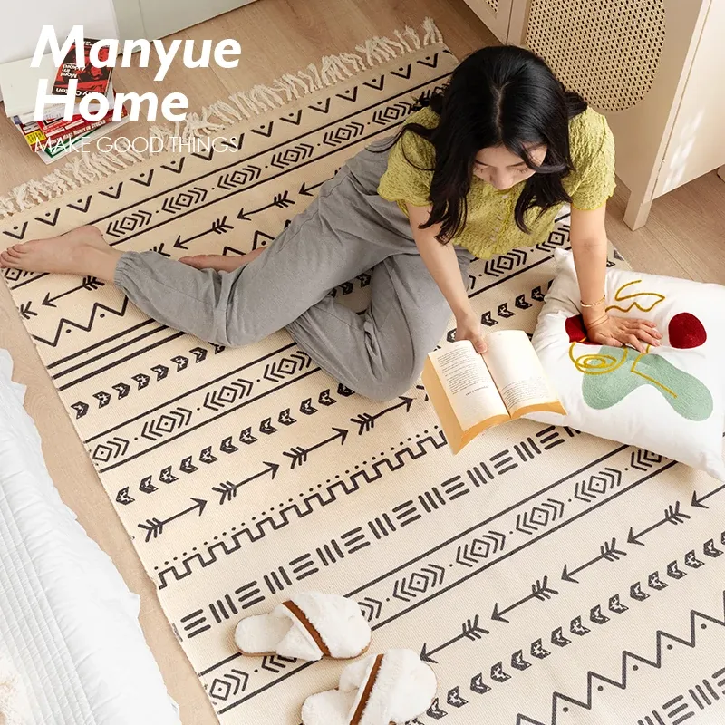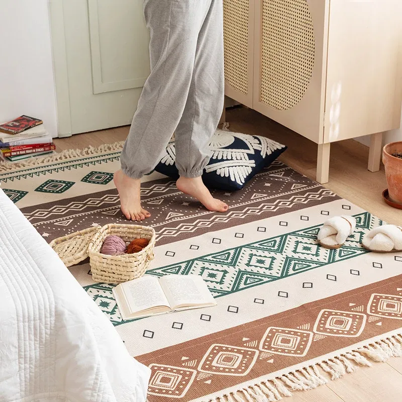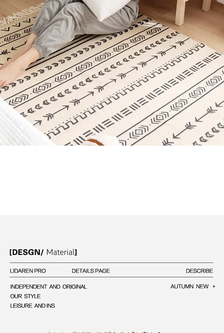 蔓越家 おしゃれな侘寂スタイルのヴィンテージラグ!寝室やリビングにぴったりな多機能フロアマット。高級感あふれるソファやテーブルのアクセントとして最適です。