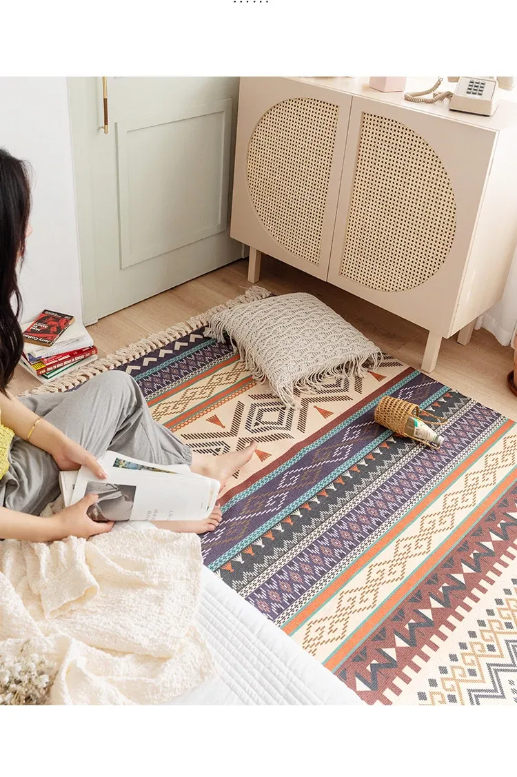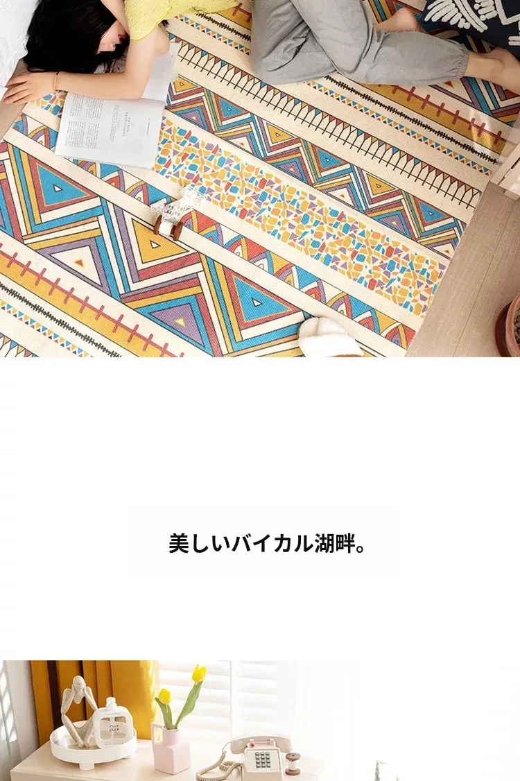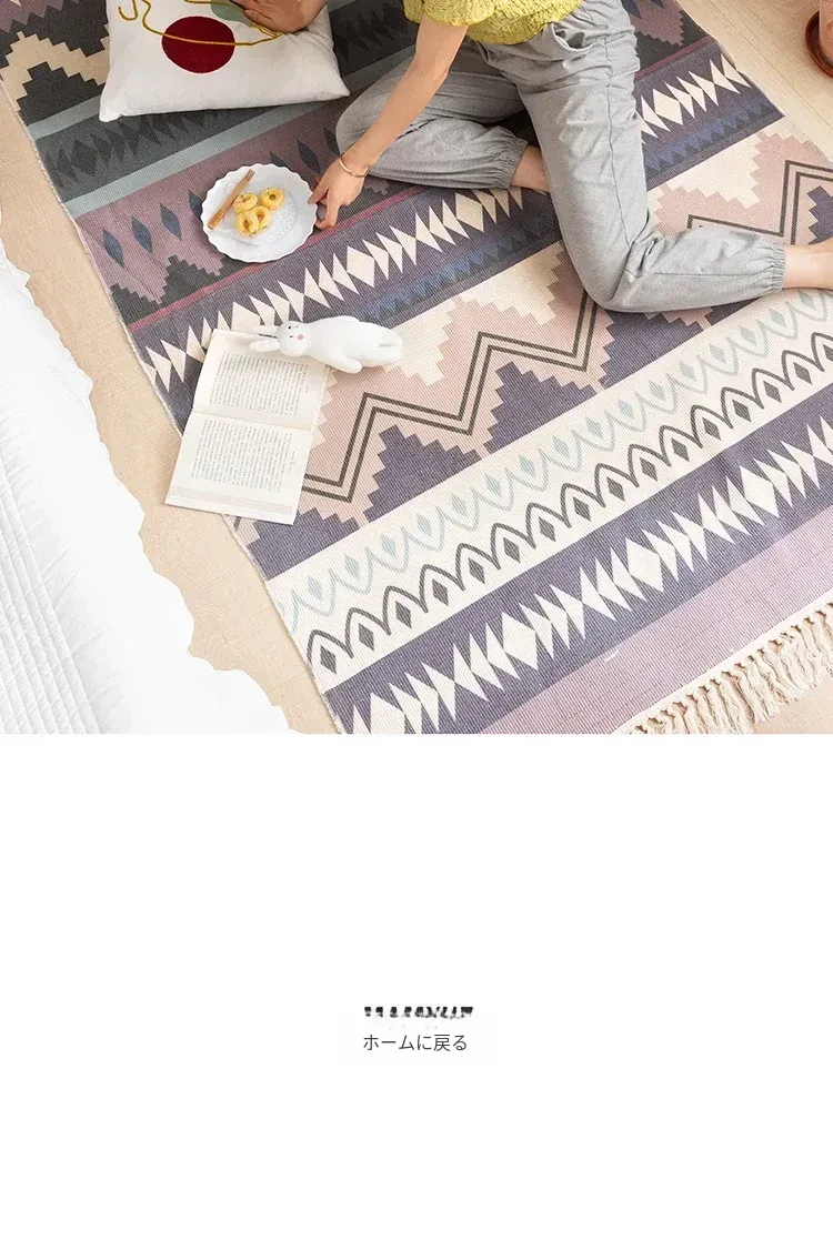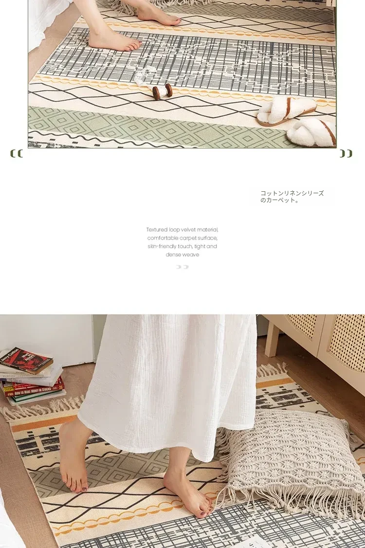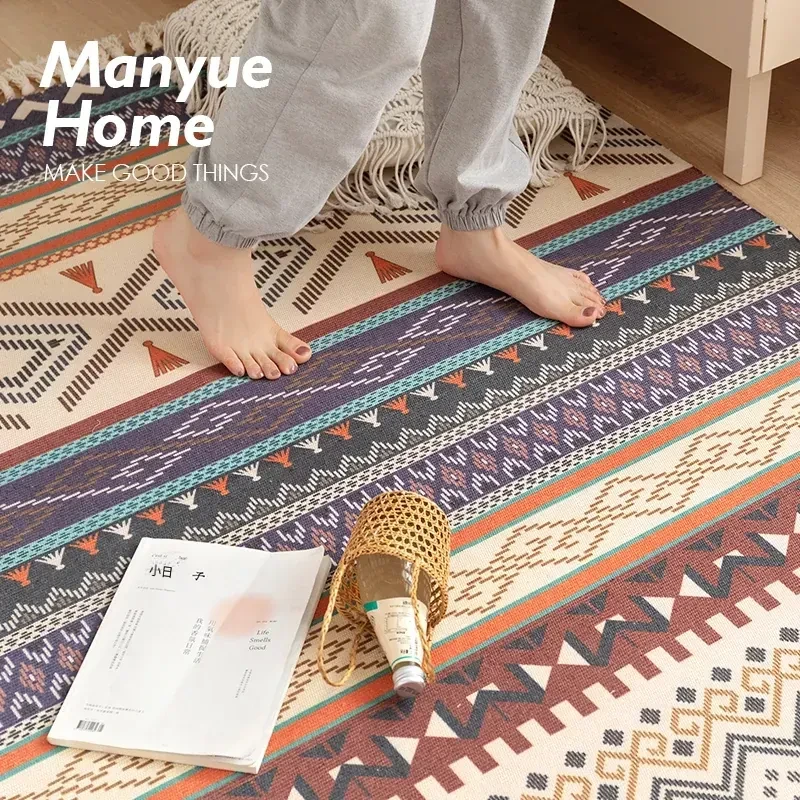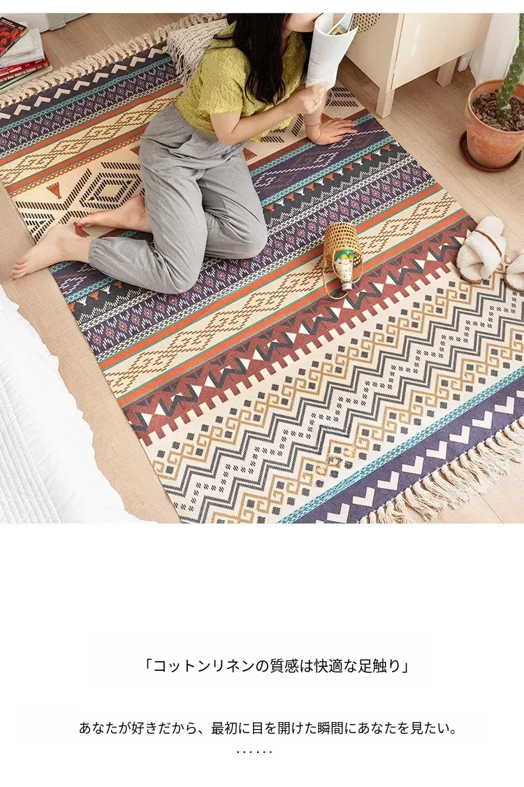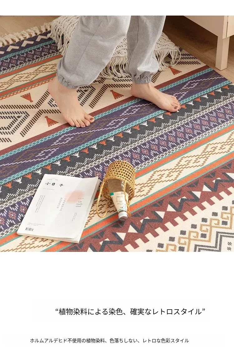 蔓越家 レトロコットンリネンマット ベッドサイドマット 多機能リビングルームプレイマット ソファ・テーブル用カーペット - おしゃれで快適な空間を演出!
