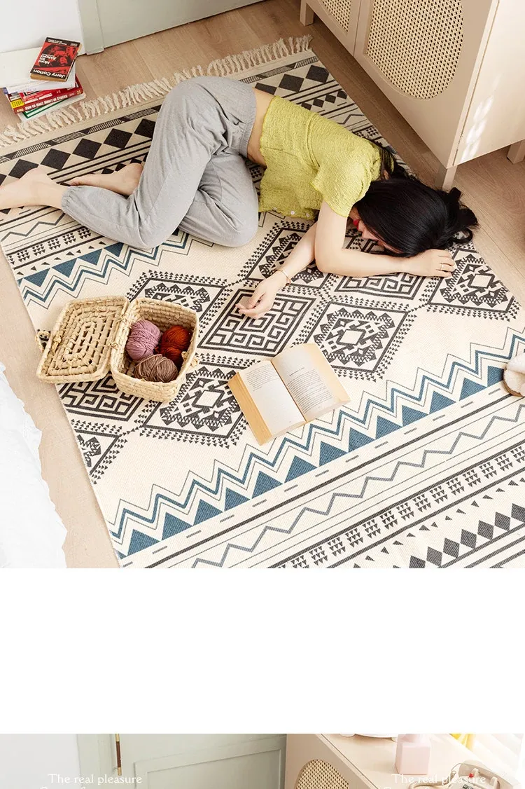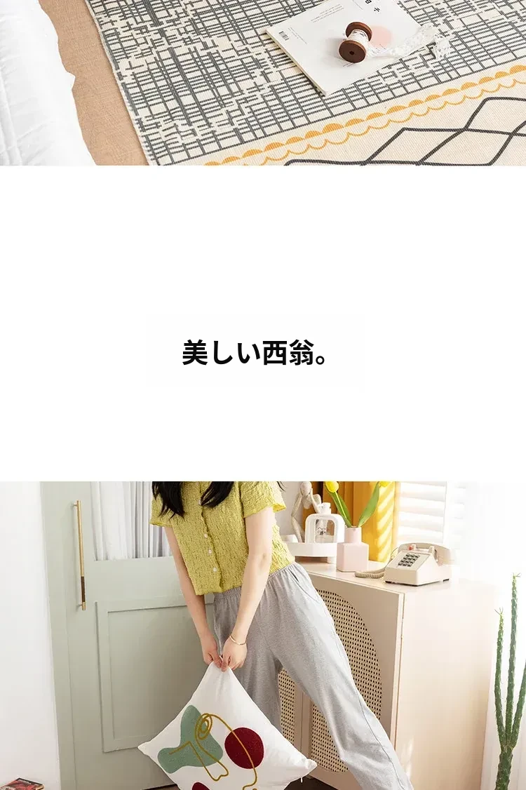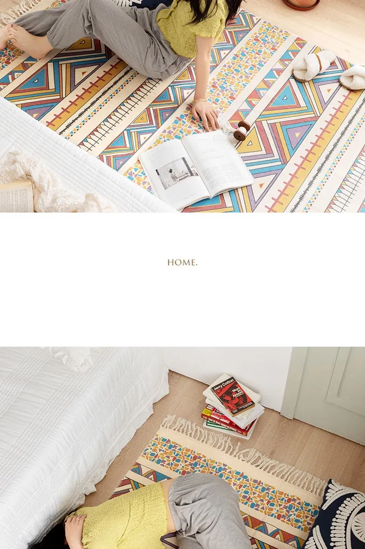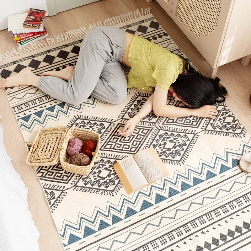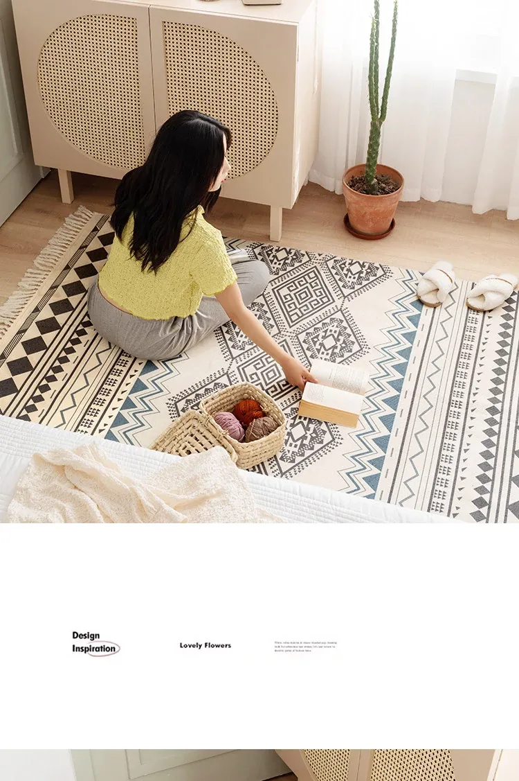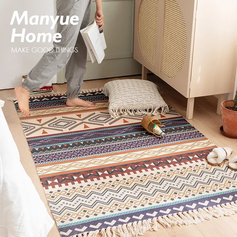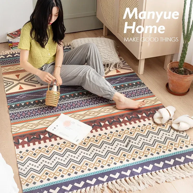 蔓越家 レトロコットンリネンマット ベッドサイドマット 多機能リビングルームプレイマット ソファ・テーブル用カーペット - おしゃれで快適な空間を演出!