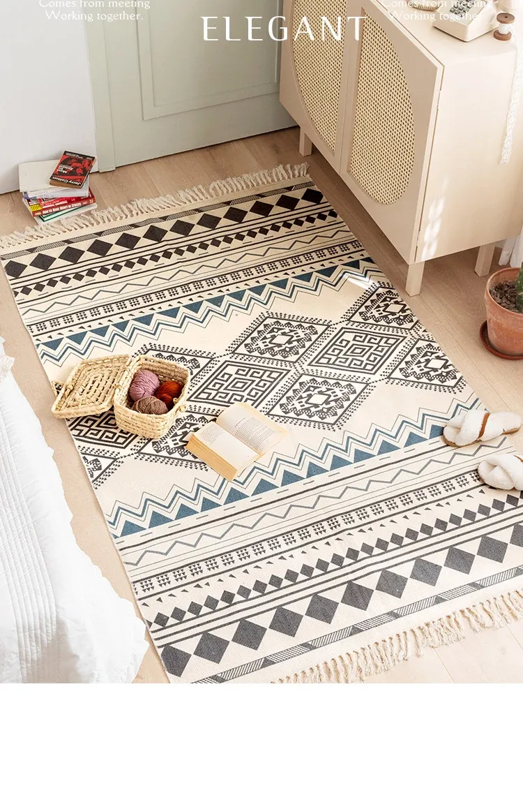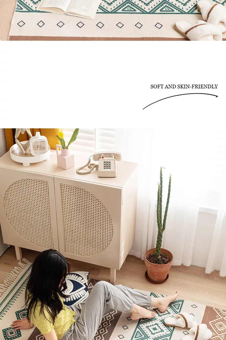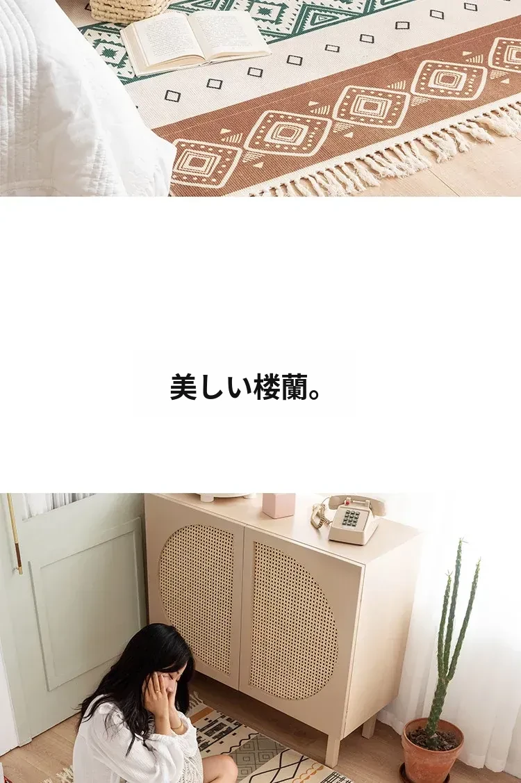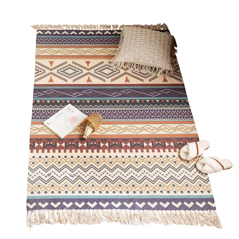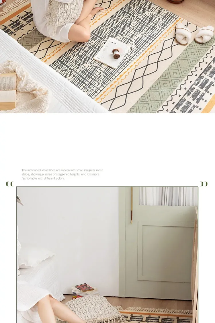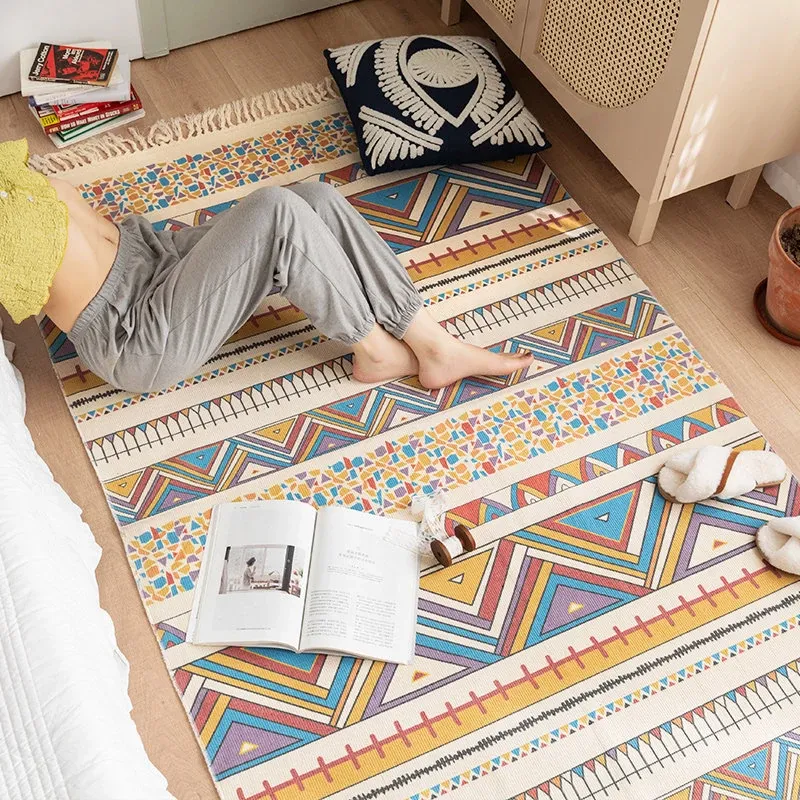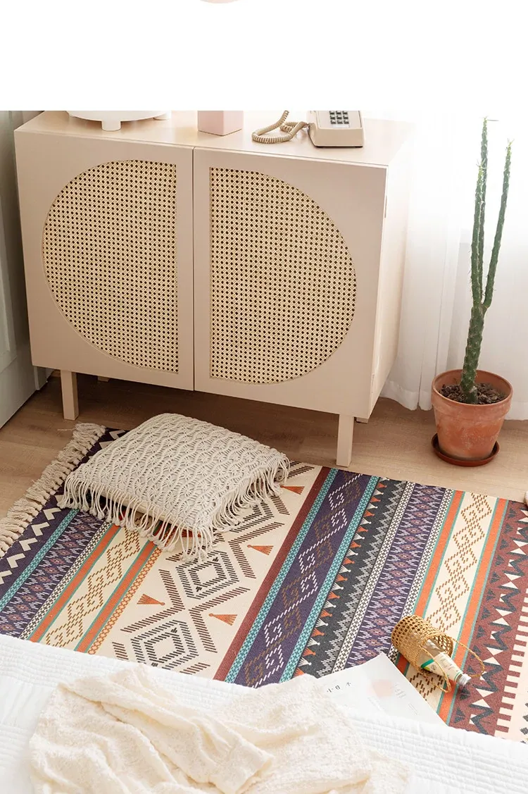 蔓越家 レトロコットンリネンマット ベッドサイドマット 多機能リビングルームプレイマット ソファ・テーブル用カーペット - おしゃれで快適な空間を演出!