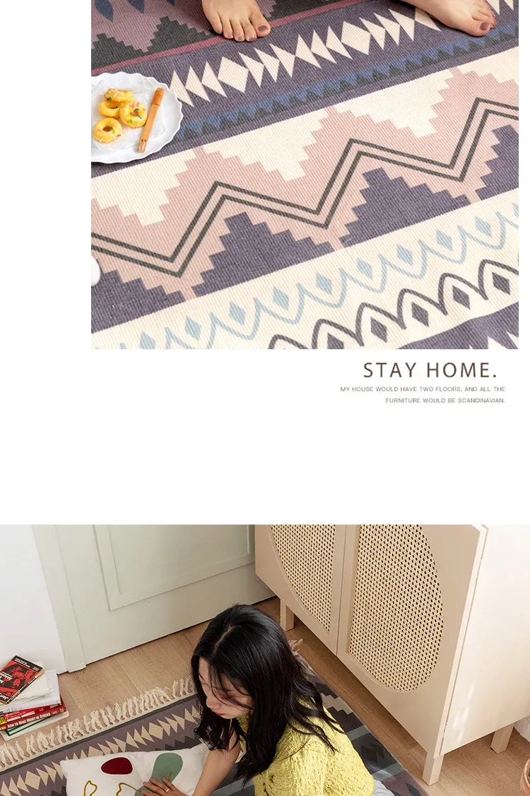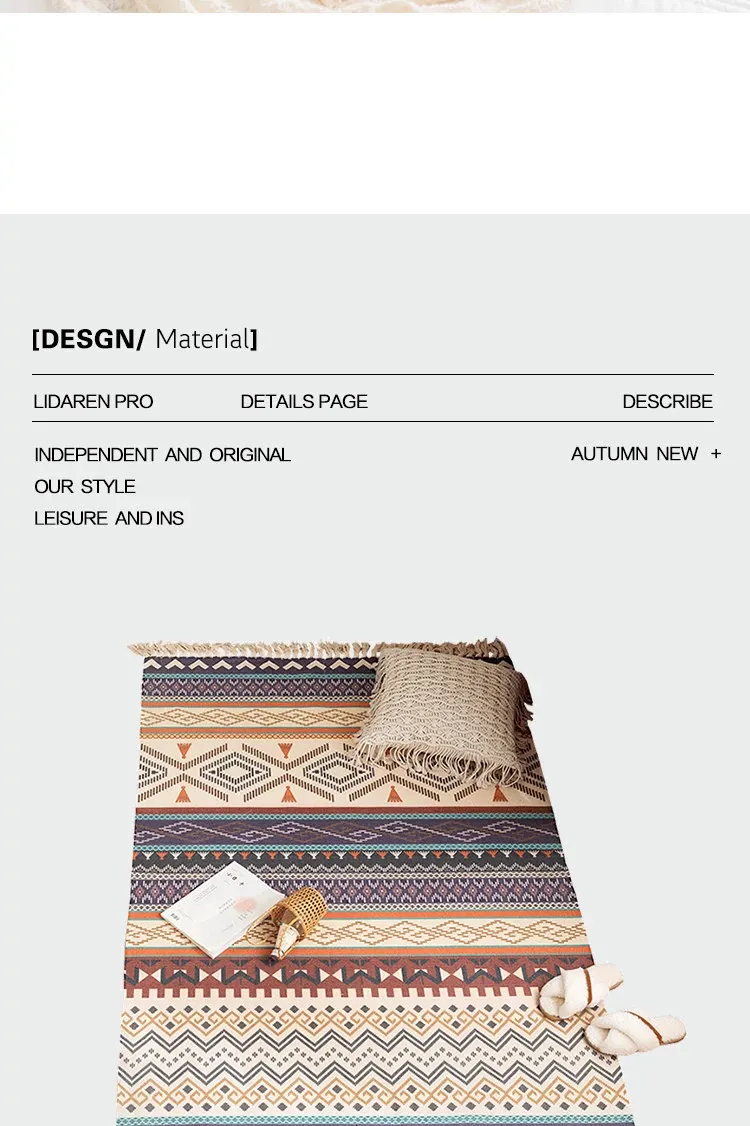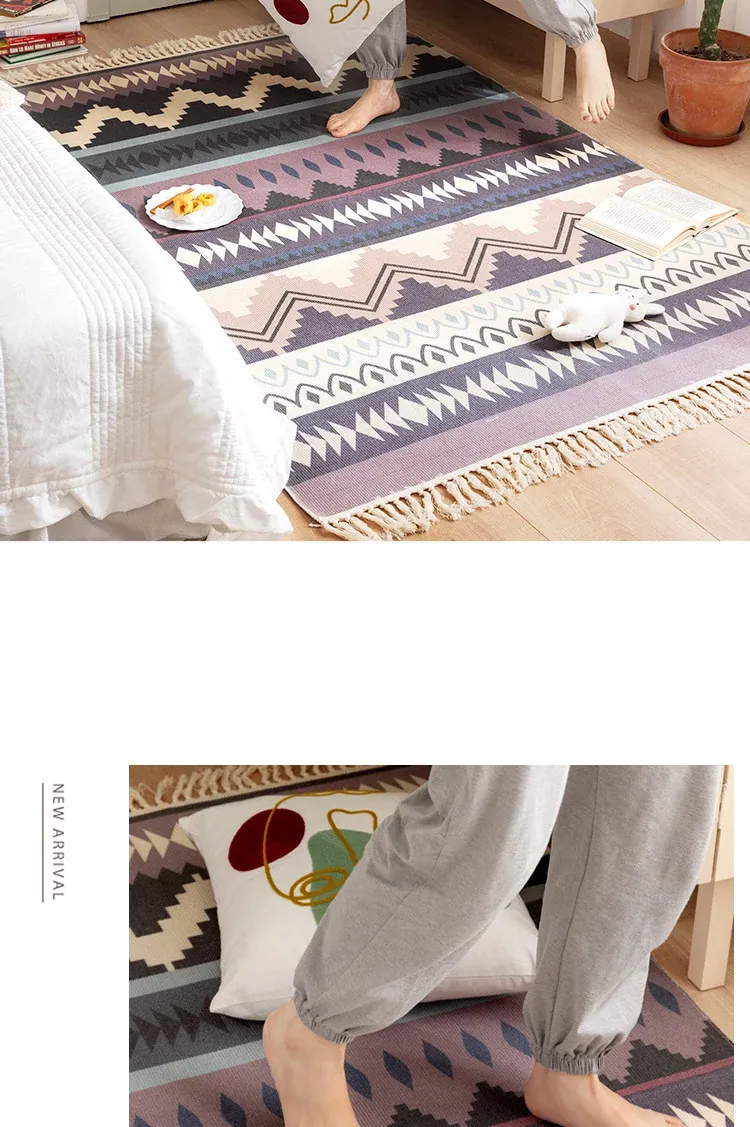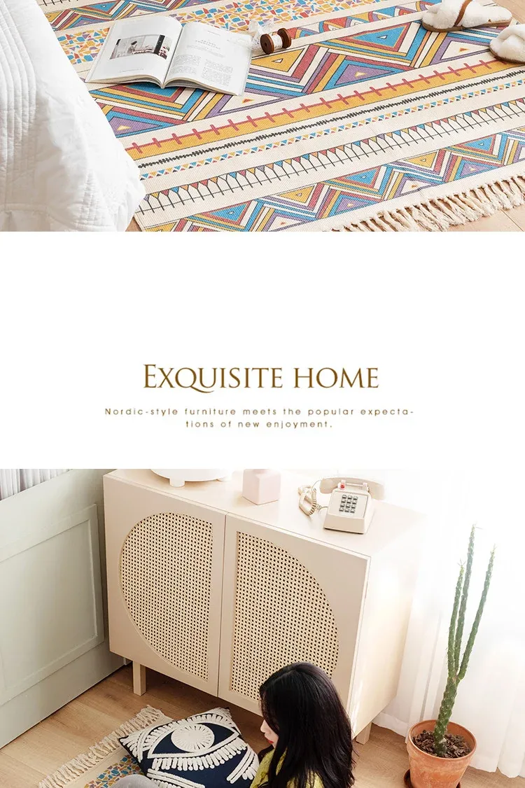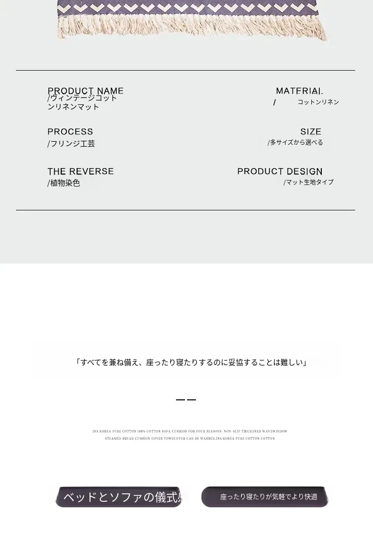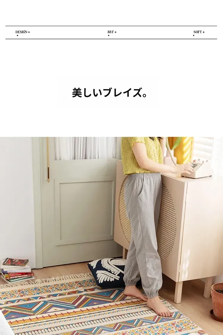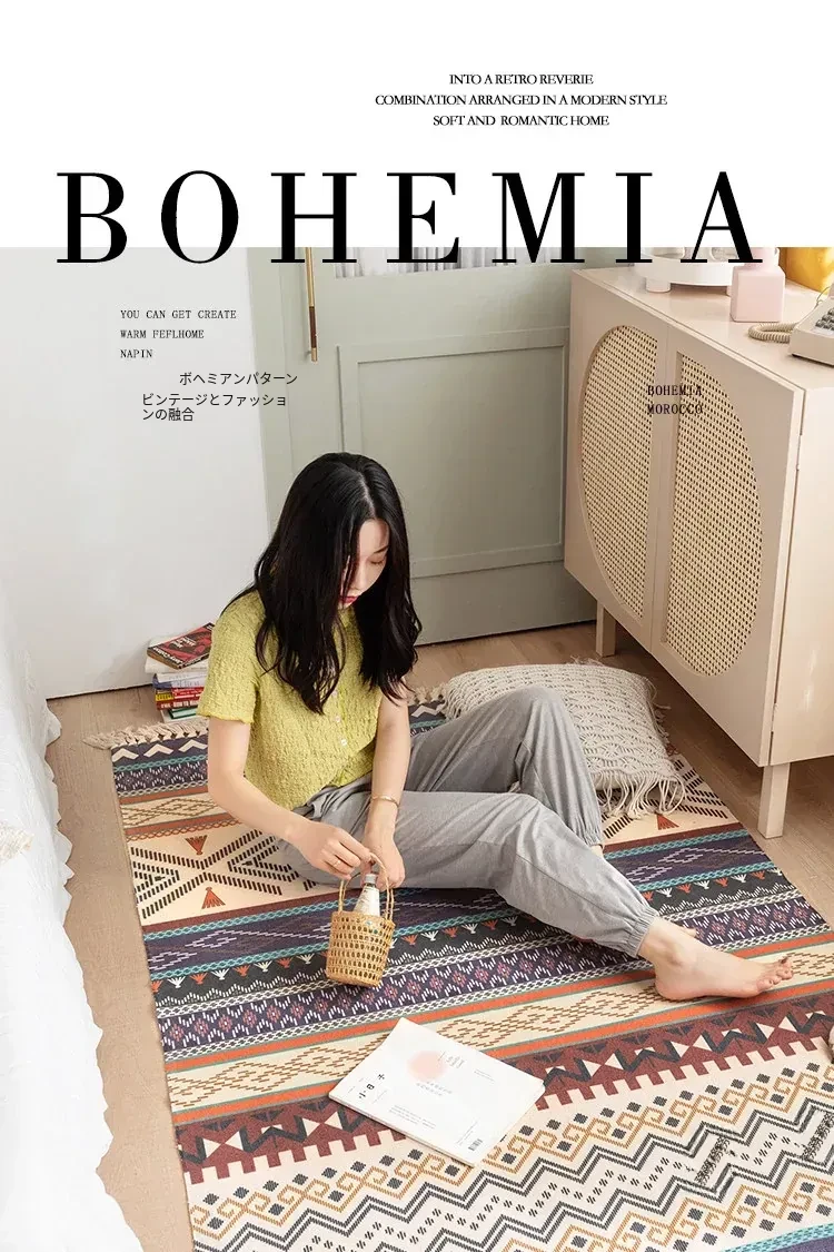蔓越家 レトロコットンリネンマット ベッドサイドマット 多機能リビングルームプレイマット ソファ・テーブル用カーペット - おしゃれで快適な空間を演出!