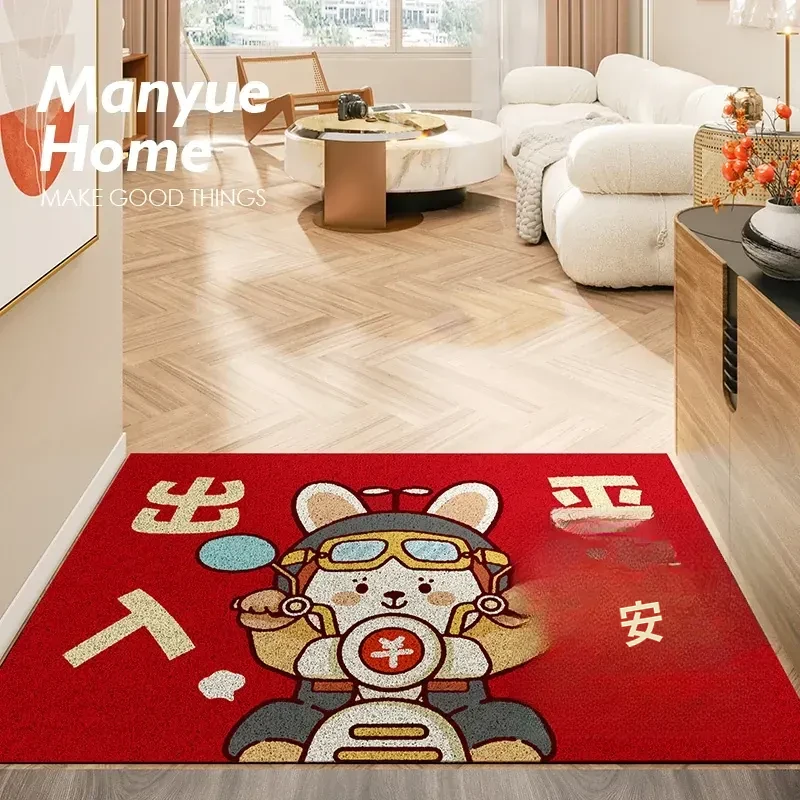 新年を迎える特別な福を呼び込む!蔓越家のウサギ年お祝い玄関マット、赤い華やかなデザインで、安心して出入りできる空間を演出します。お家の入り口を華やかに彩る幸運のアイテムです。